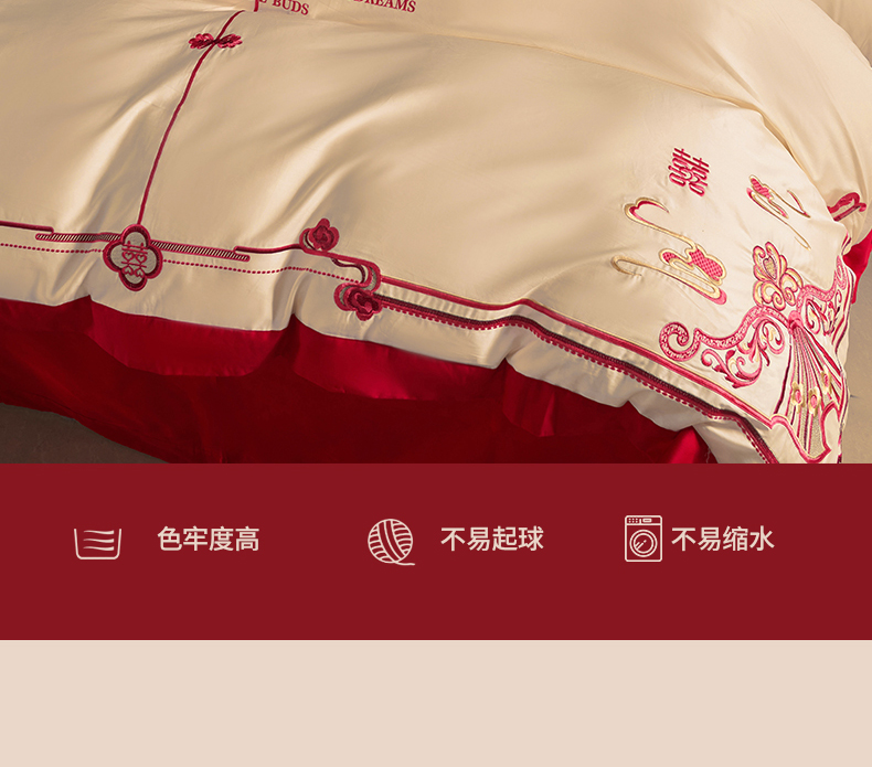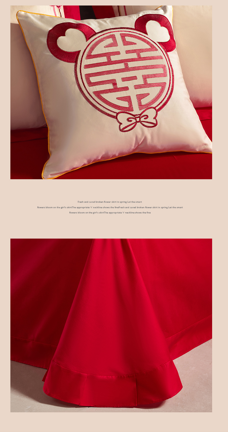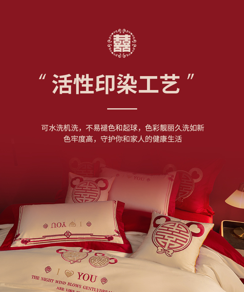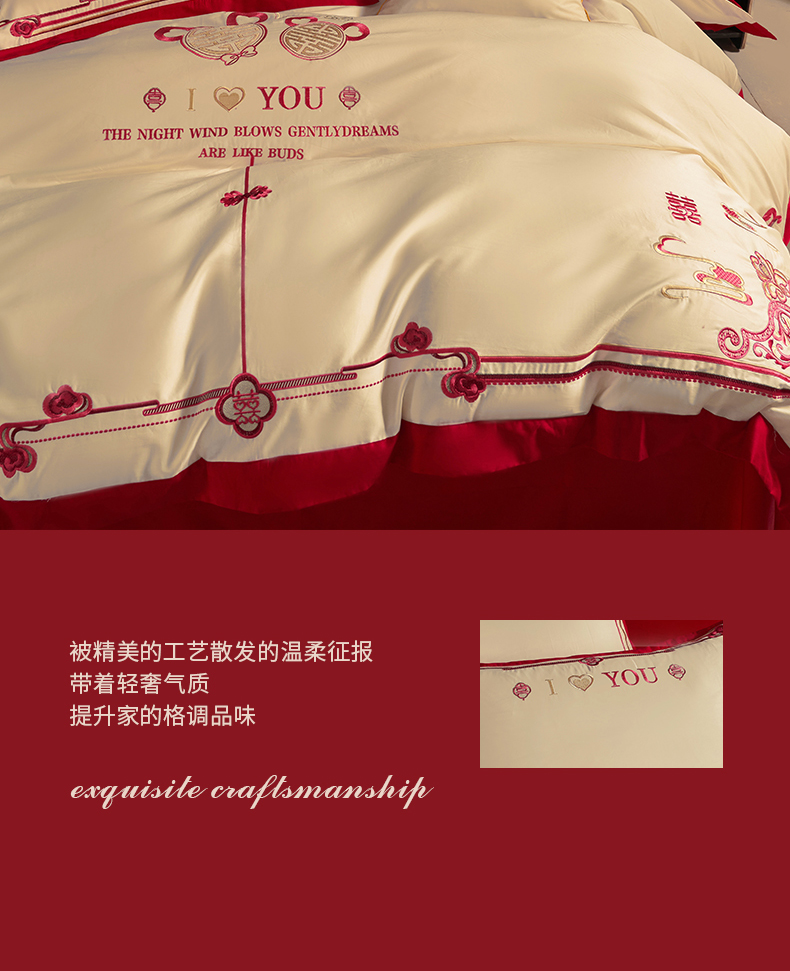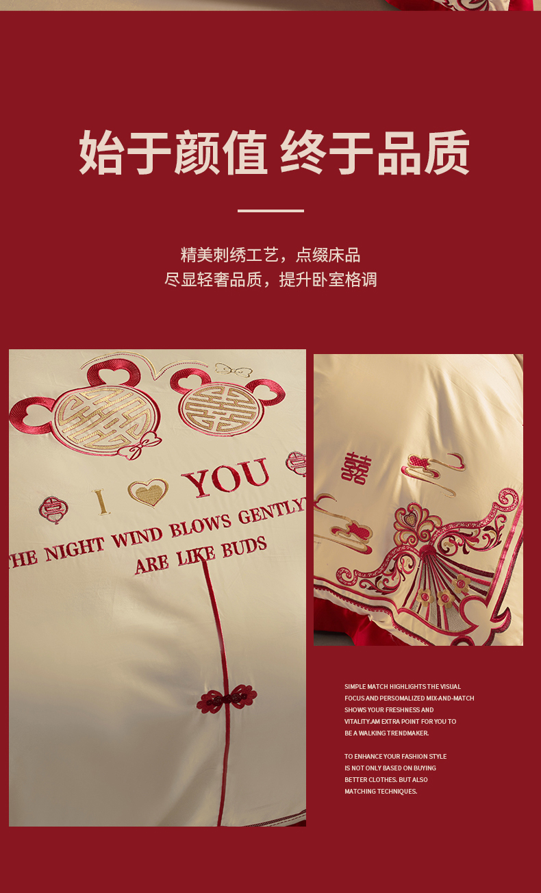 当前位置: 91家纺网 > 商品网购 > 床品套件 > 四件套 > 婚庆四件套 > 玉雅家纺 2025新款60支长绒棉时尚拼色浮雕刺绣婚庆四件套 心动-拍摄2