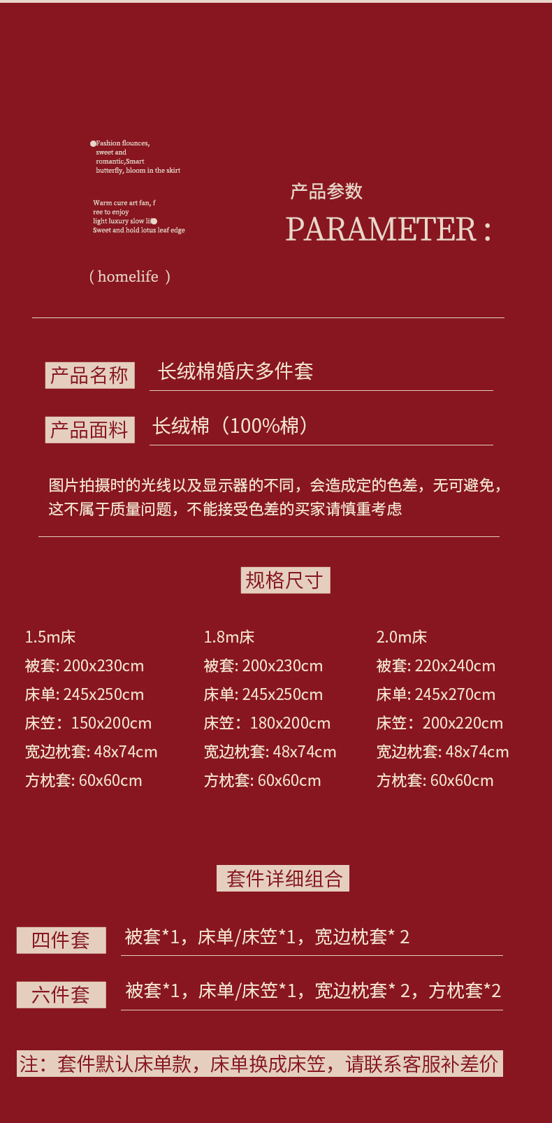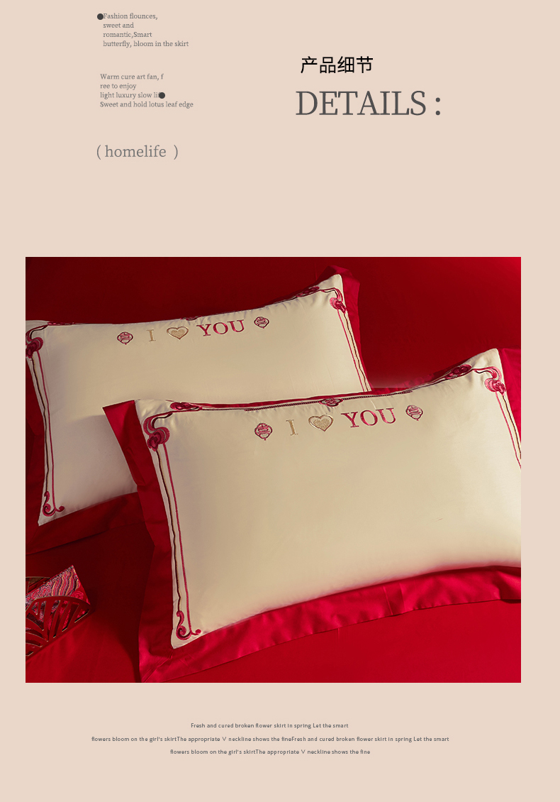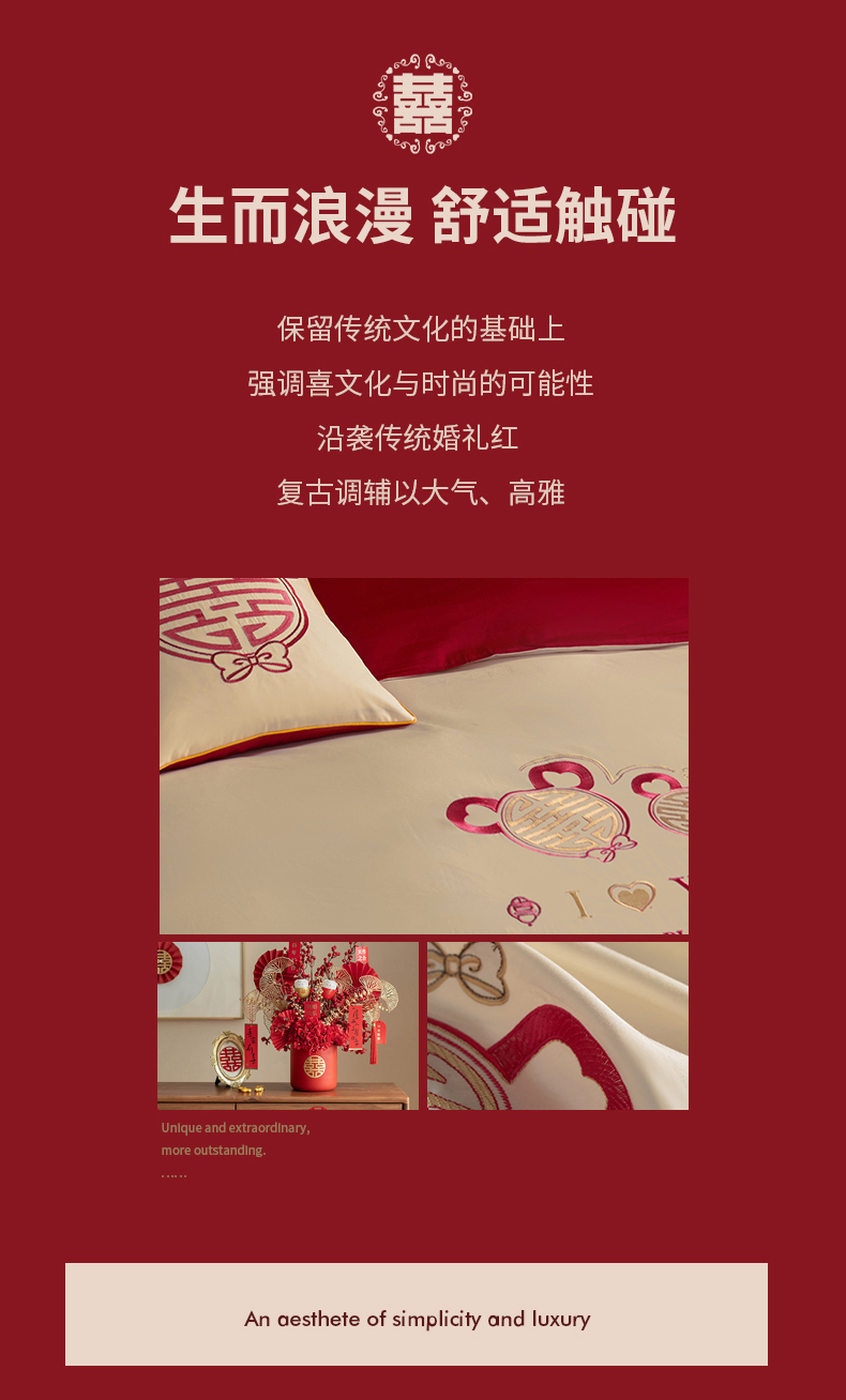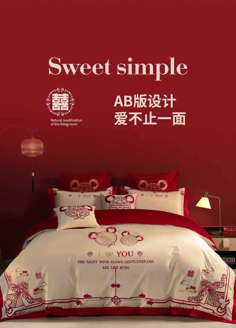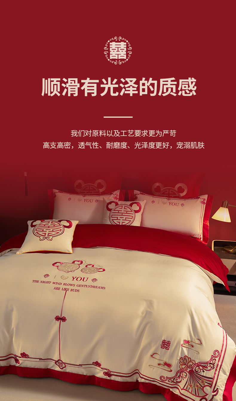 当前位置: 91家纺网 > 商品网购 > 床品套件 > 四件套 > 婚庆四件套 > 玉雅家纺 2025新款60支长绒棉时尚拼色浮雕刺绣婚庆四件套 心动-拍摄2