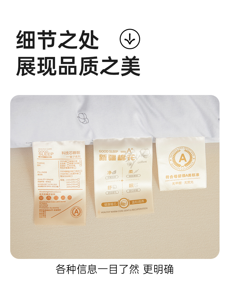 • 91家纺网 家纺一手货源 找家纺 (总)壹张床 2025新款A类新疆棉花被糯糯棉子母被冬被印花被芯春秋被学生被子母扣系列,白色