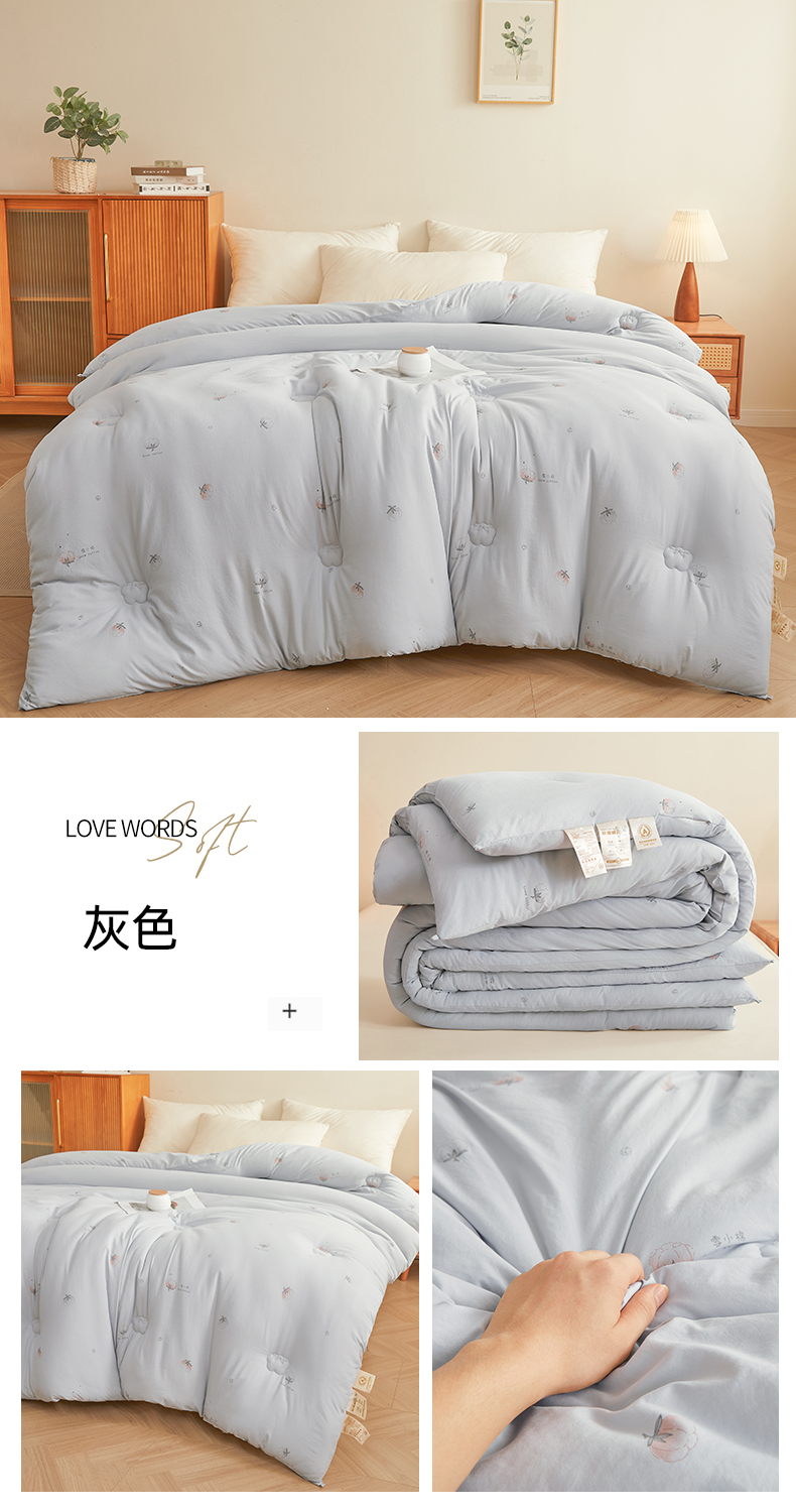 • 91家纺网 家纺一手货源 找家纺 壹张床 2025新款A类新疆棉花被糯糯棉子母被冬被印花被芯春秋被学生被子母扣系列 灰色