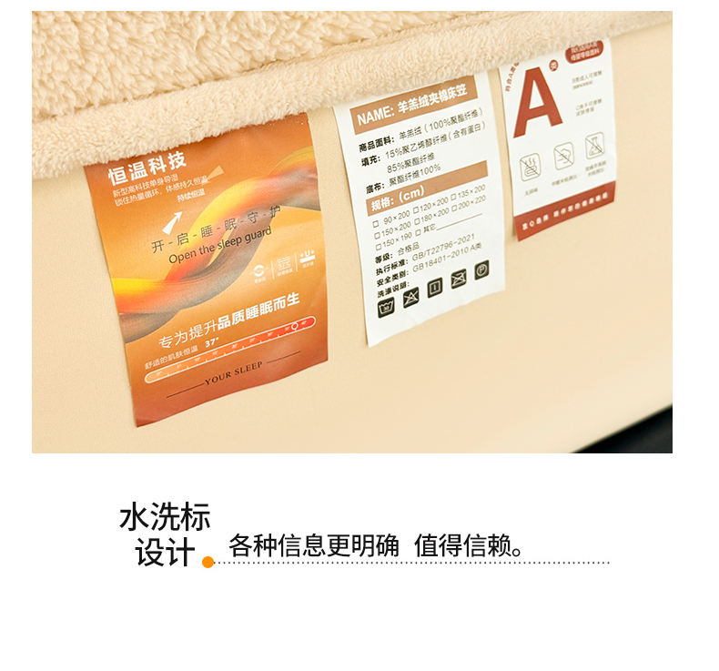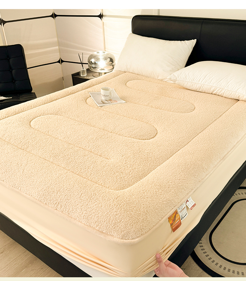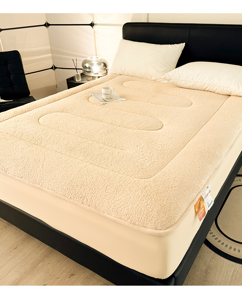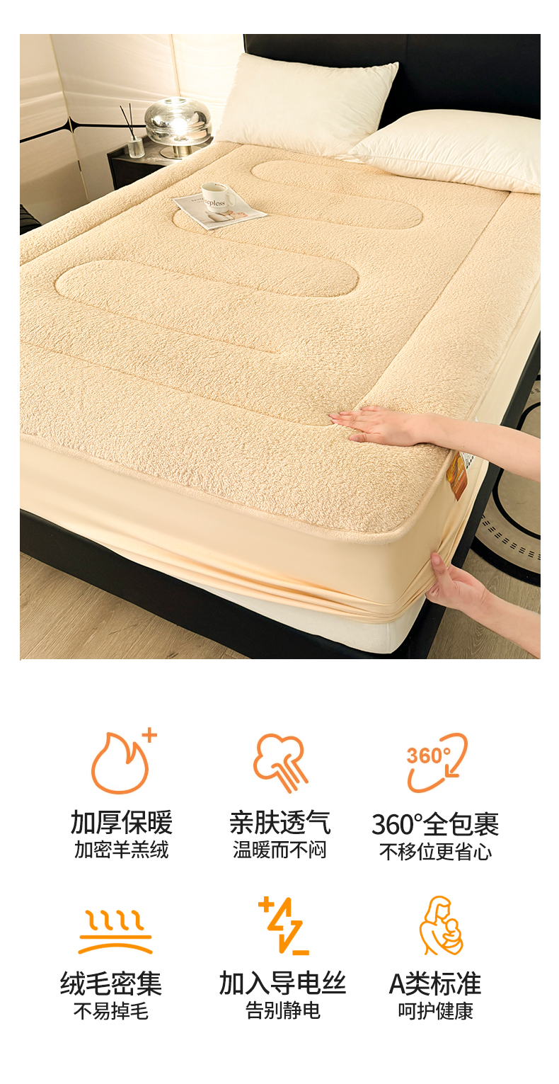 商品名称:雯豆家纺 2024新款加厚羊羔绒夹棉床笠纯色素色保暖床垫保护套 羊羔绒床笠-浅咖