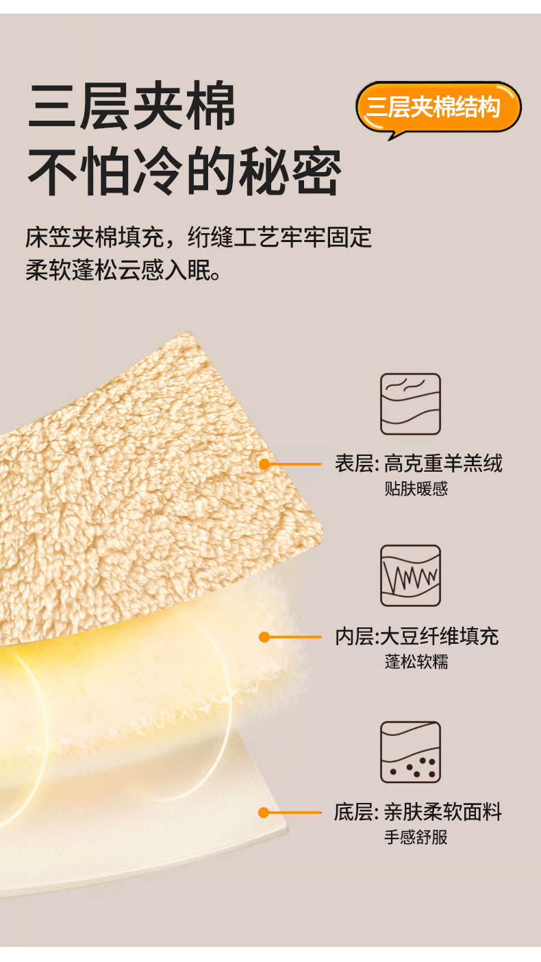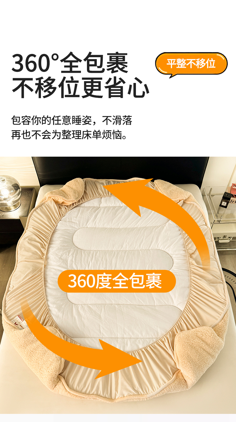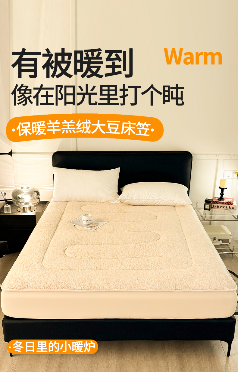雯豆家纺 2024新款加厚羊羔绒夹棉床笠纯色素色保暖床垫保护套 羊羔绒床笠-浅咖