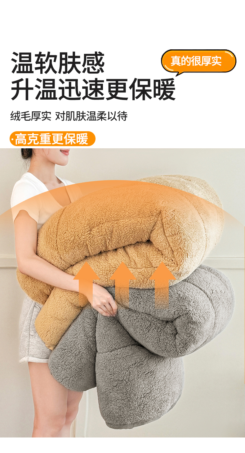 (总)雯豆家纺 2025秋冬新款加厚皱皱绒被子冬被高档被芯双人单人被子,皱皱绒冬被-高级灰,皱皱绒冬被-奶咖