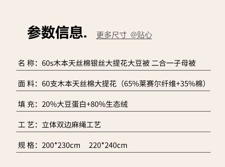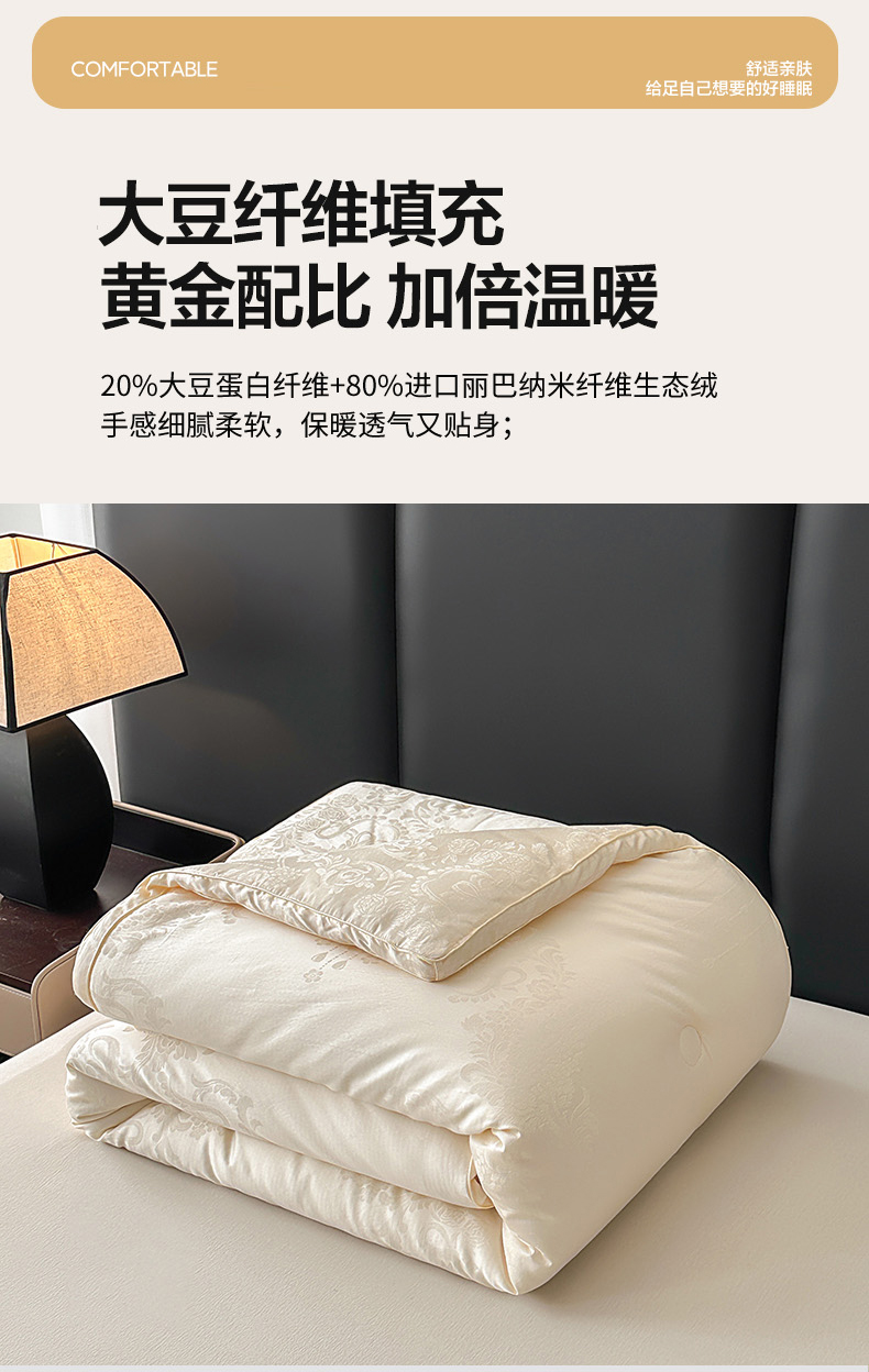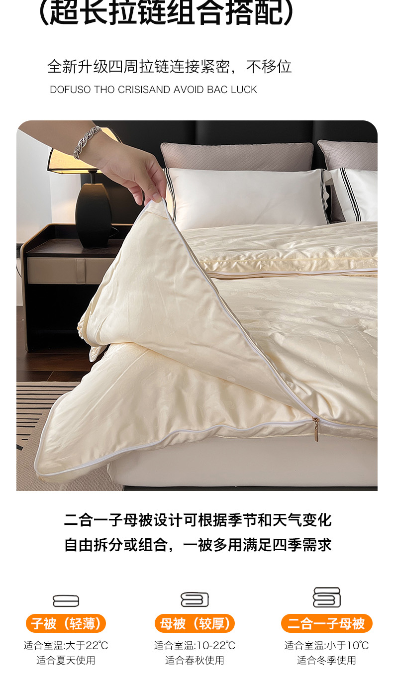 商品名称:(总)雅高 2025雅韵系列-60s木本天丝棉银丝大提花大豆纤维立体冬被拉链二合一子母被双胎被子加厚大豆被被芯