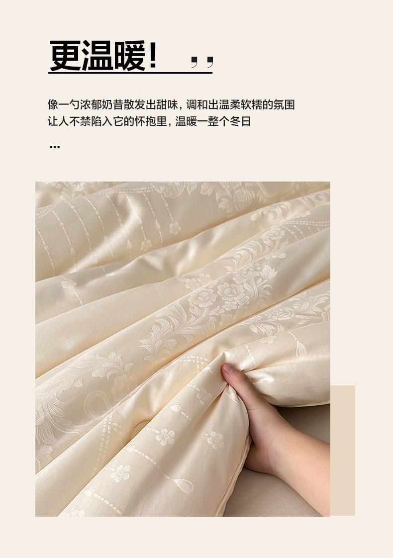 (总)雅高 克洛伊-高定高密全棉纯棉贡缎银丝大提花51%有机生物基大豆被冬被被子被芯加厚全棉被子,克洛伊金,克洛伊粉