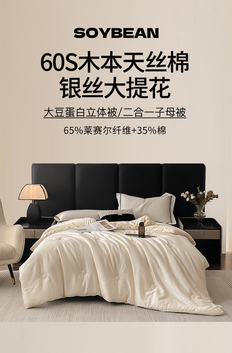 (总)雅高 2025雅韵系列-60s木本天丝棉银丝大提花大豆纤维立体冬被拉链二合一子母被双胎被子加厚大豆被被芯