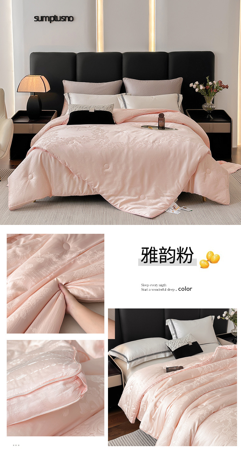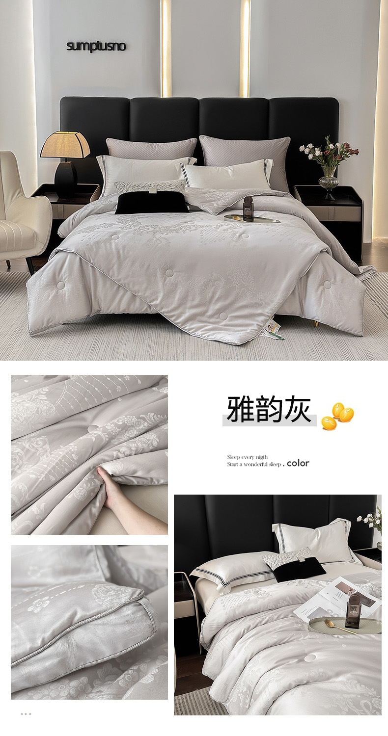 总雅高2025格瑞—A类全棉轻奢贡缎大提花抗菌轻奢立体冬被被子被芯,格瑞白,格瑞粉,格瑞灰