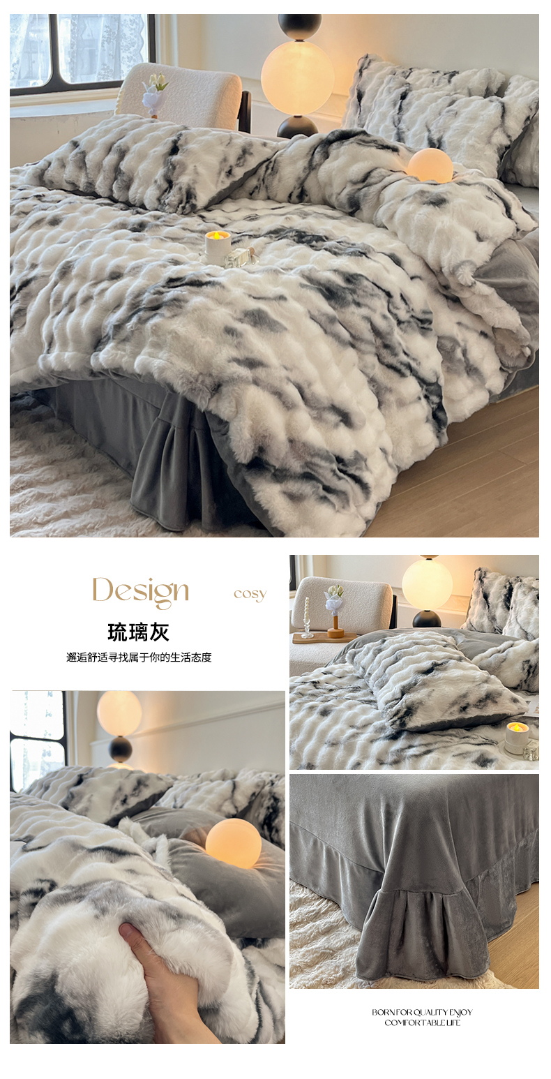 当前位置: 91家纺网 > 商品网购 > 床品套件 > 四件套 > 兔毛绒四件套 > 铠畅家纺 2024新款兔毛绒牛奶绒四件套 琉璃灰