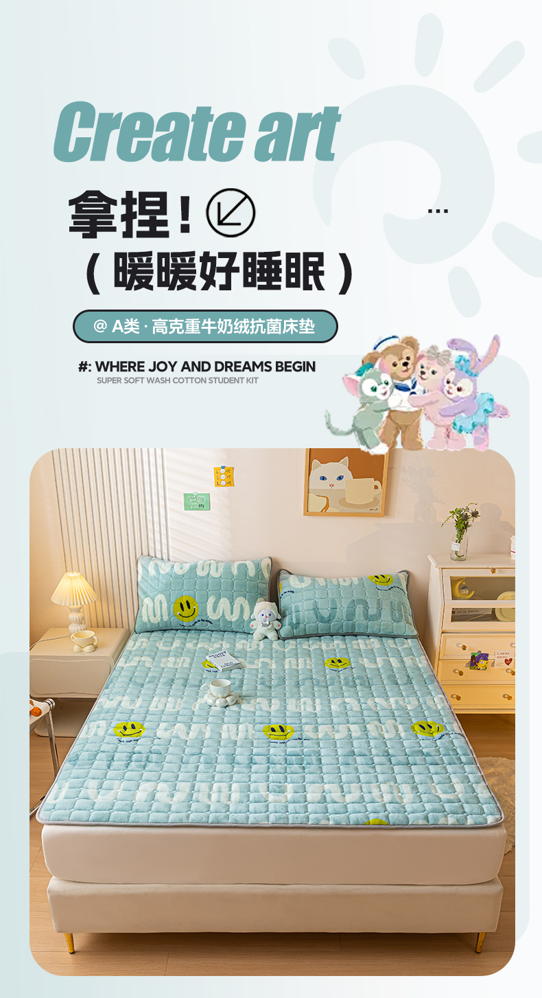 (总)卡伦家纺 2025新款A类牛奶绒夹棉加厚床垫单人双人床垫保护垫,爱的印记,爱心熊,安妮宝贝,宝石蓝,缤纷小可爱,草莓之恋,呆萌恐龙,高级灰,高雅紫,红豆沙,花间蘑力,花开一夏,花之谷,金叶飘香,开心乐园,梦想创造家,抹茶绿,南瓜灰灰,南瓜派,青春曲调,轻羽飞扬,甜蜜爱心,甜心小熊,香槟金,心相印,星幻恐龙,星梦露,熊熊世界,樱桃花语,云端漫步