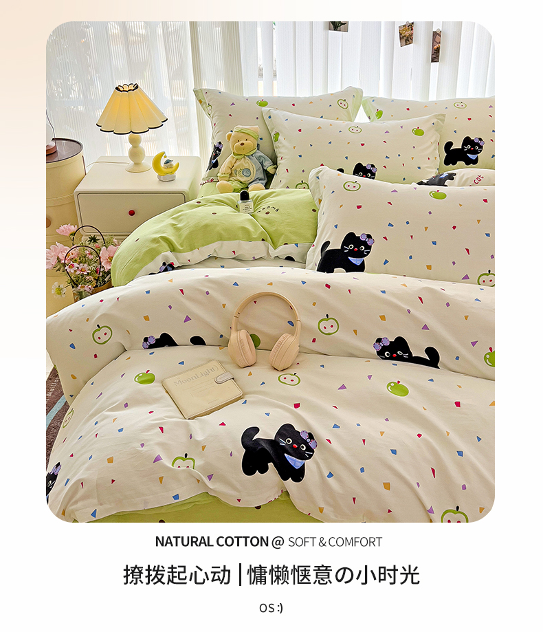 当前位置: 91家纺网 > 商品网购 > 床品套件 > 四件套 > 全棉普通四件套 > 恩泽家纺 2024新款亲肤柔软全棉印花单品及套件--四件套 小黑猫