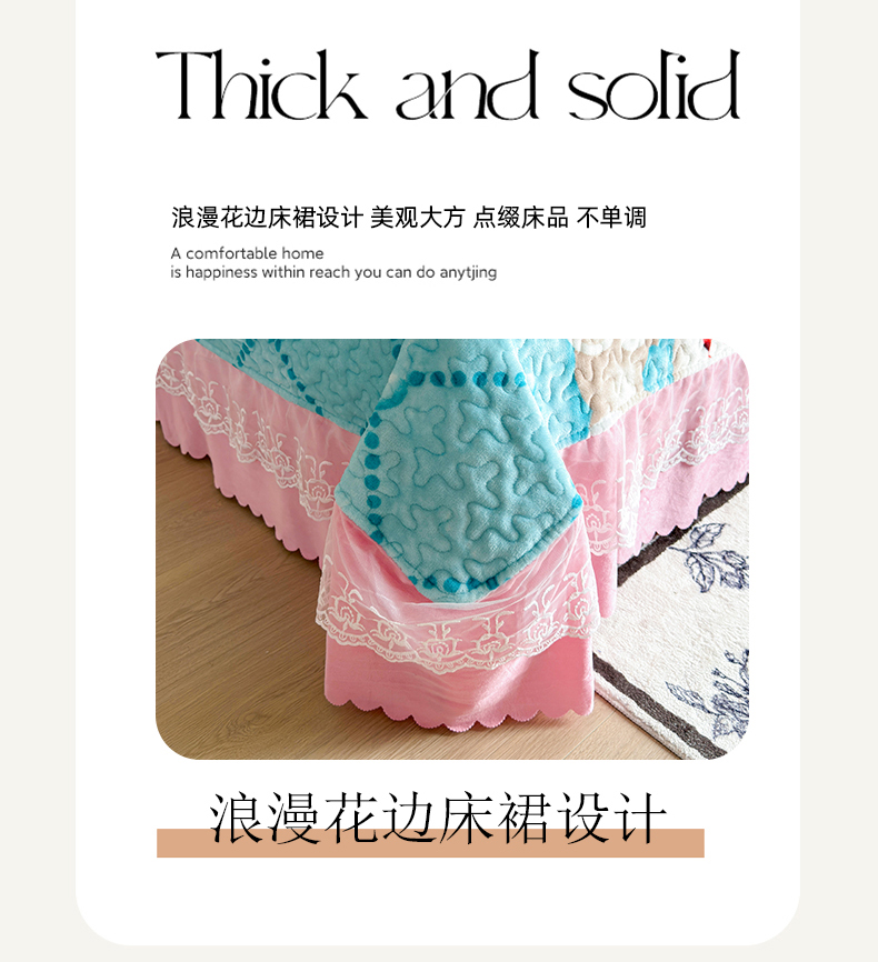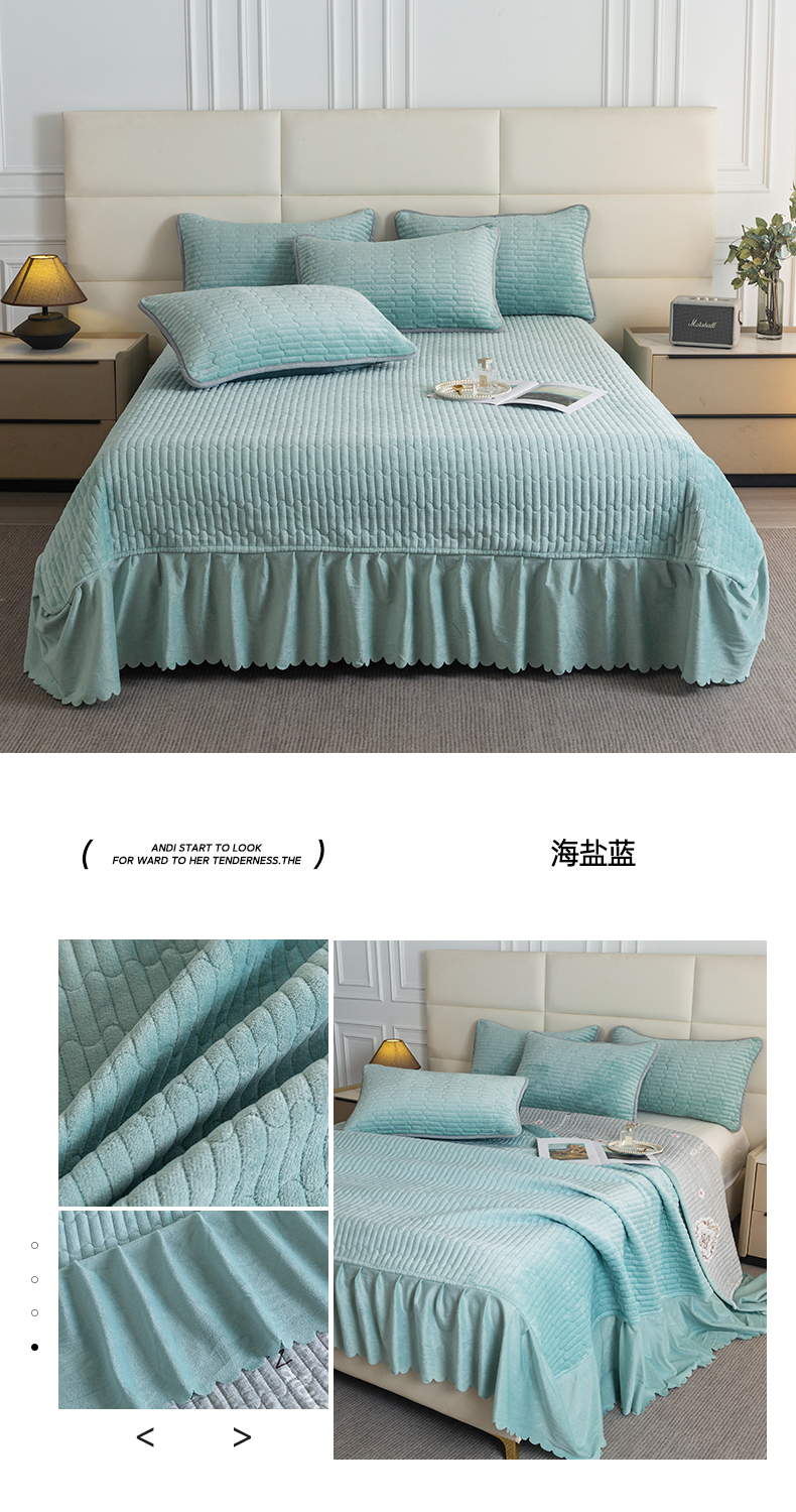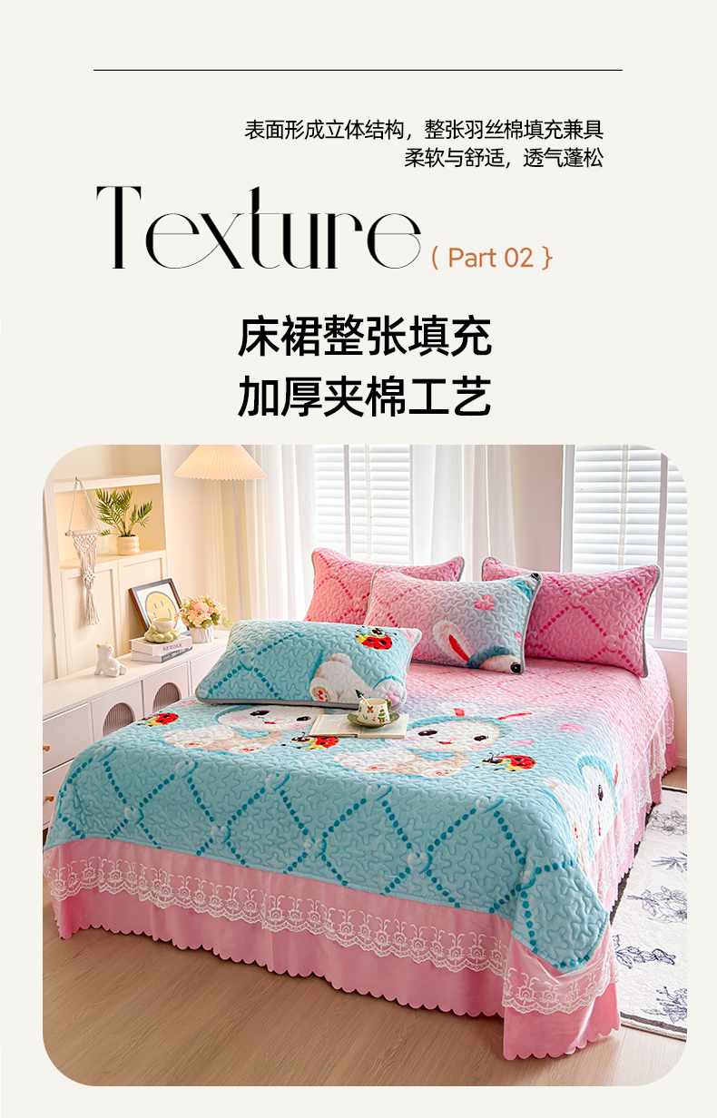 商品名称:(总)梓依家纺 2025新款牛奶绒单床裙款蕾丝床盖三件套四件套