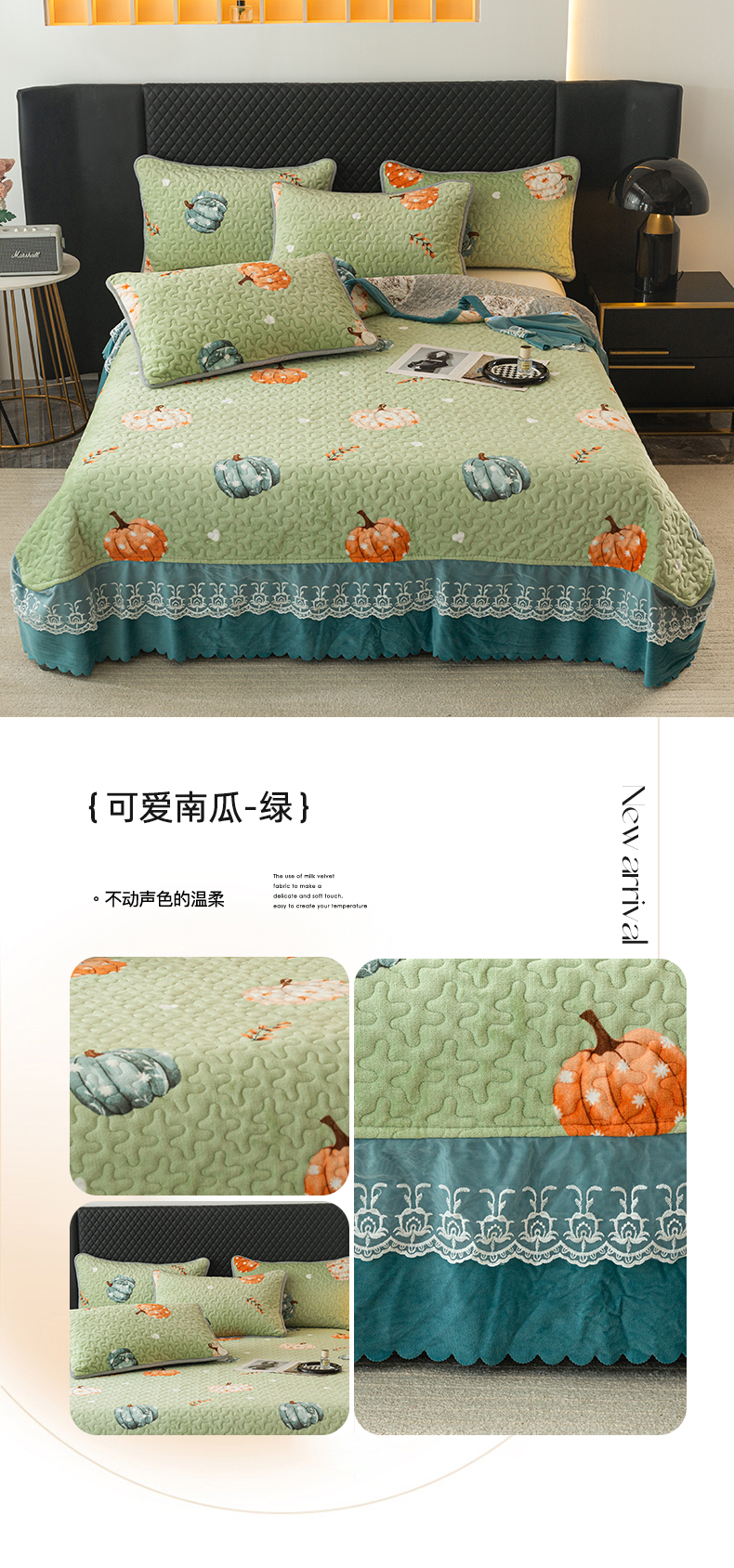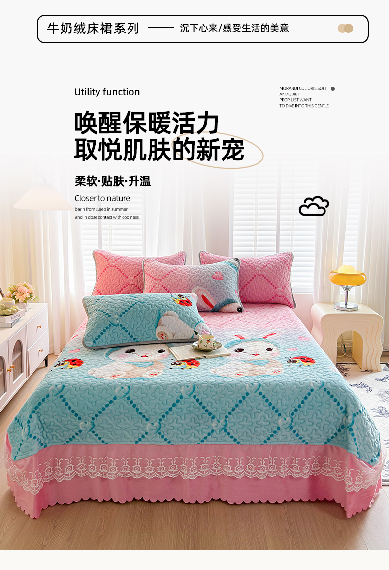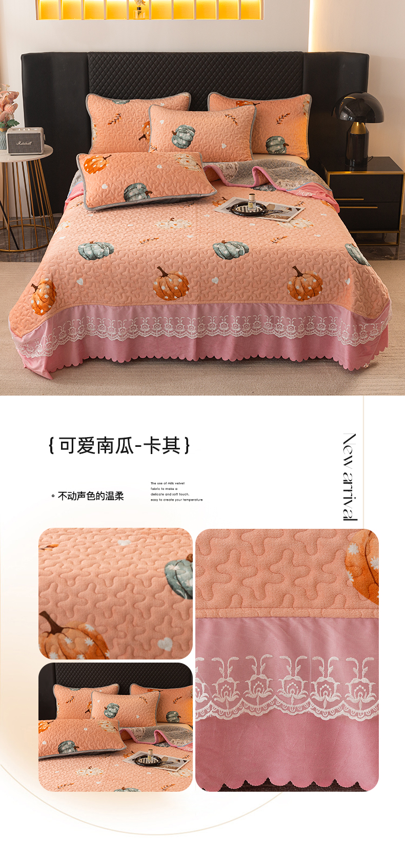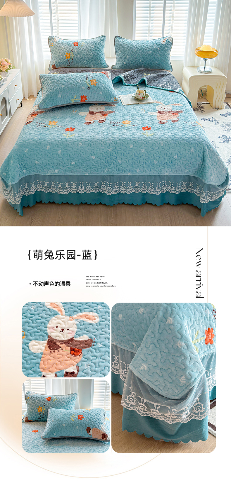 (总)梓依家纺 2025新款牛奶绒单床裙款蕾丝床盖三件套四件套,爱心草莓,爱心点点,爱心熊,宝利格,波点熊,花漾玫瑰,花语,可爱南瓜,可爱南瓜-绿,可爱松鼠,可爱兔兔,库洛米,蓝白条纹格,萌兔乐园-粉,萌兔乐园-蓝,绵绵细语,奇趣南瓜,史努比,摇曳,优雅蝴蝶结,海盐蓝,海洋蓝,奶茶色,奶油紫,樱花粉,优雅灰,砖红色