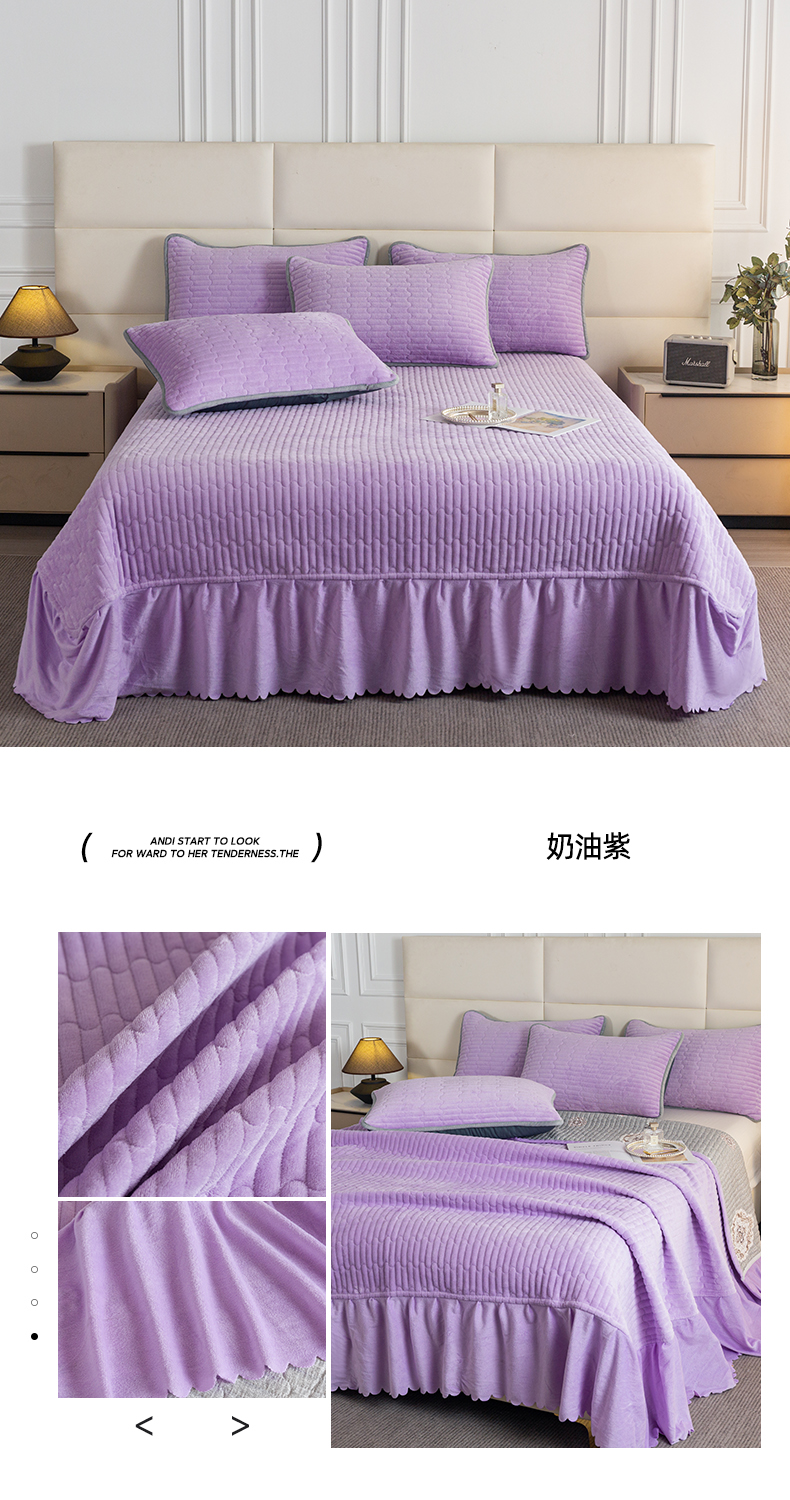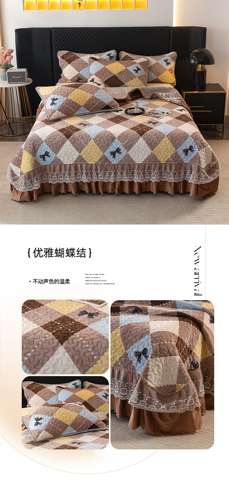 (总)梓依家纺 2025新款牛奶绒单床裙款蕾丝床盖三件套四件套