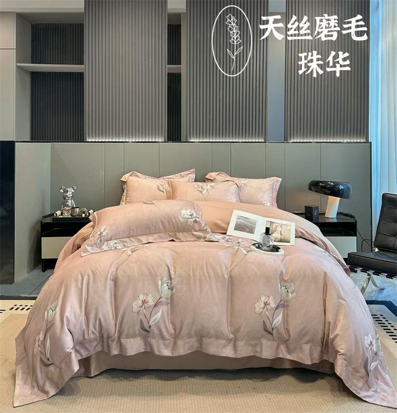 舒慕 2025新款阳绒天丝棉磨毛数码印花缇芙绒四件套 珠华