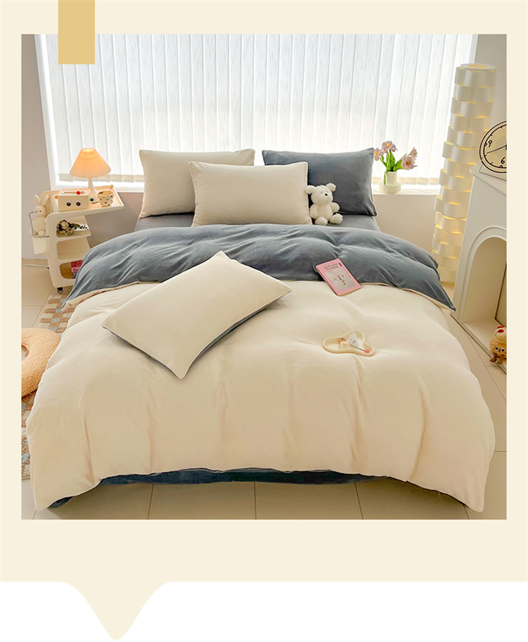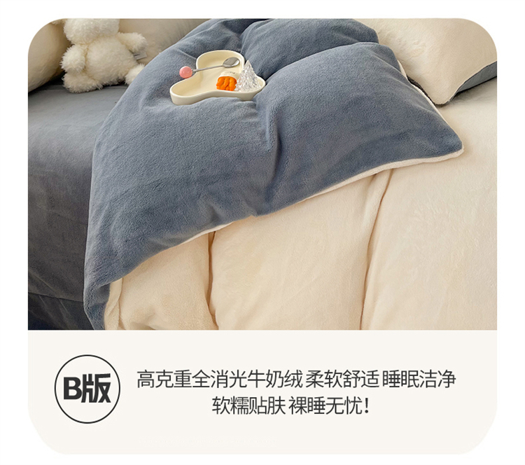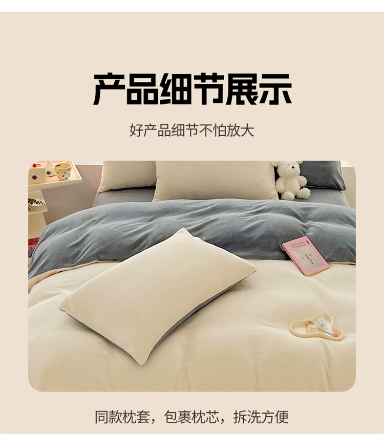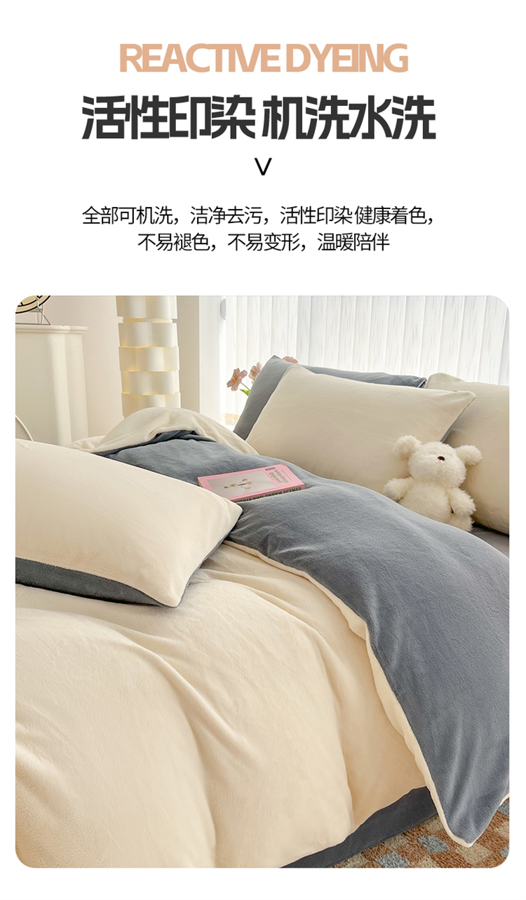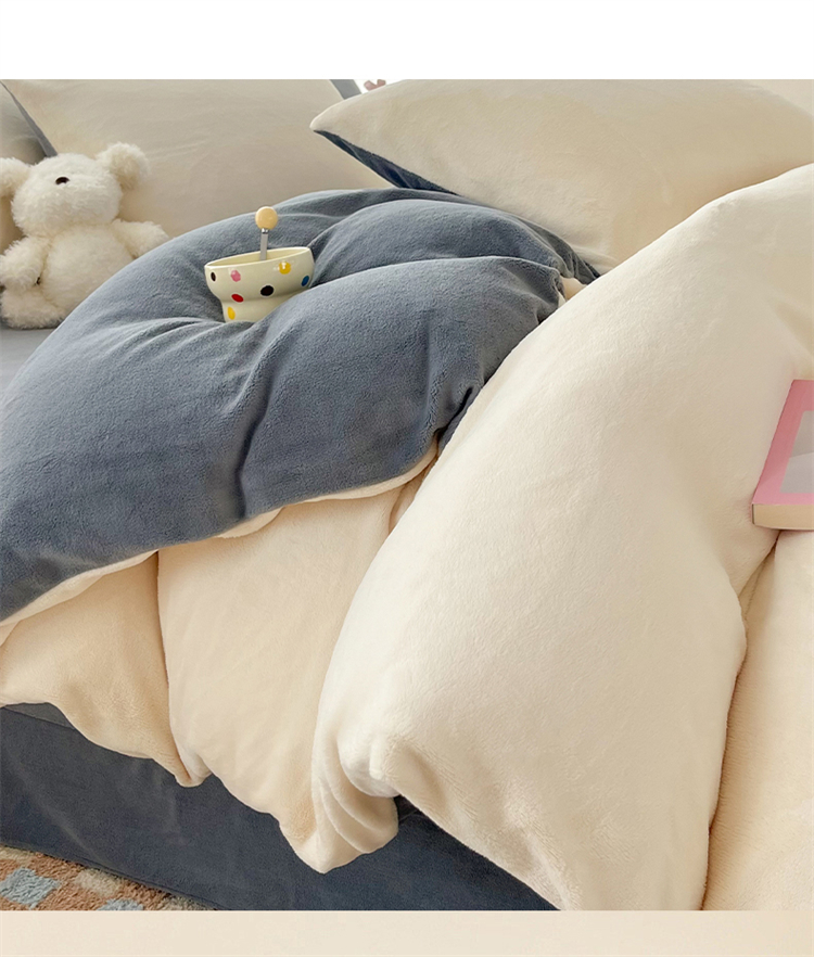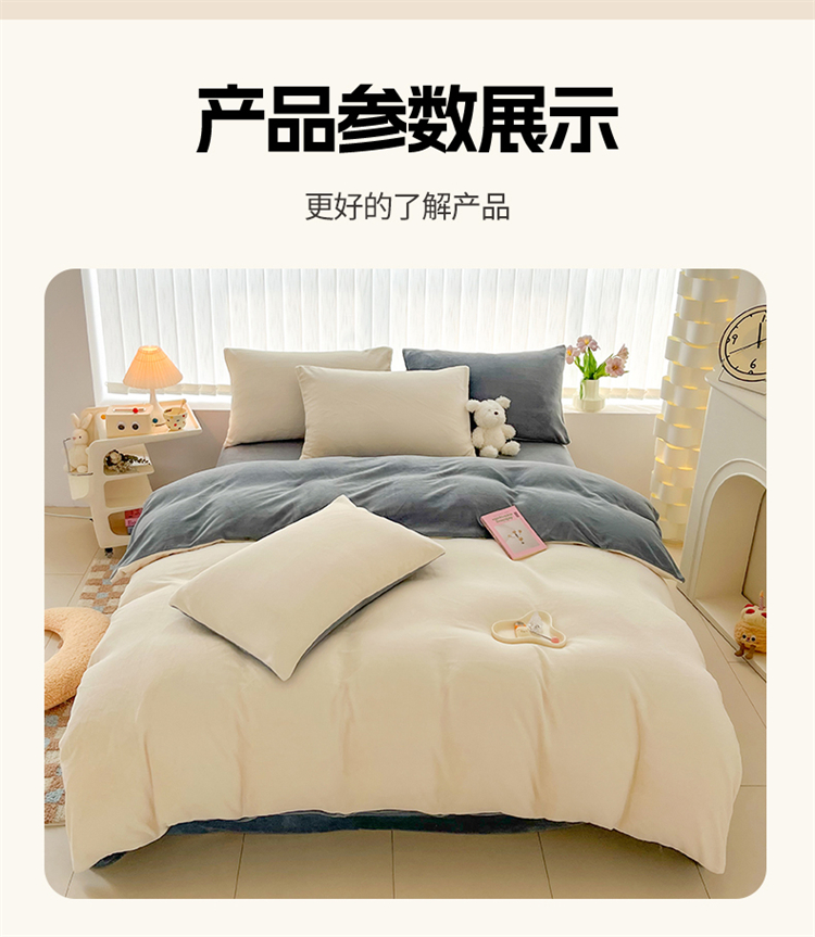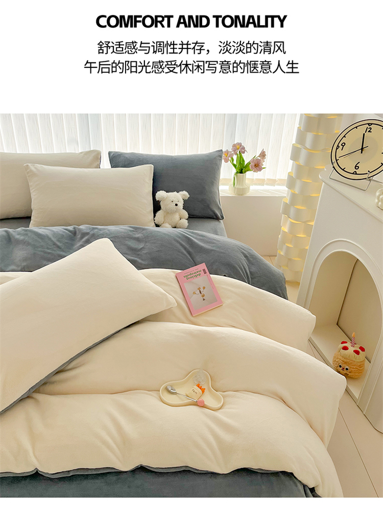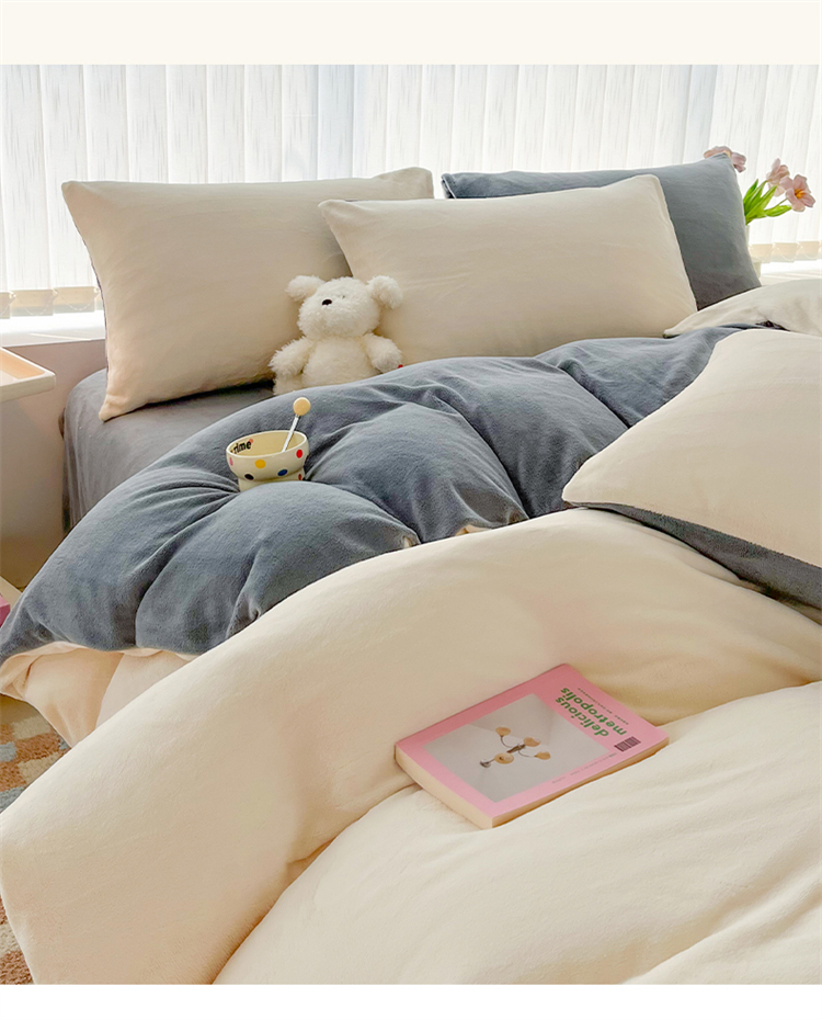 商品名称:言熙居 2024新款纯色双拼30克8一9斤牛奶绒四件套 奶白拼浅灰