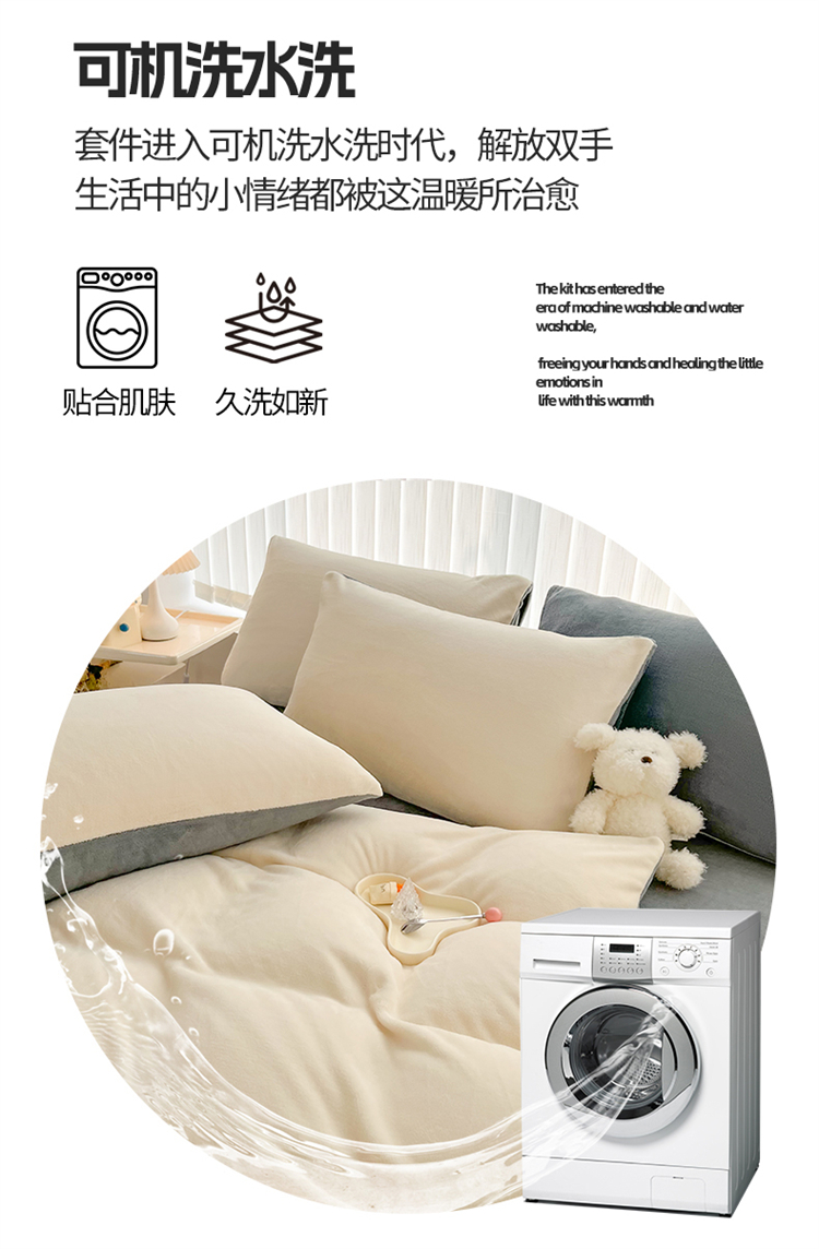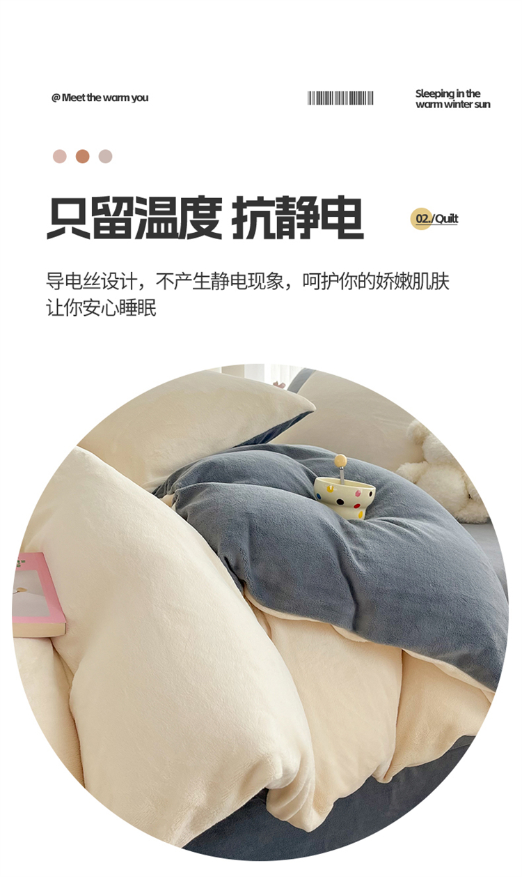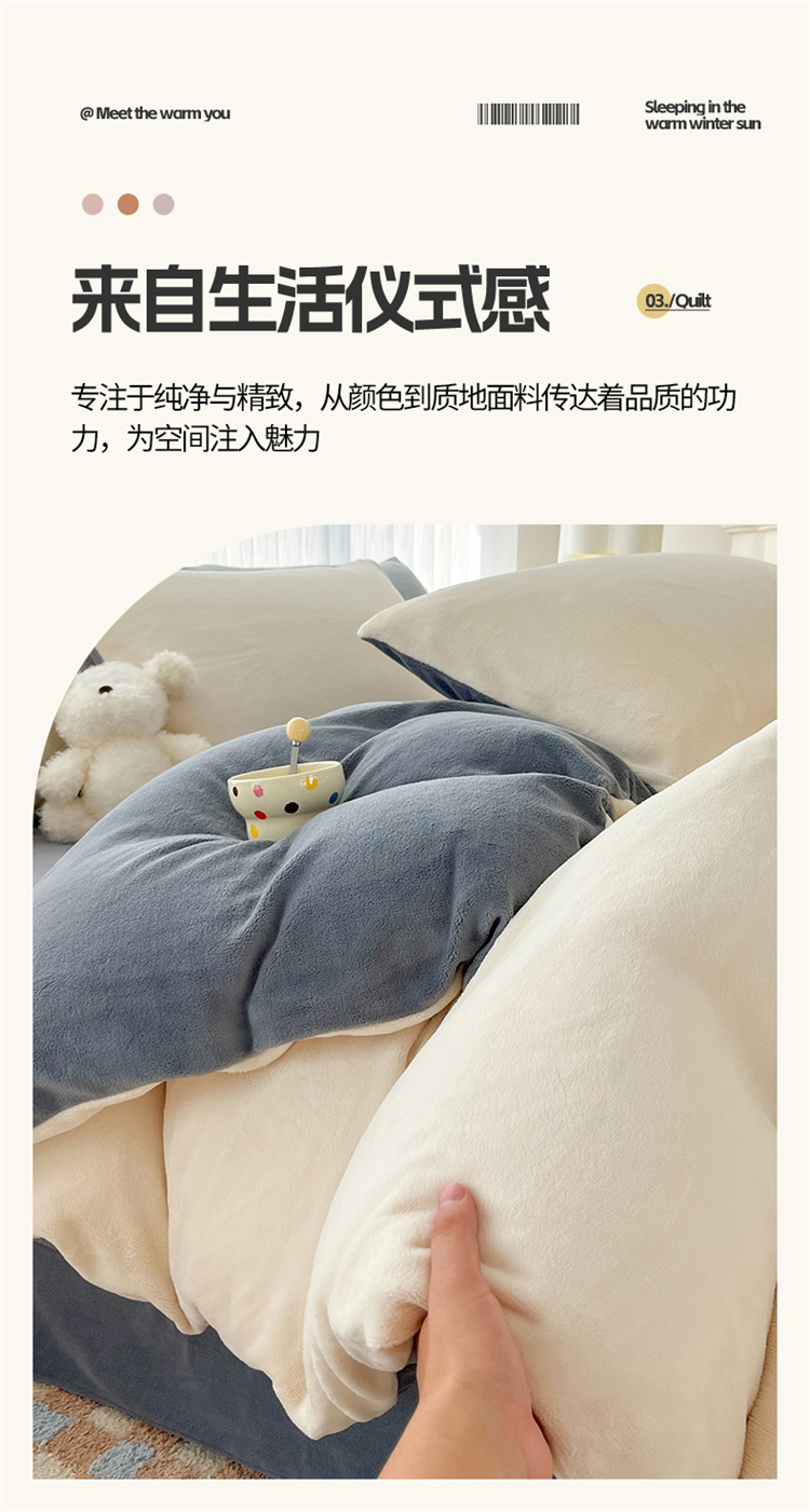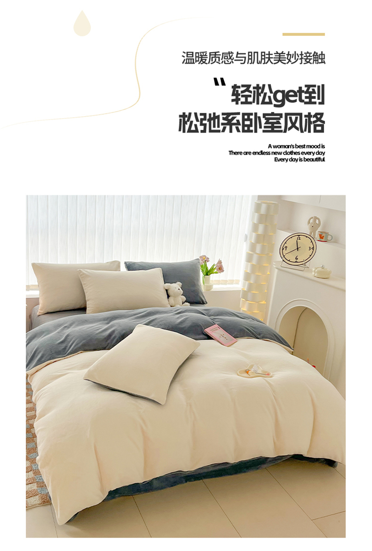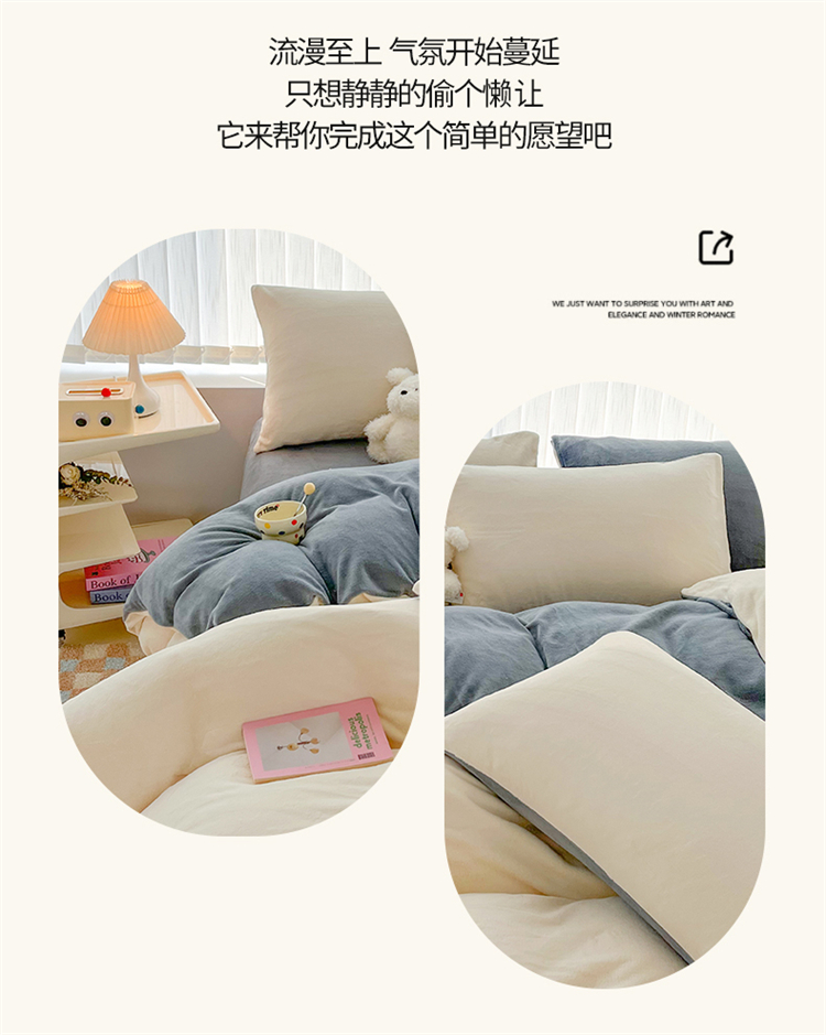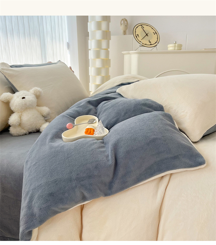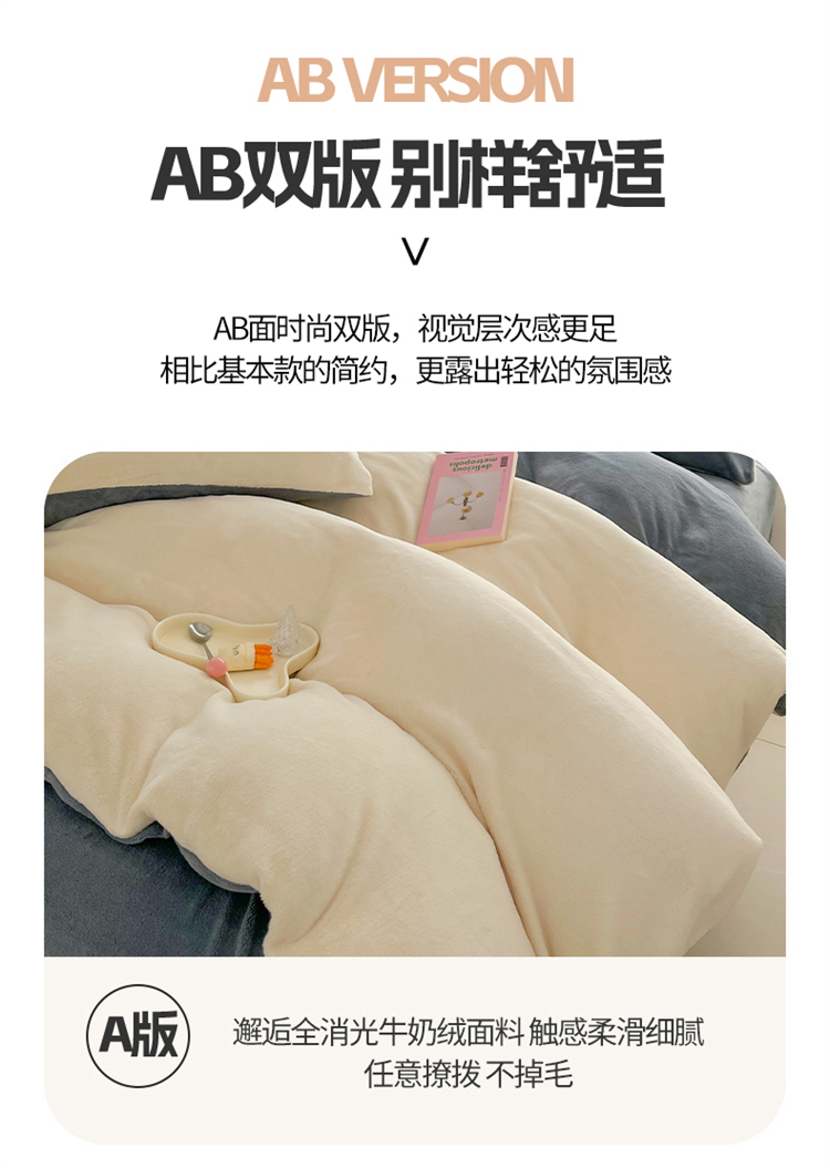 商品名称:言熙居 2024新款纯色双拼30克8一9斤牛奶绒四件套 奶白拼浅灰