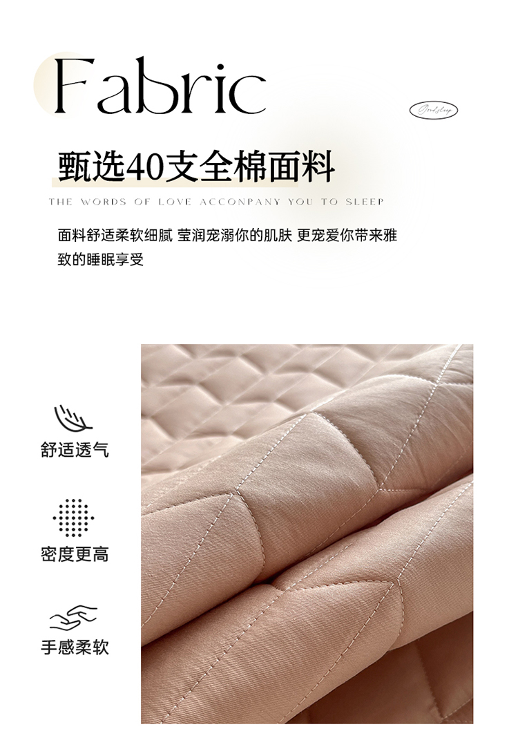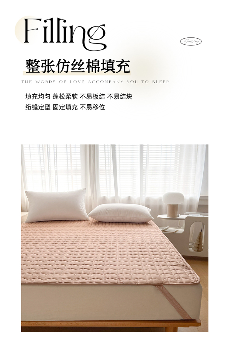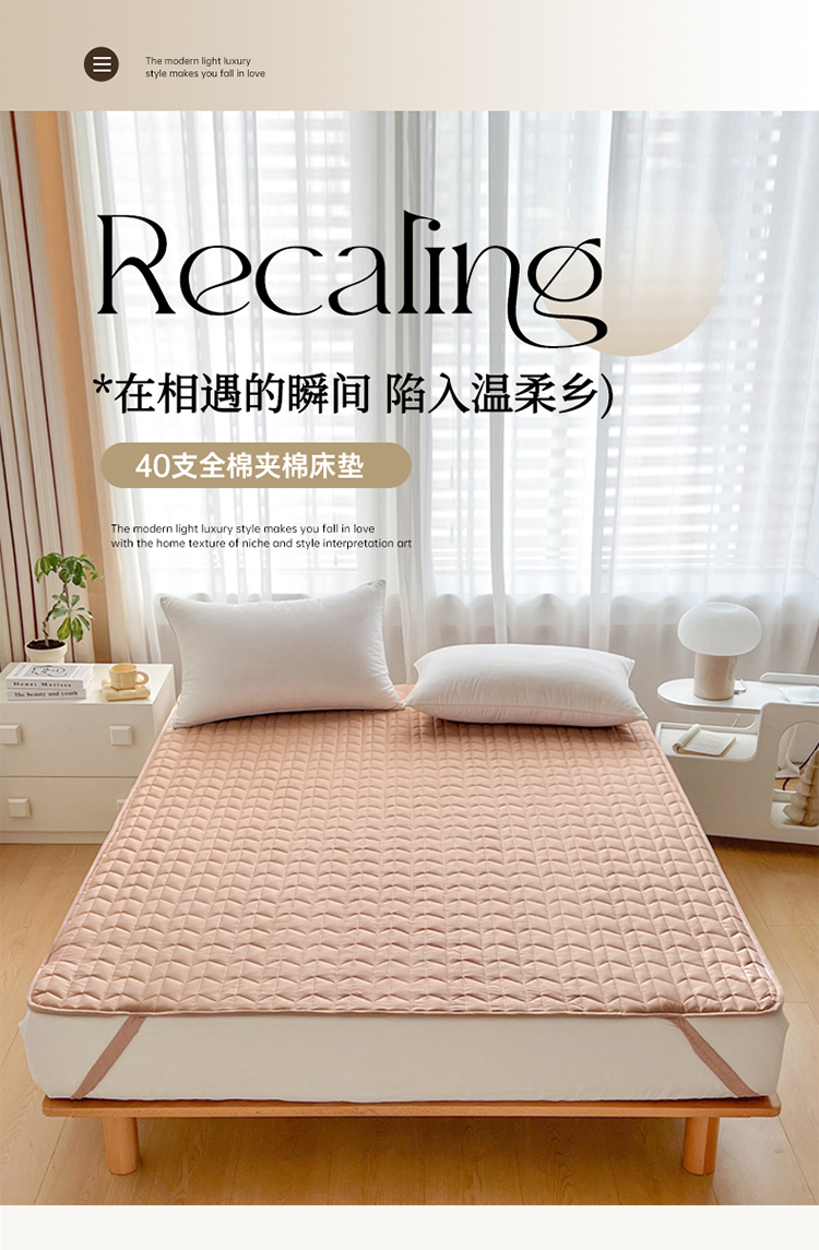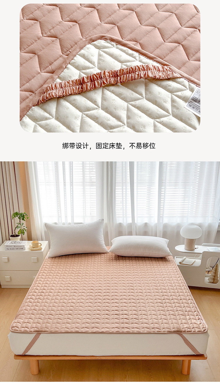 商品名称:2024新款40支全棉夹棉床垫 浅粉