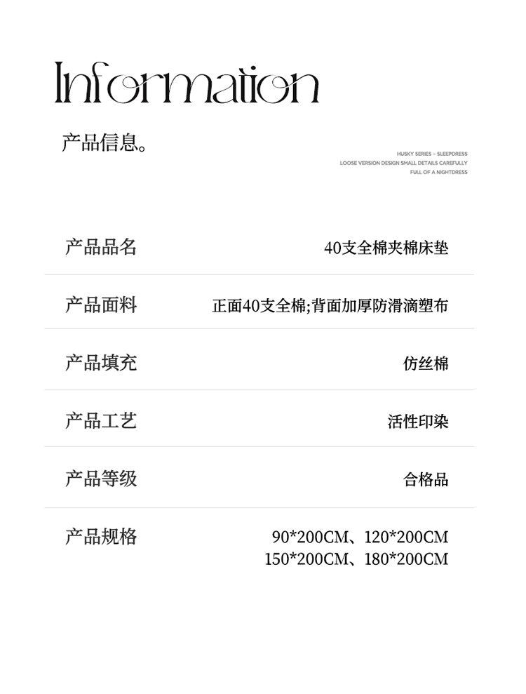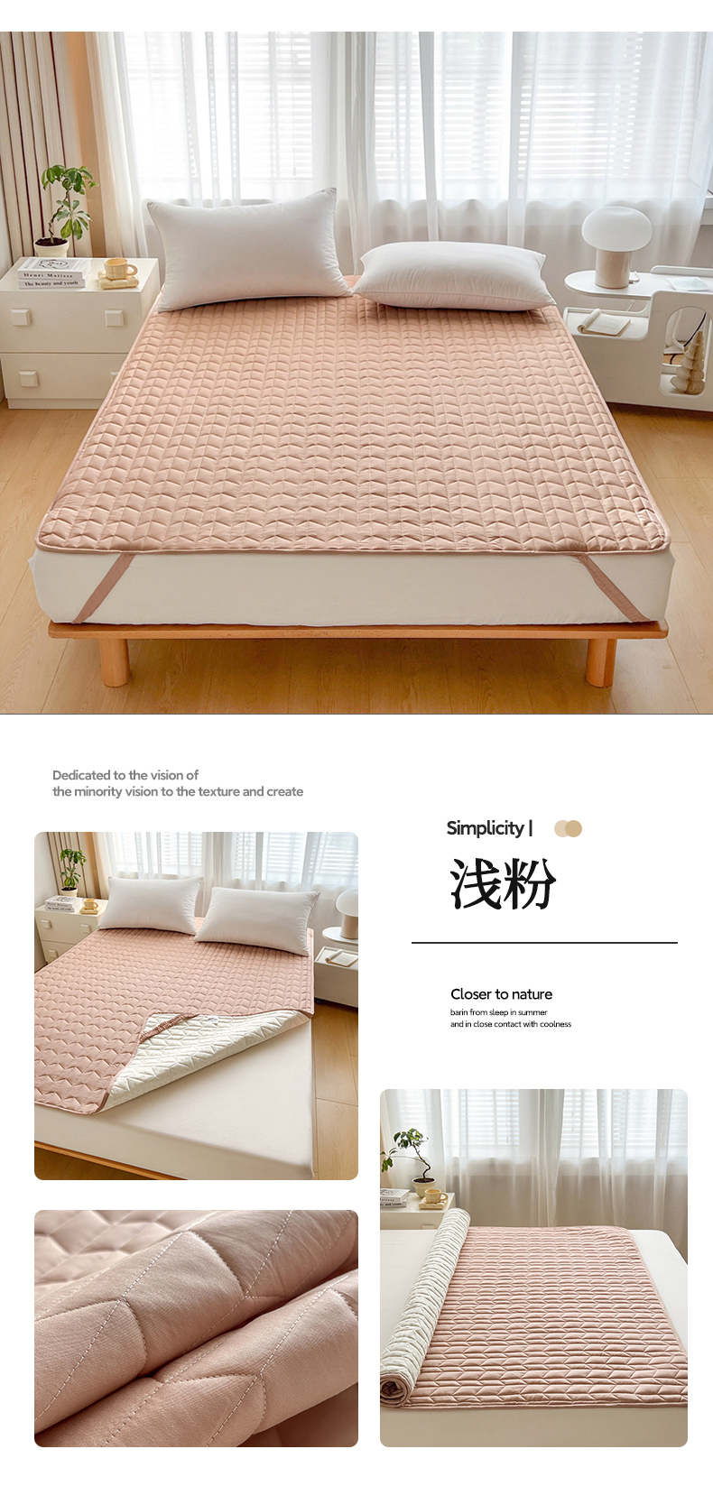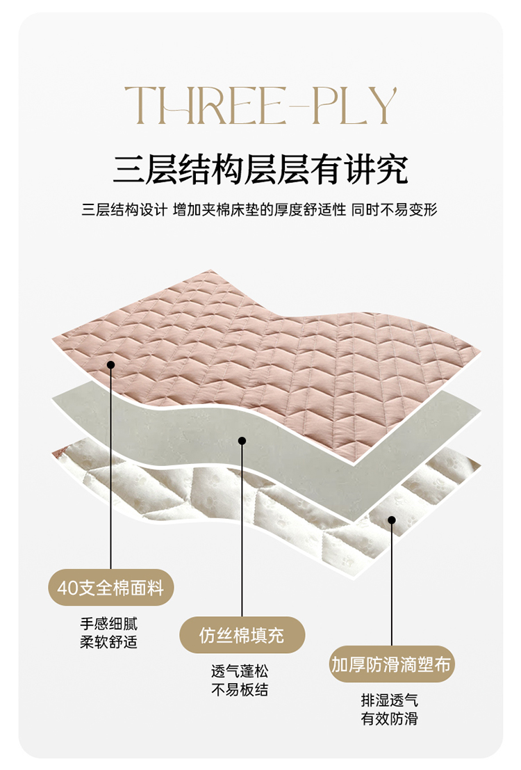 商品名称:2024新款40支全棉夹棉床垫 浅粉