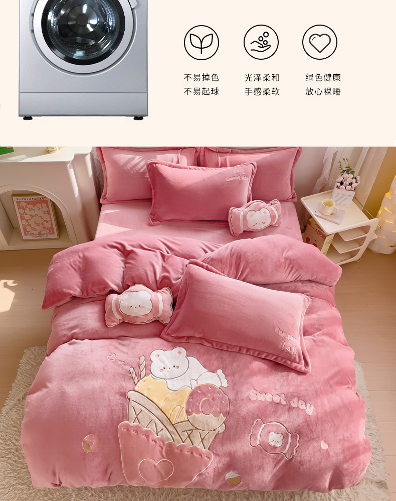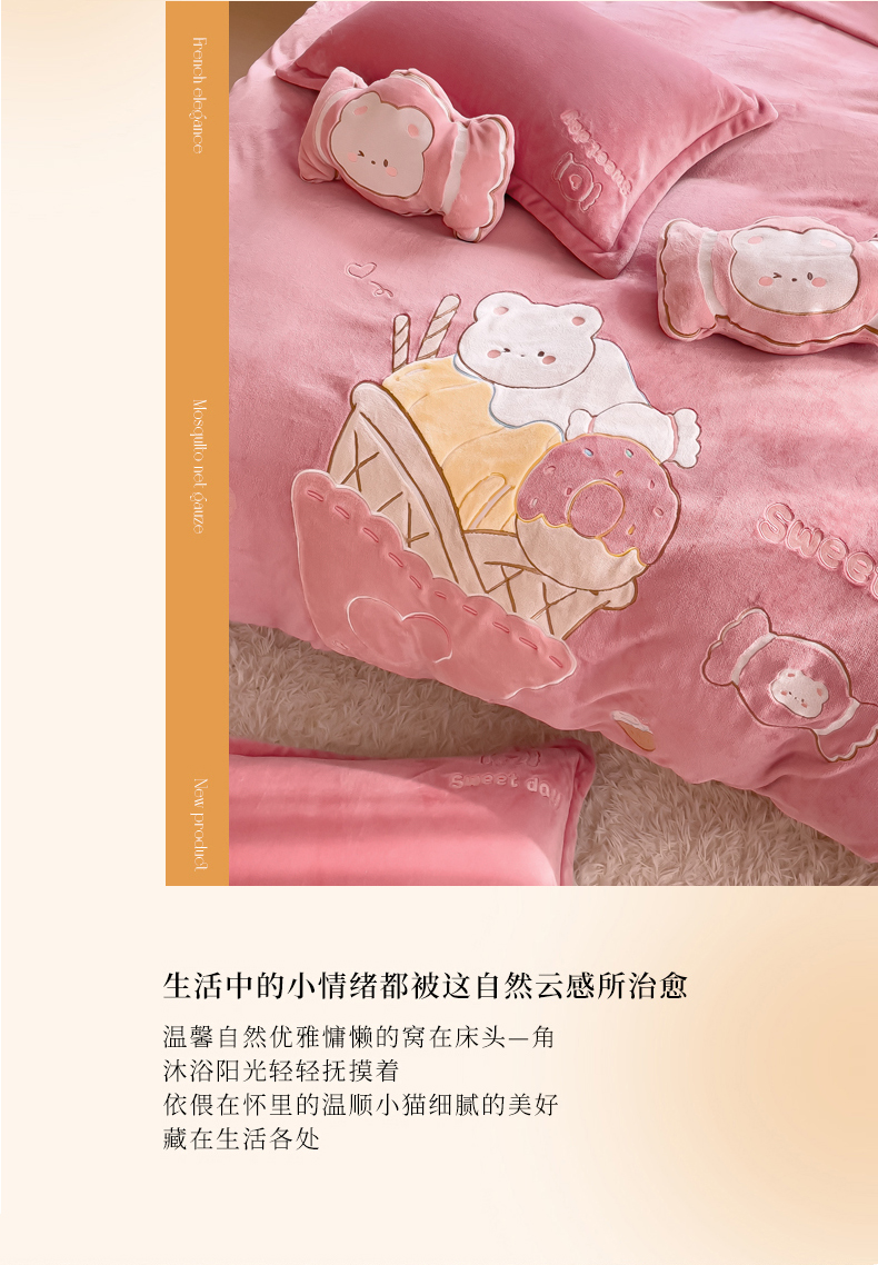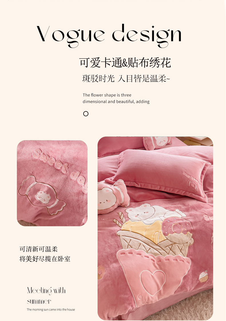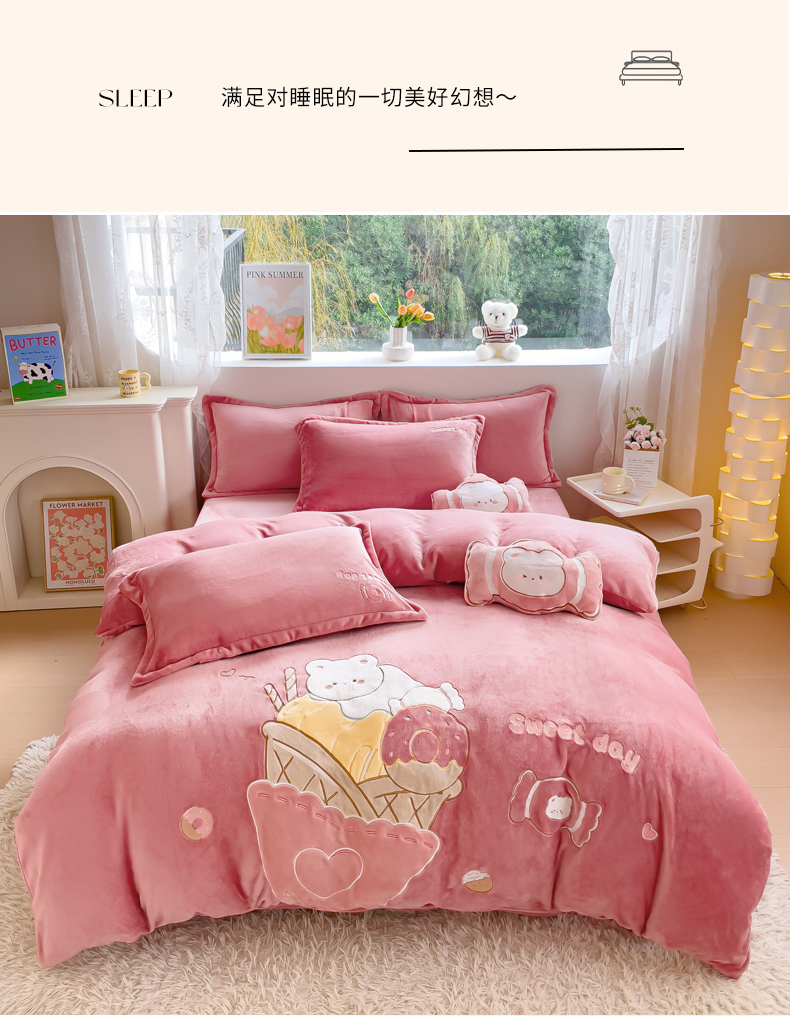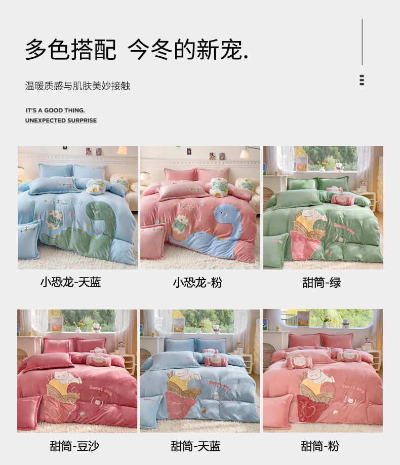 (总)【苏东来】加绒加厚大版卡通牛奶绒贴布绣刺绣四件套冬季小清新儿童卡通保暖宝宝婴儿绒兔绒法莱绒金貂绒学生三件套件被套四件套