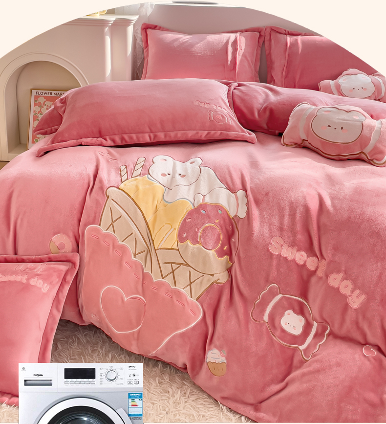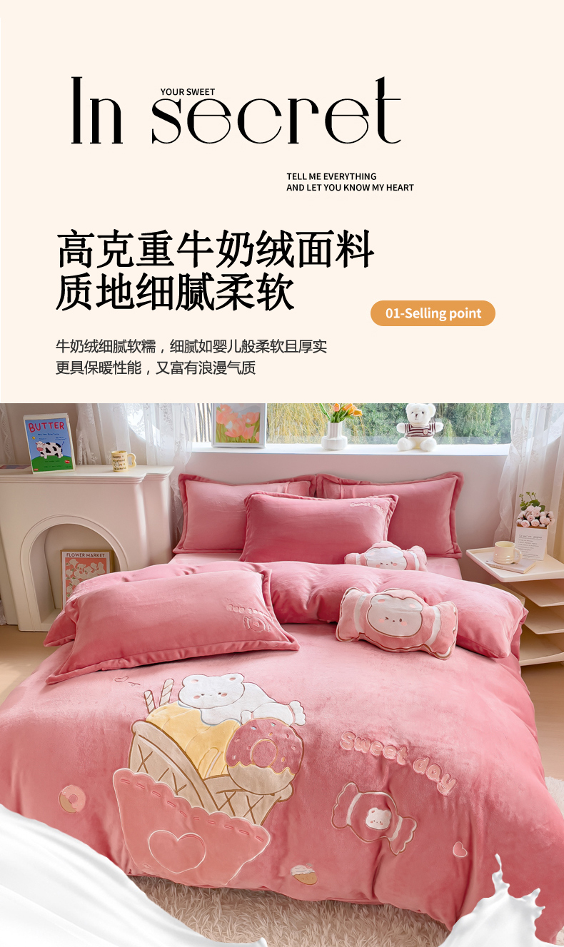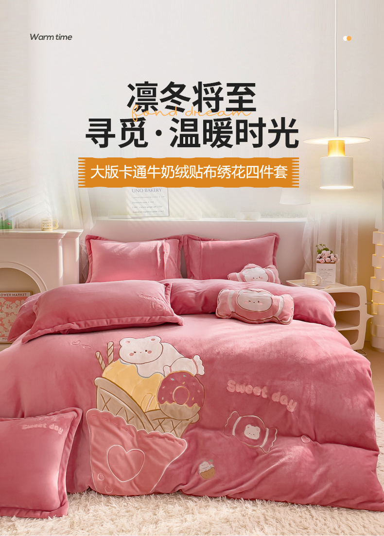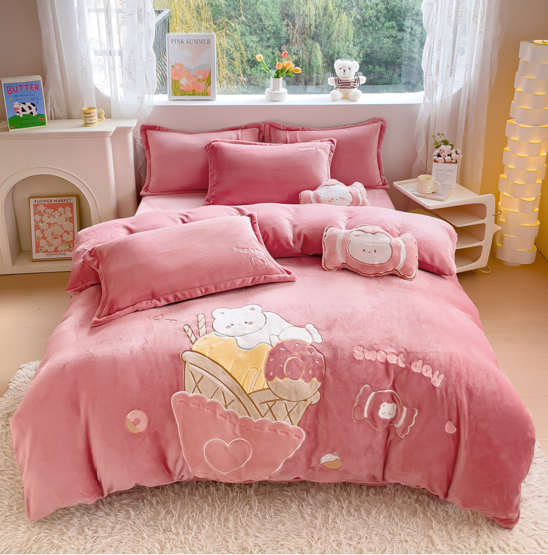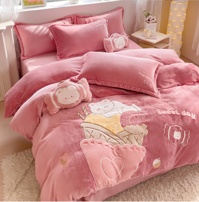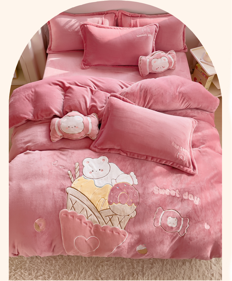 (总)【苏东来】加绒加厚大版卡通牛奶绒贴布绣刺绣四件套冬季小清新儿童卡通保暖宝宝婴儿绒兔绒法莱绒金貂绒学生三件套件被套四件套