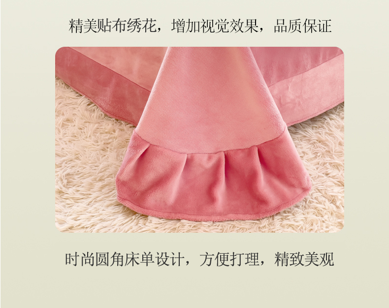 (总)【苏东来】2025高端加厚法式工艺款韩版盘花边纯色甜美公主赫本风拼接雕花兔毛绒牛奶绒四件套婴儿绒,甜心公主粉,甜心公主绿,甜心公主灰,小美满天蓝,小美满粉,小美满卡其