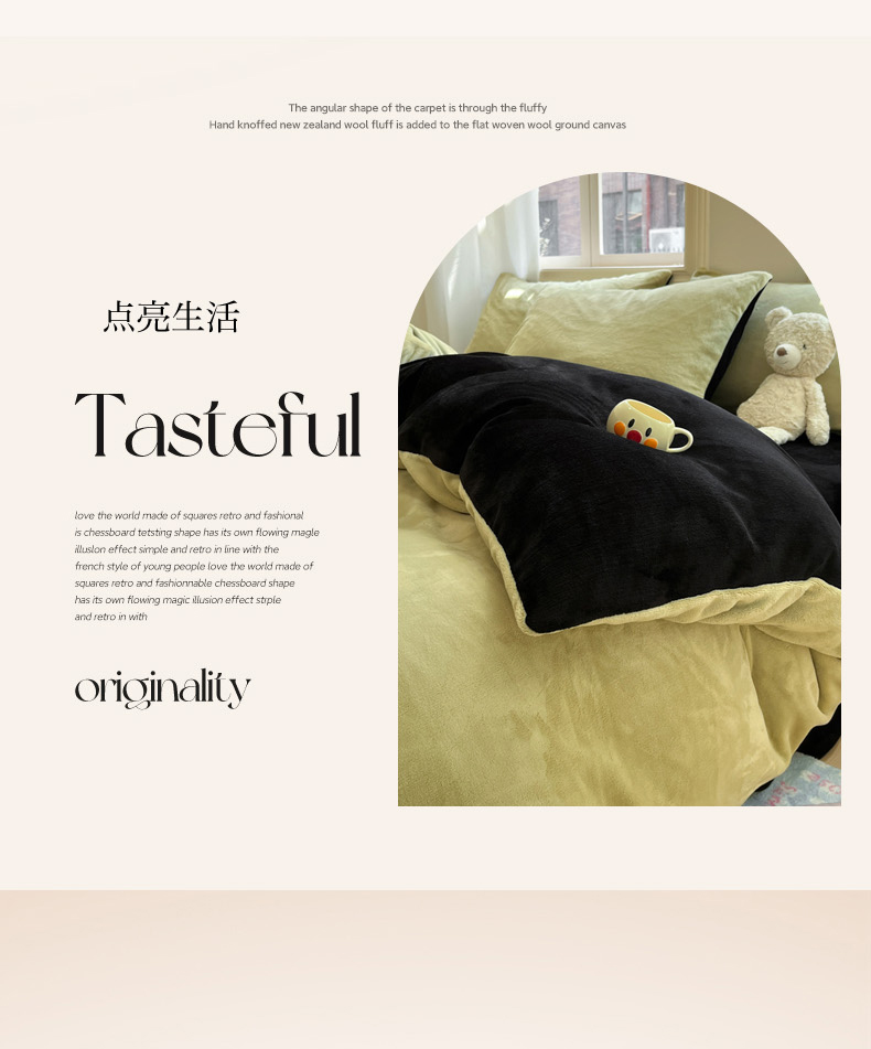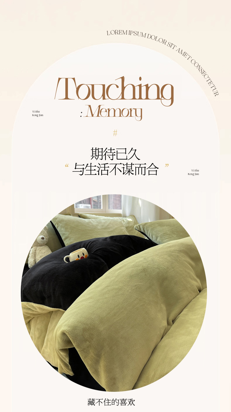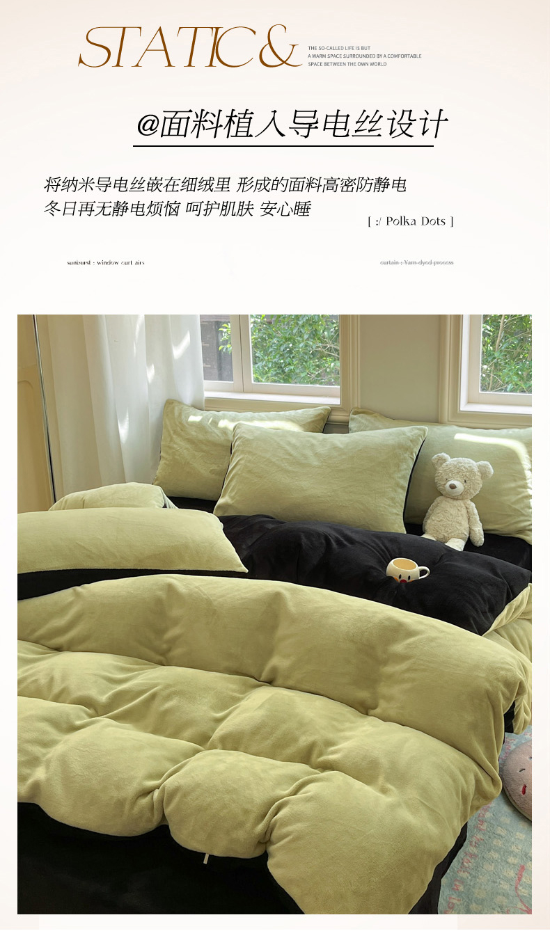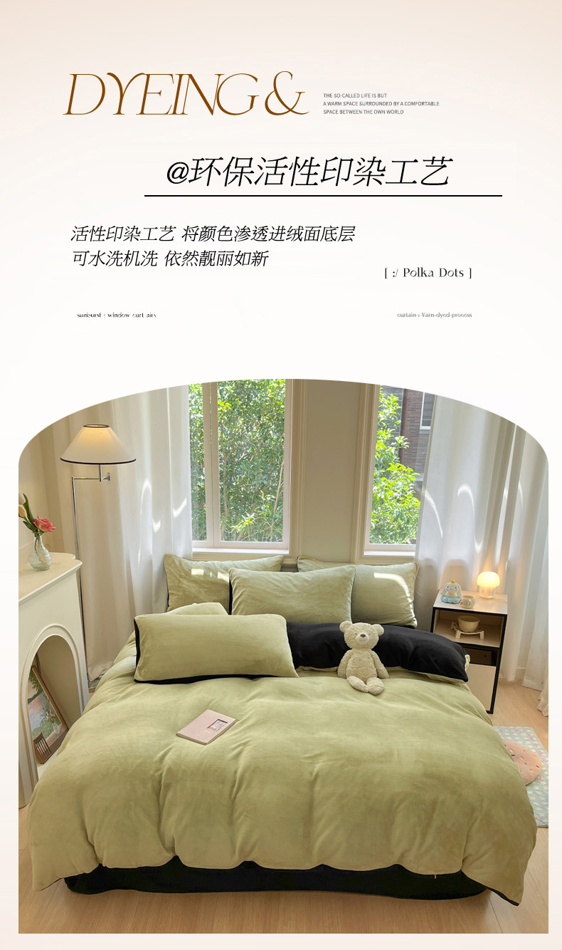 当前位置: 91家纺网 > 商品网购 > 床品套件 > 四件套 > 牛奶绒四件套 > 慕澄家纺 2024新款纯色双拼牛奶绒四件套 芥末绿+黑