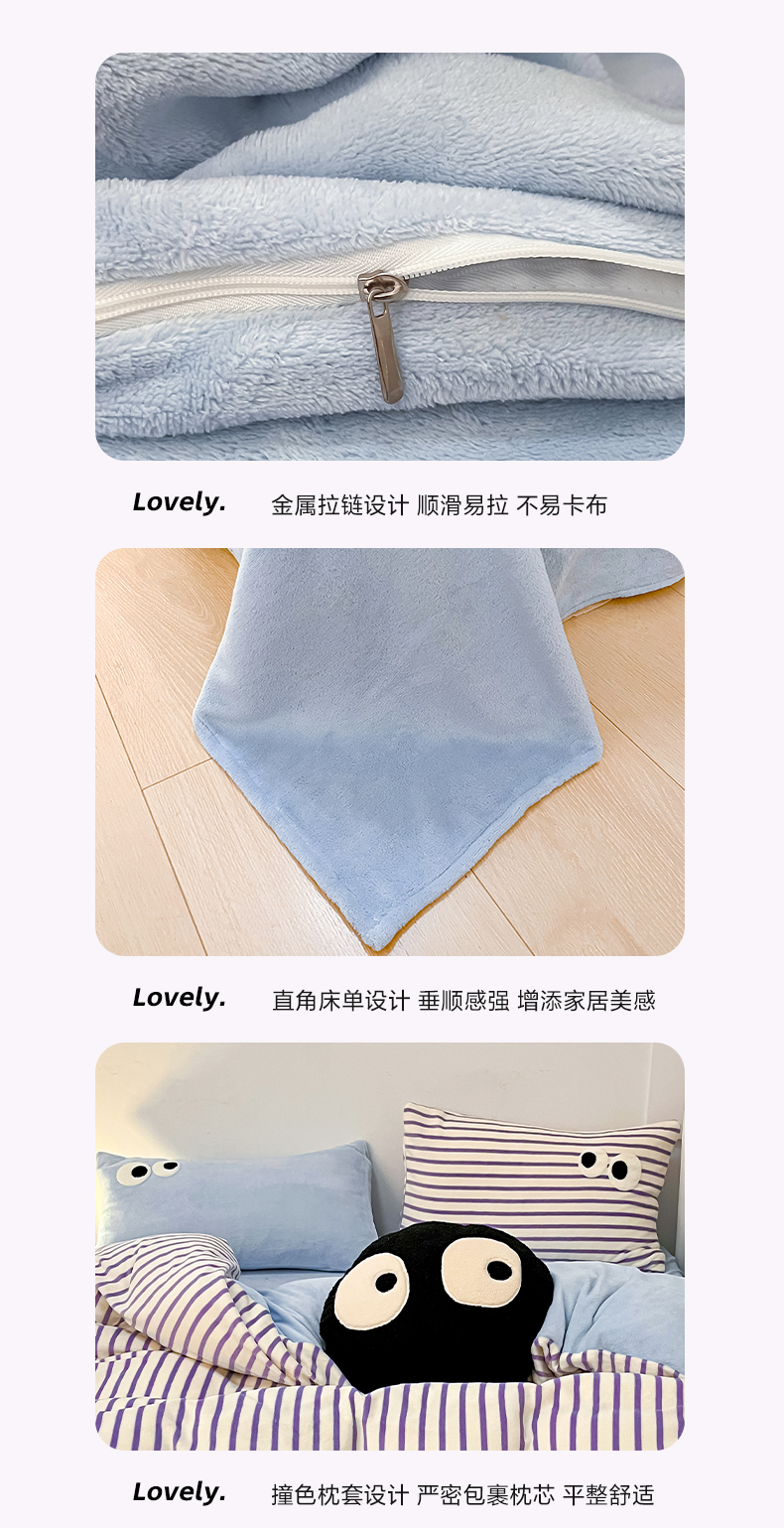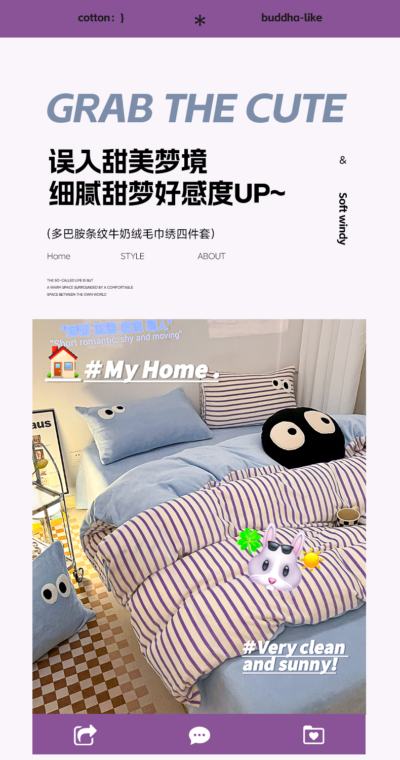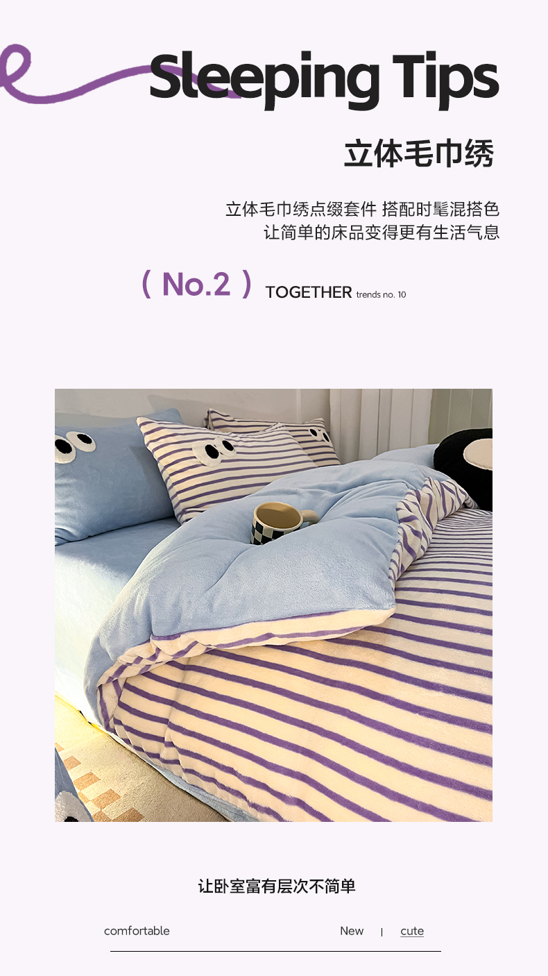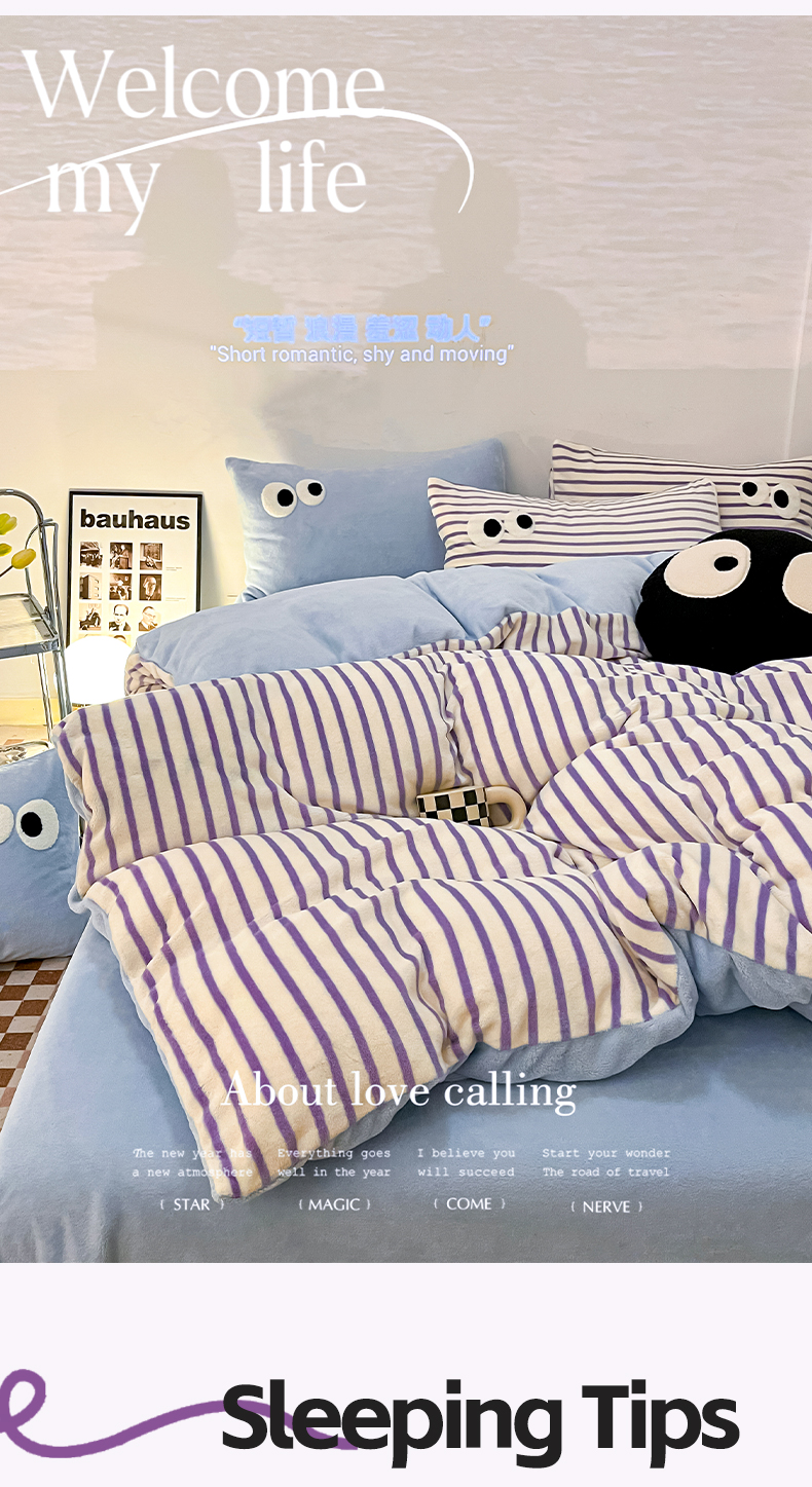 商品名称:如一 2024新款大眼萌条纹牛奶绒四件套 大眼萌-紫