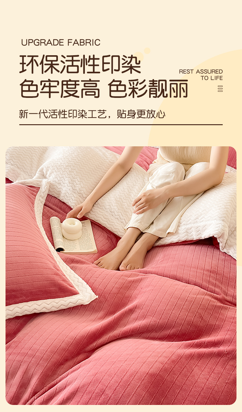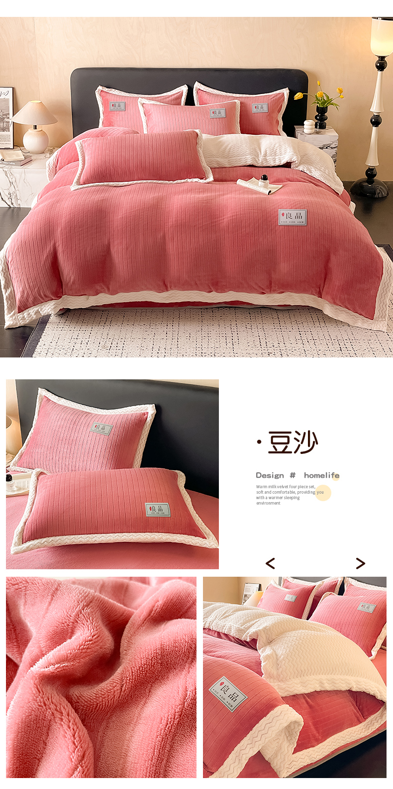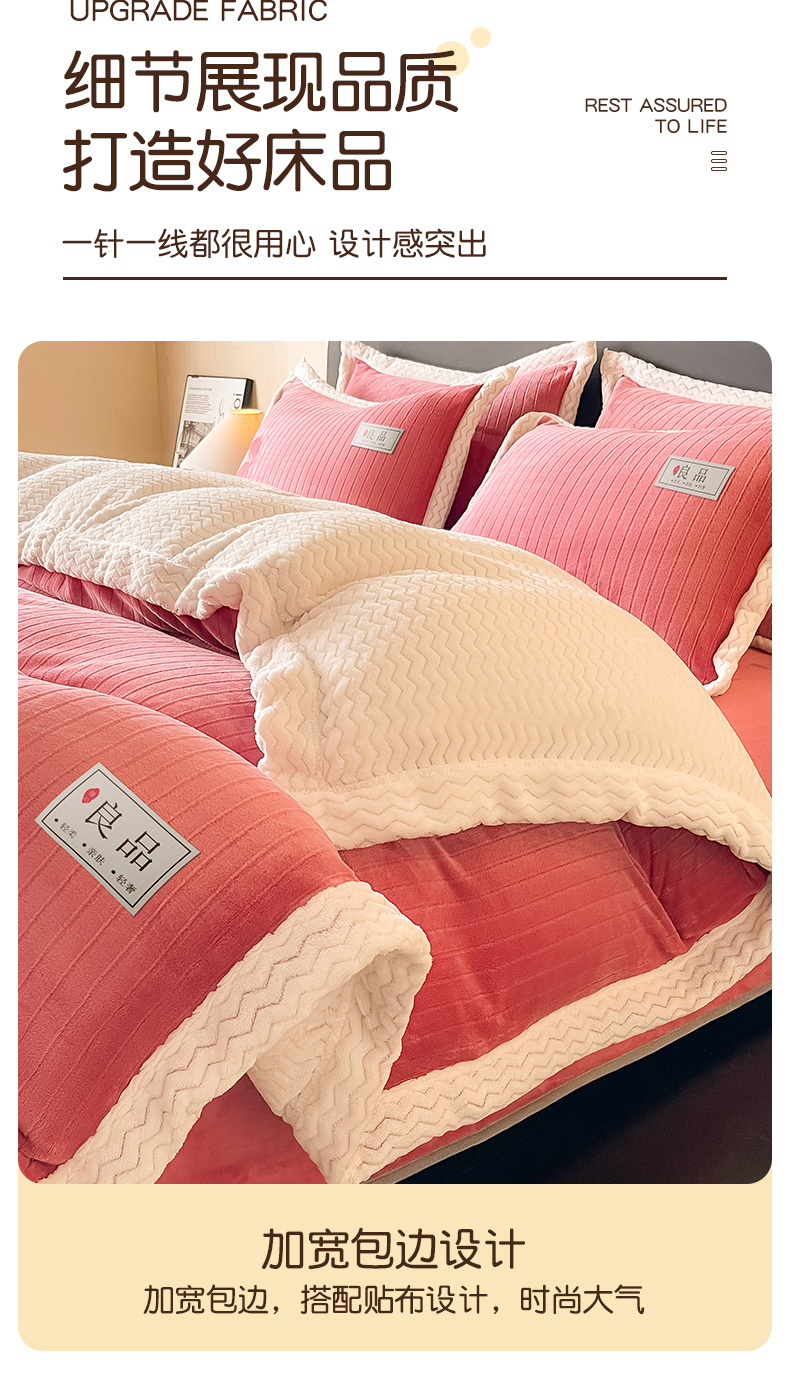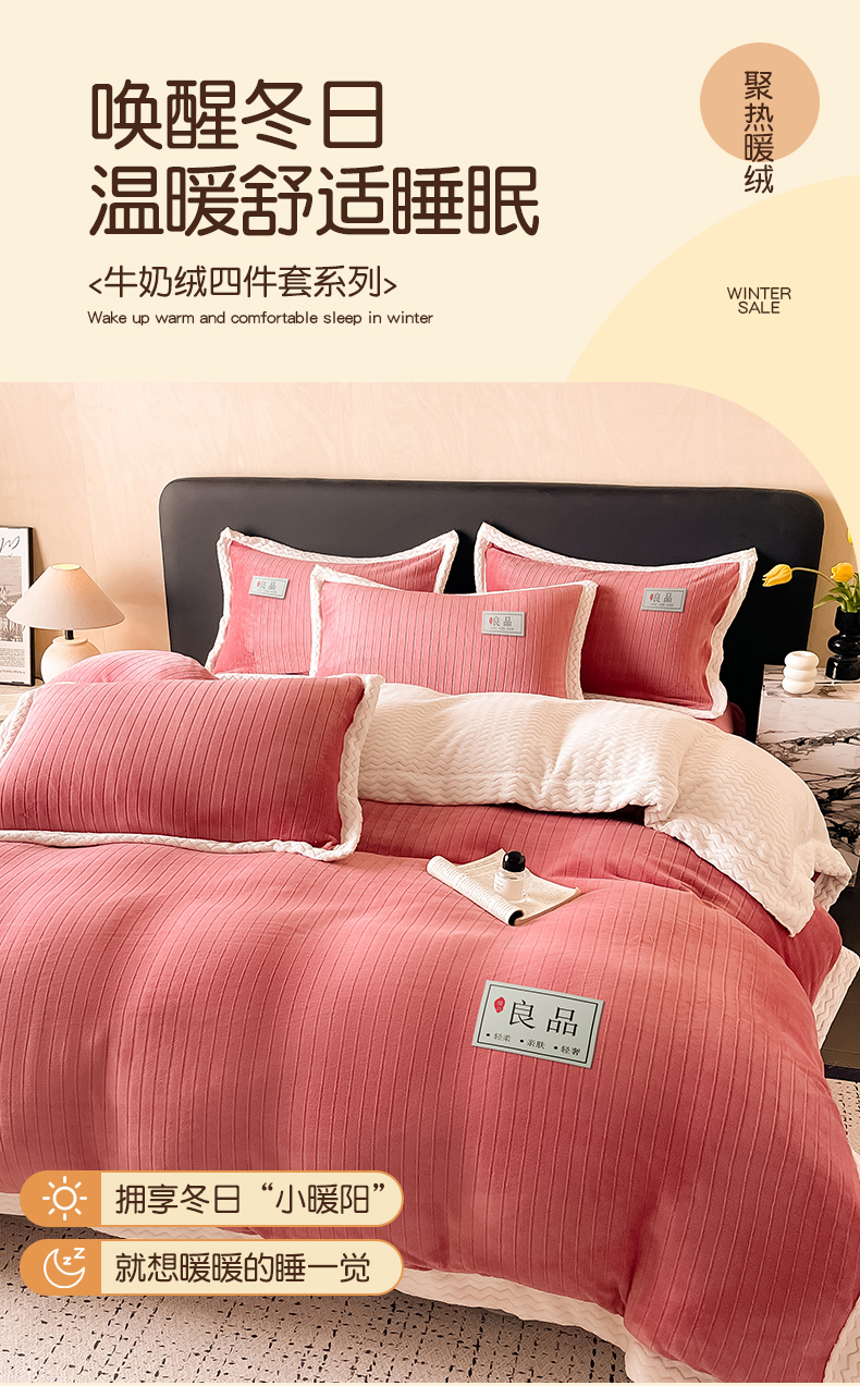 当前位置: 91家纺网 > 商品网购 > 床品套件 > 四件套 > 牛奶绒四件套 > 全季家居 2024新款A类纯色印花波浪大包边牛奶绒贝贝绒加厚保暖四件套 豆沙