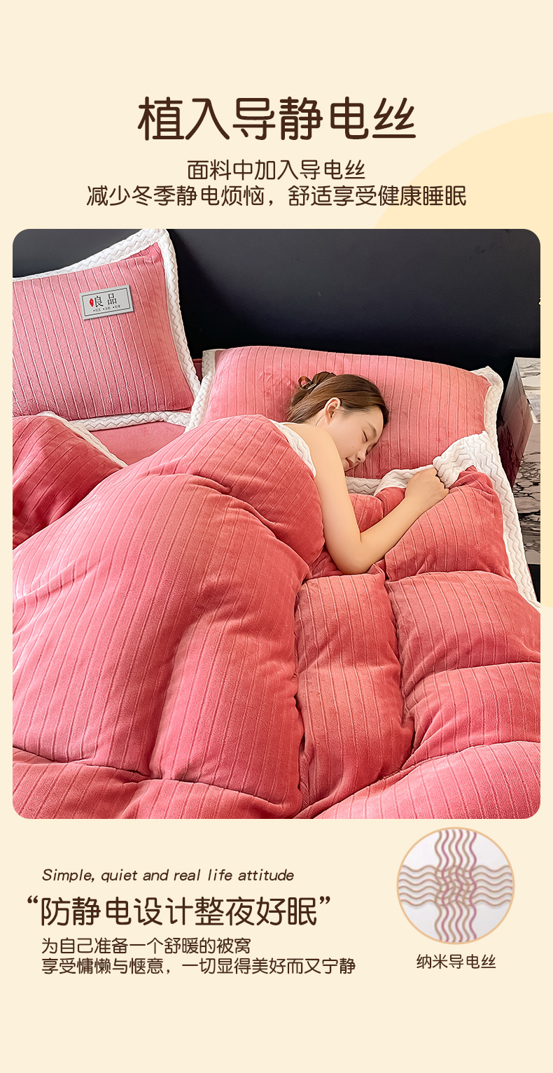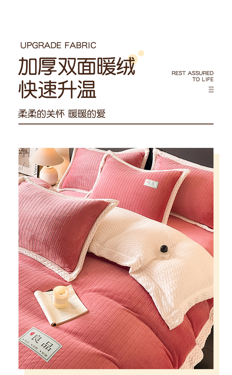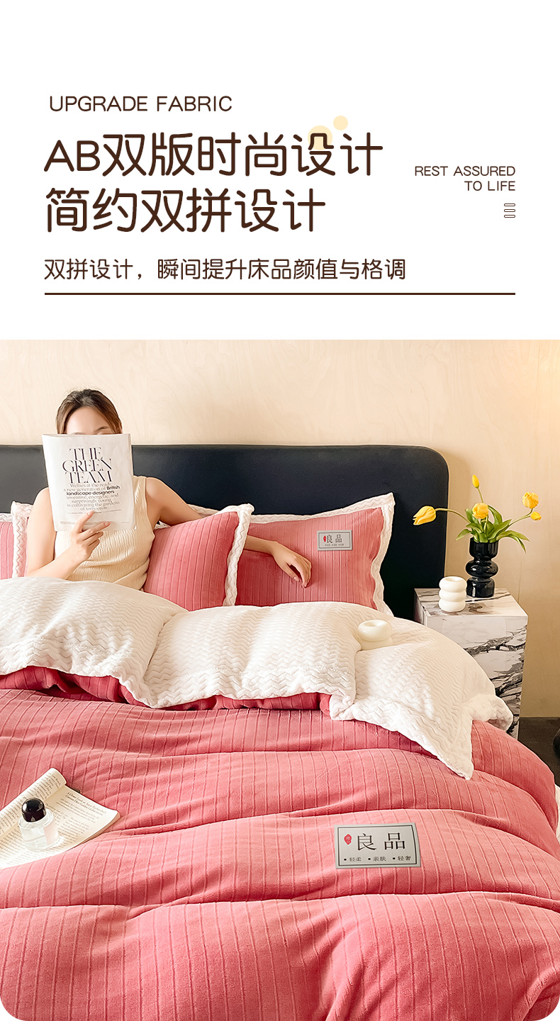 当前位置: 91家纺网 > 商品网购 > 床品套件 > 四件套 > 牛奶绒四件套 > 全季家居 2024新款A类纯色印花波浪大包边牛奶绒贝贝绒加厚保暖四件套 豆沙
