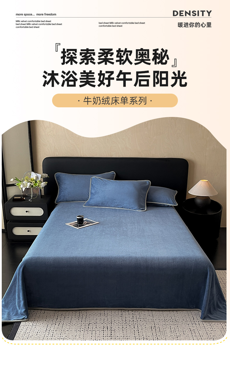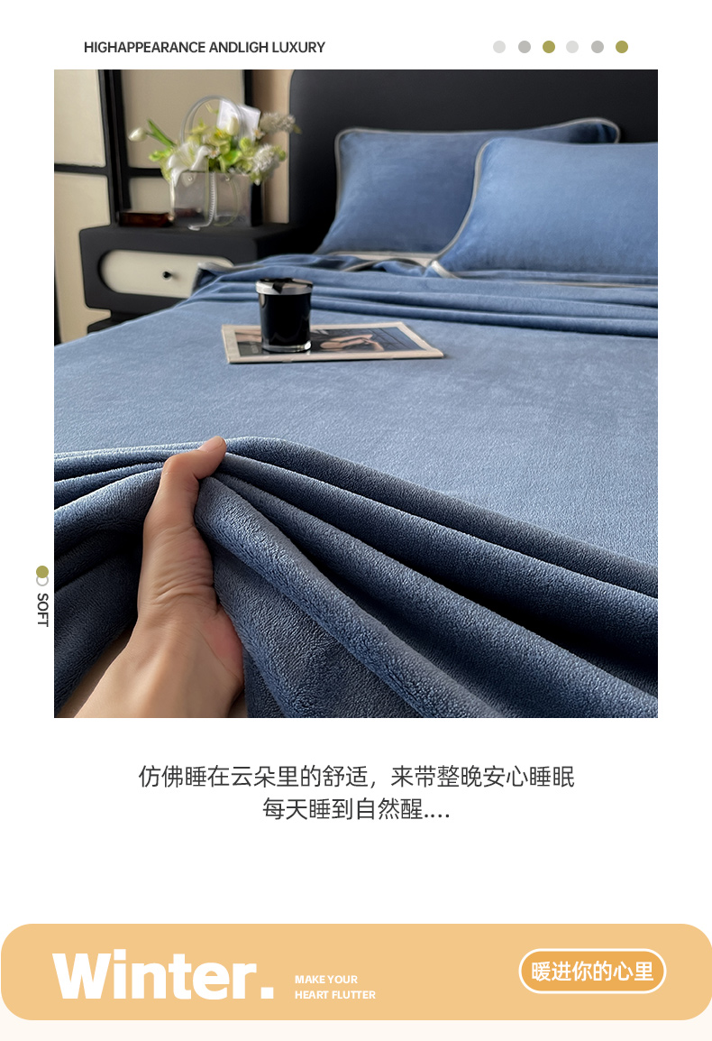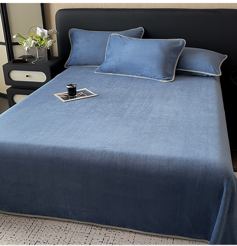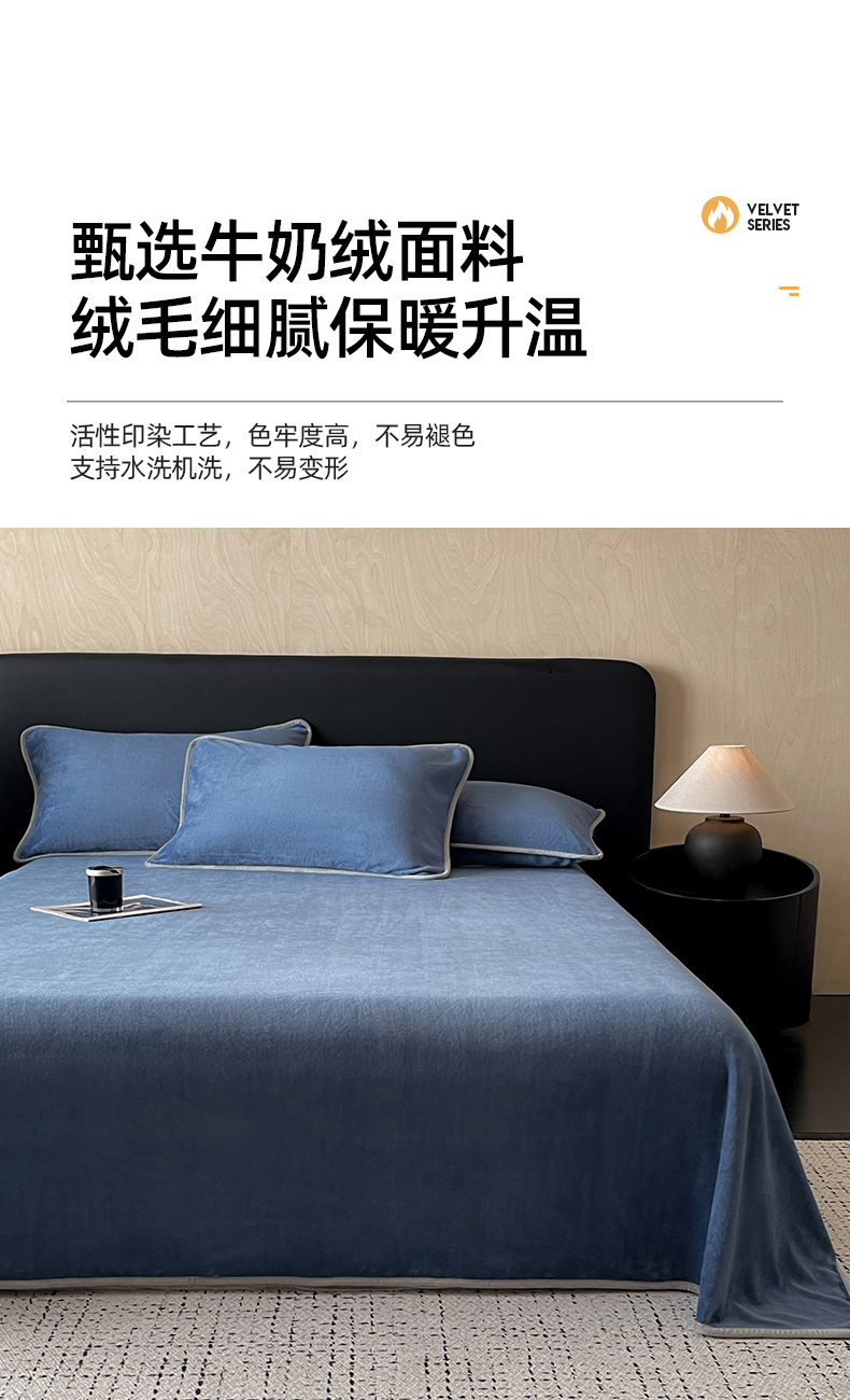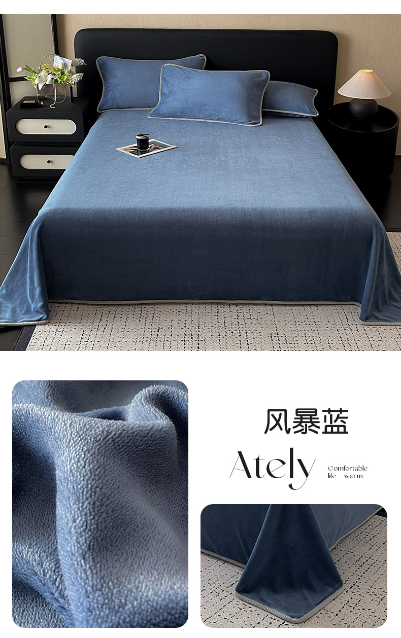 商品名称:全季家居 2024新款A类纯色印花高克重加厚保暖包边牛奶绒床单单件 风暴蓝