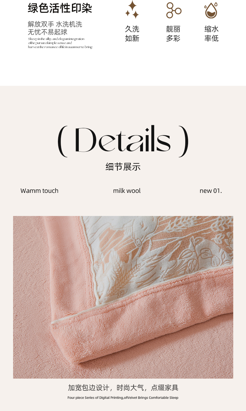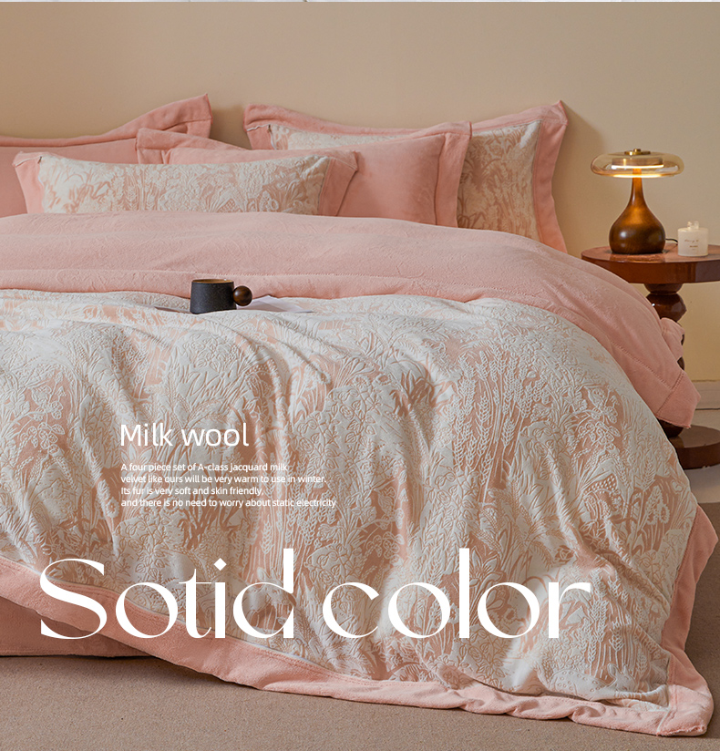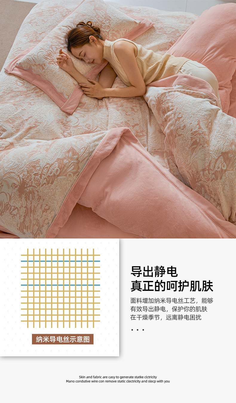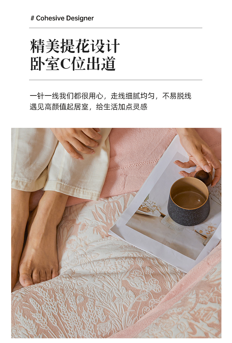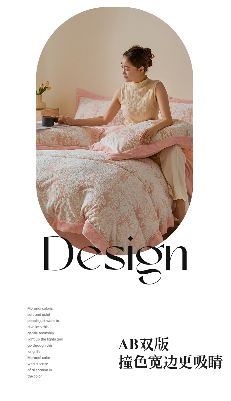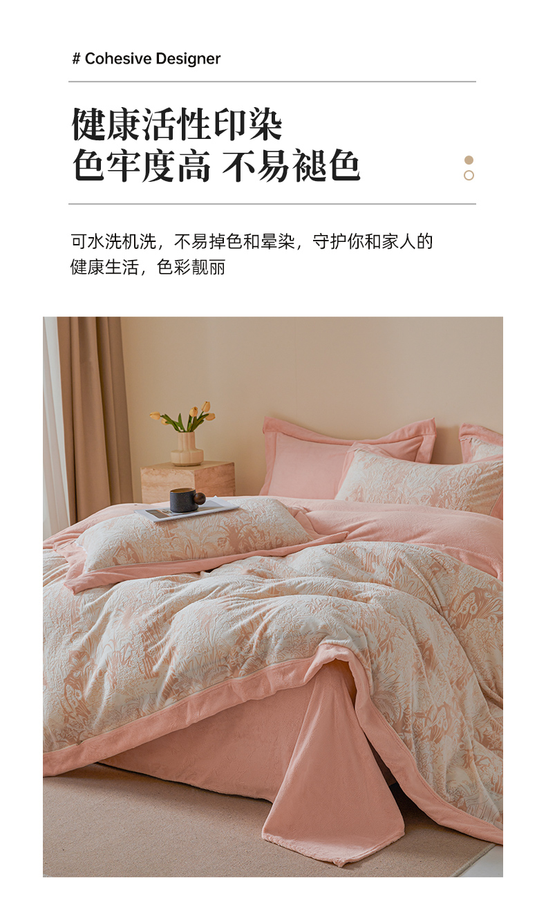 商品名称:全季家居 2024新款A类高克重5D立体浮雕宽边牛奶绒加厚保暖被套单件 海棠花开-粉