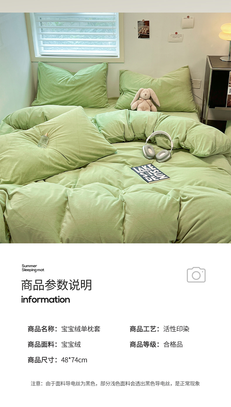 商品名称:盛馨家纺 2024新款高克重加厚保暖纯色宝宝绒系列单枕套 孔雀蓝