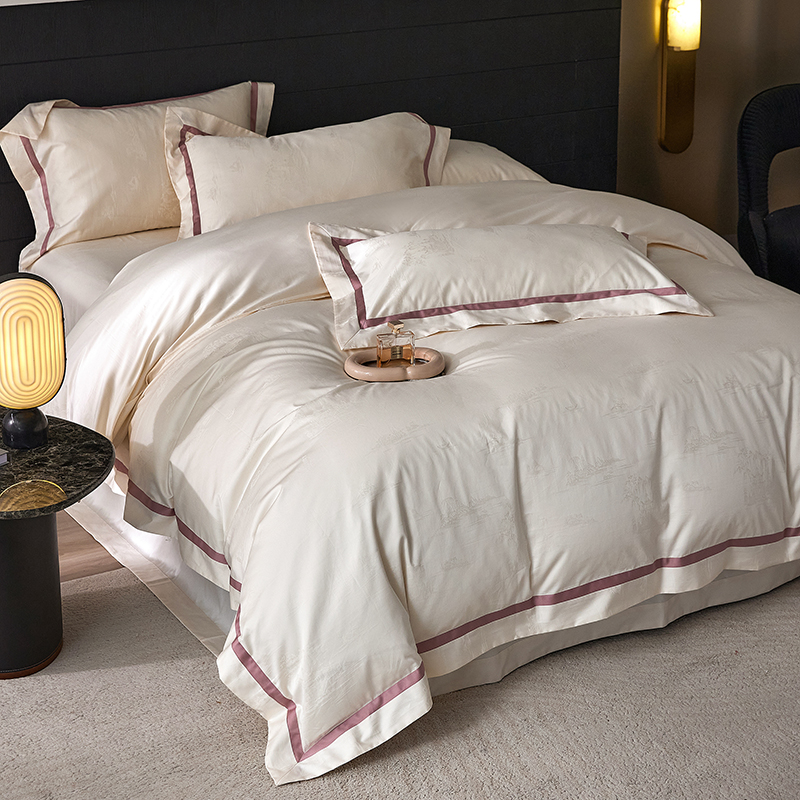 (总)琉宿家纺 2025新款50s双股长绒棉提花宽边工艺四件套,蒂娜-灰色,蒂娜-奶白,花漫影-豆沙,花漫影-浅香槟,枫洛(粉玉),枫洛(清新兰),曼琳(豆沙),曼琳(灰)
