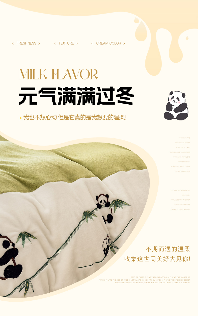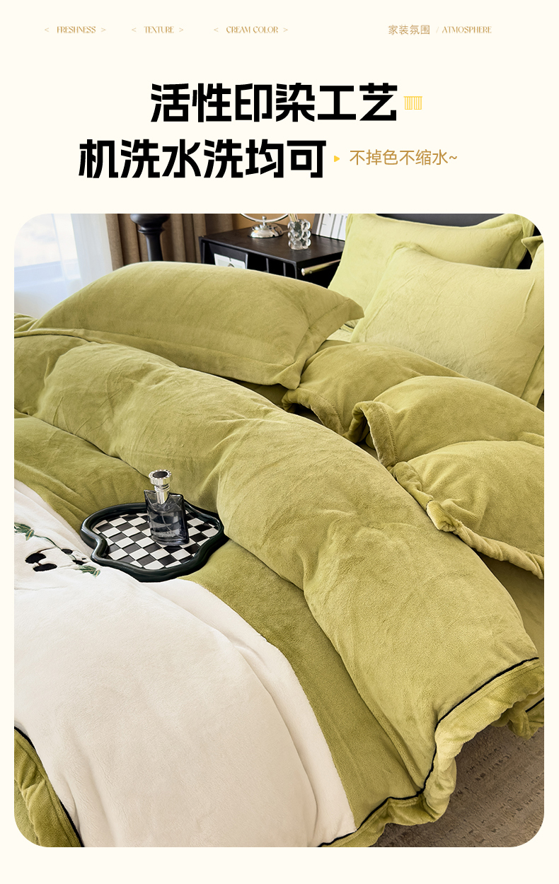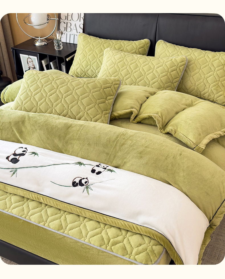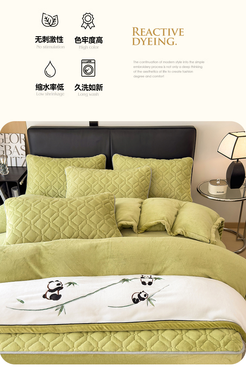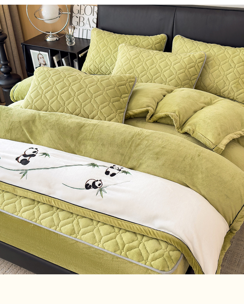 当前位置: 91家纺网 > 商品网购 > 床品套件 > 四件套 > 牛奶绒四件套 > 2024新款A类牛奶绒熊猫刺绣夹棉床笠款四件套 萌宝-果绿