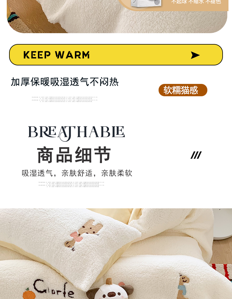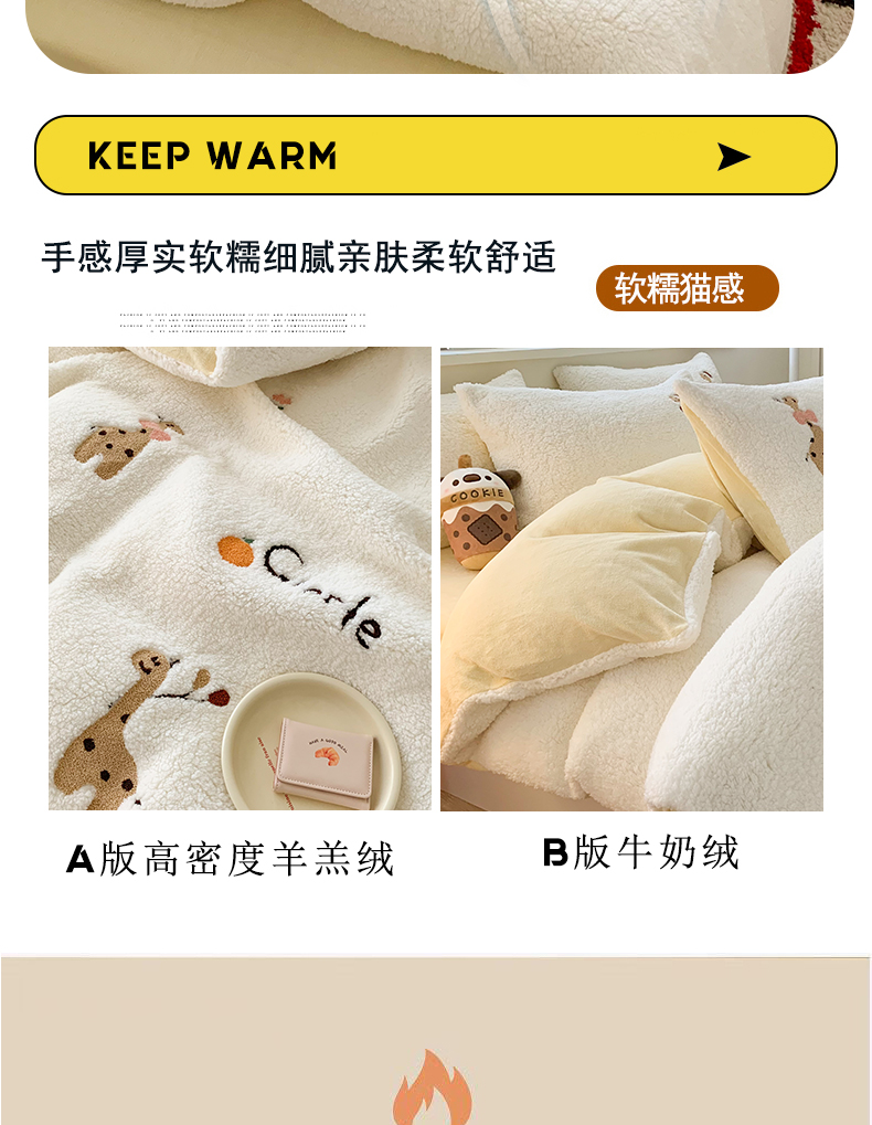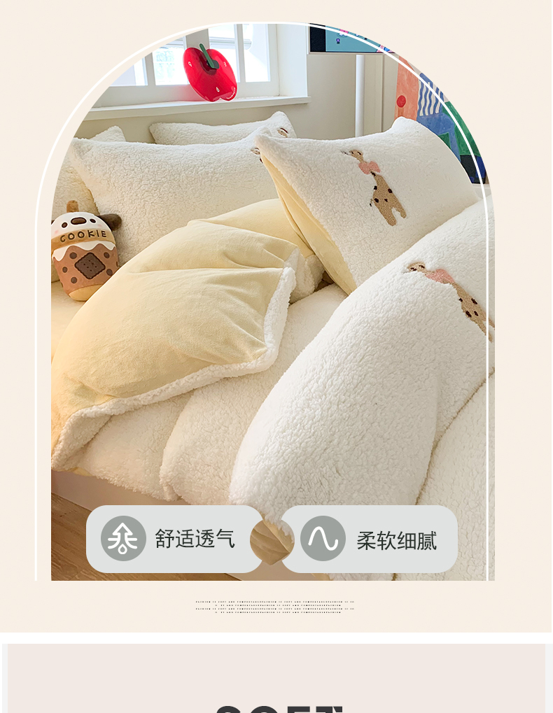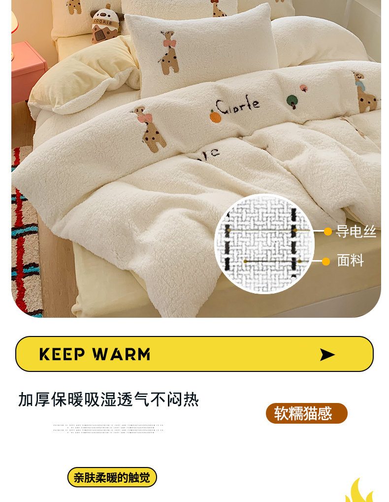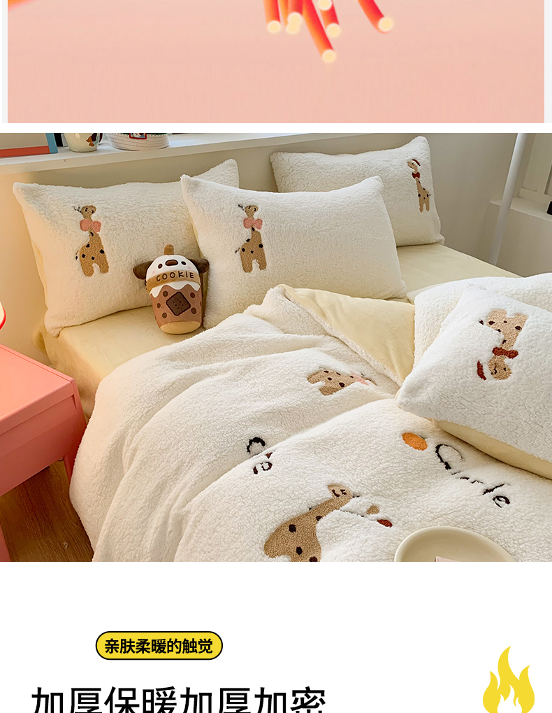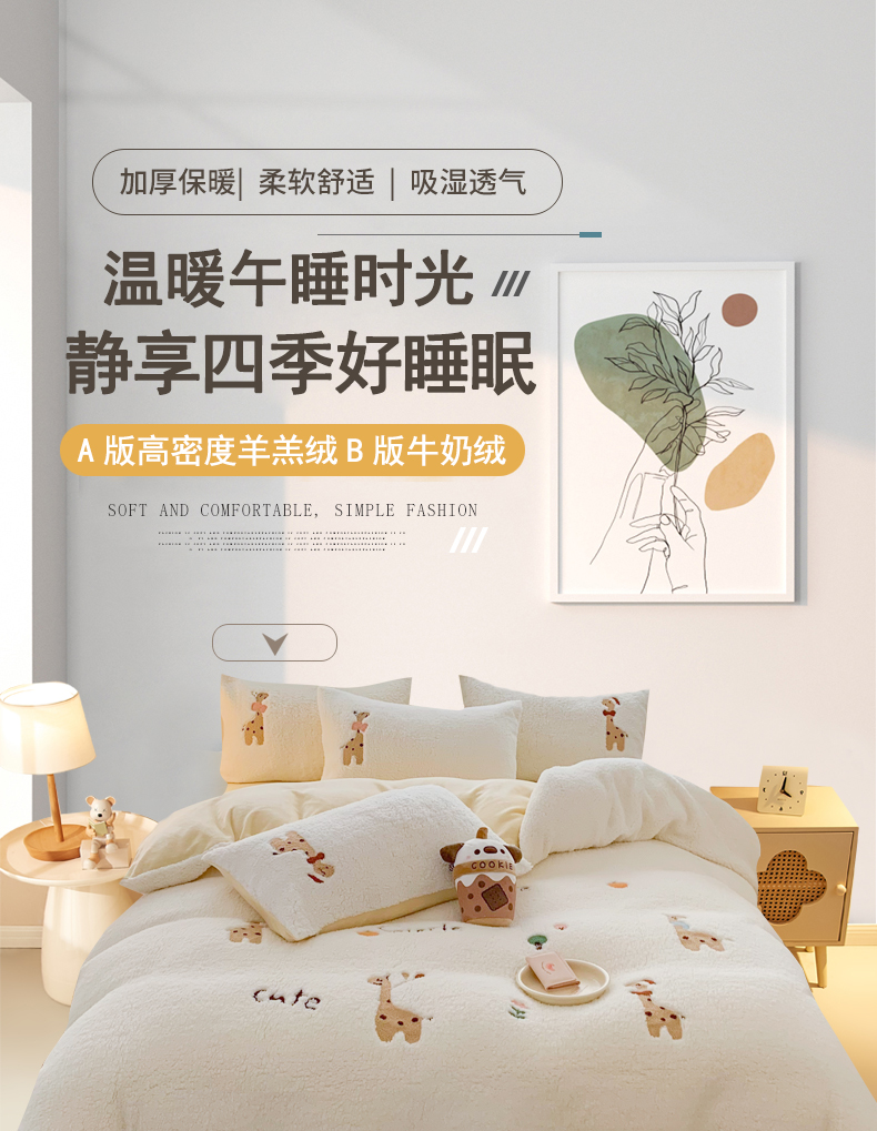 商品名称:2025新款高克重加厚羊羔绒牛奶绒四件套 长颈鹿白黄