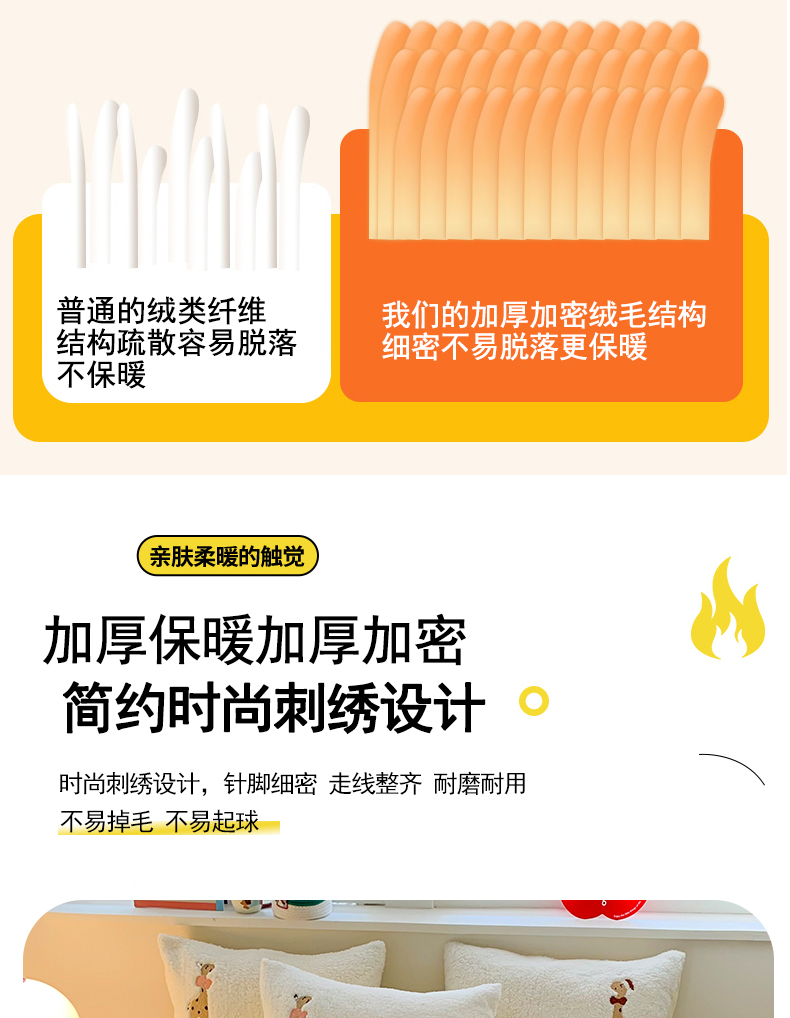 2025新款高克重加厚羊羔绒牛奶绒四件套 长颈鹿白黄