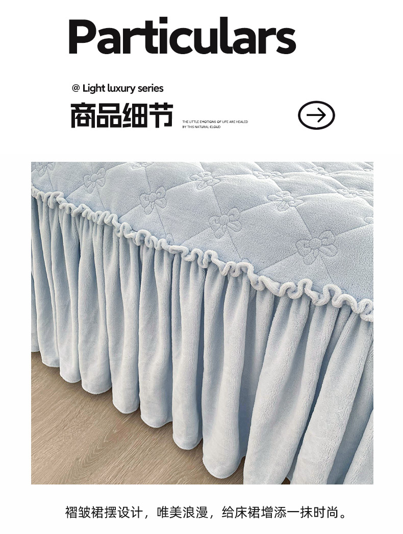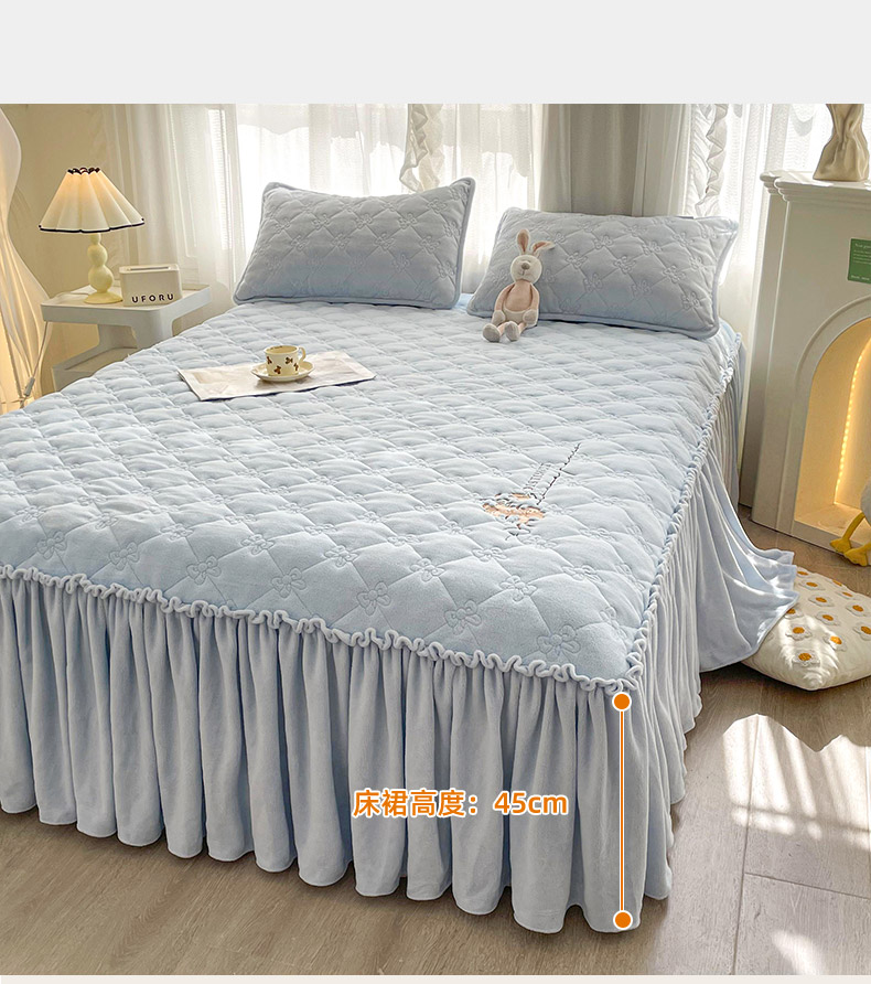 • 91家纺网 家纺一手货源 找家纺 好眠好梦家纺 2024新款A类牛奶绒床裙-百合花开 天空蓝