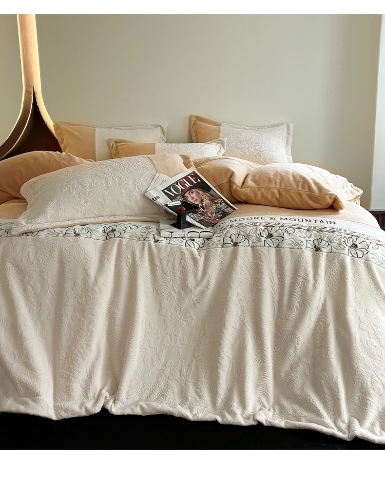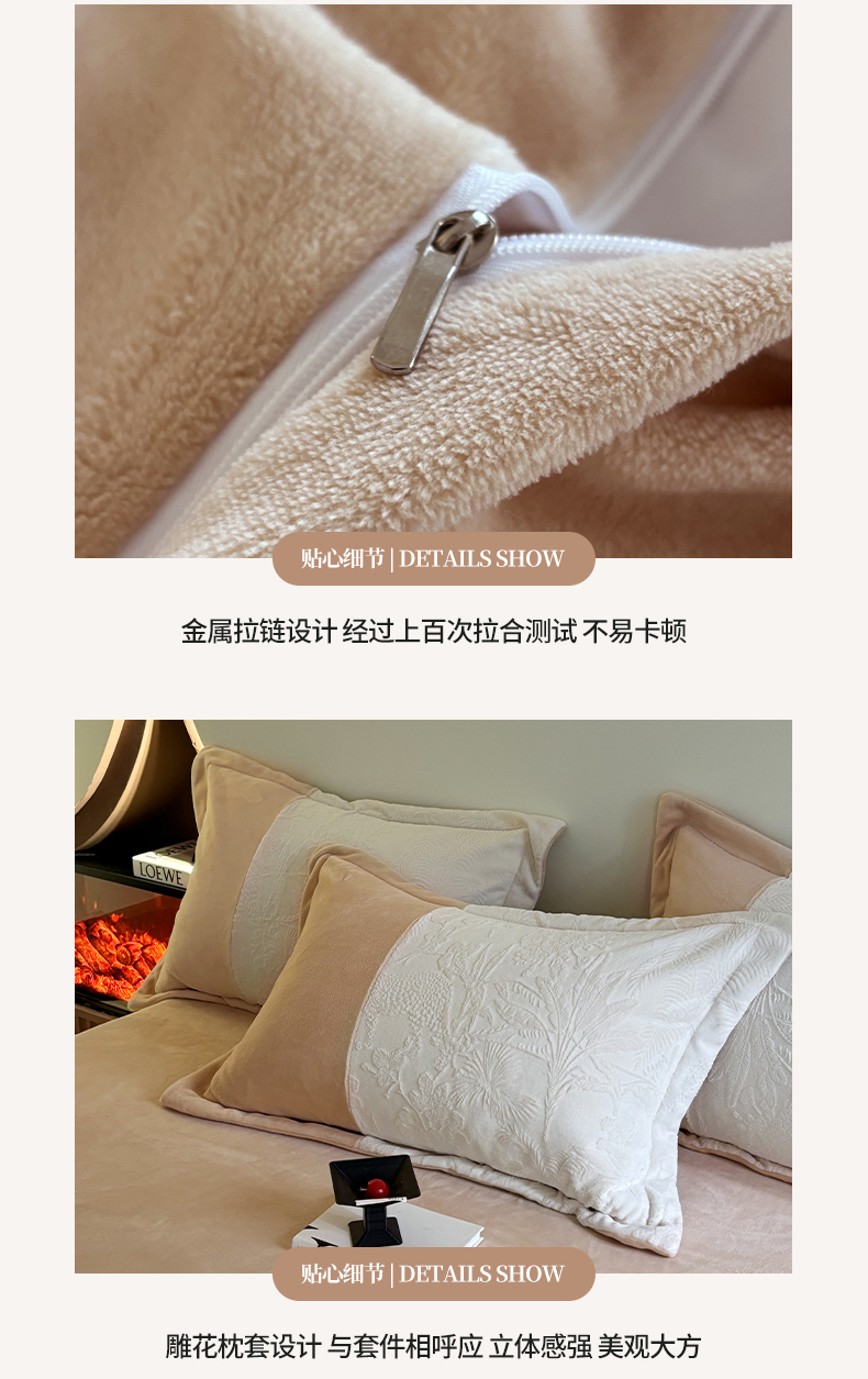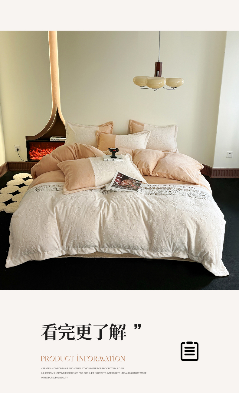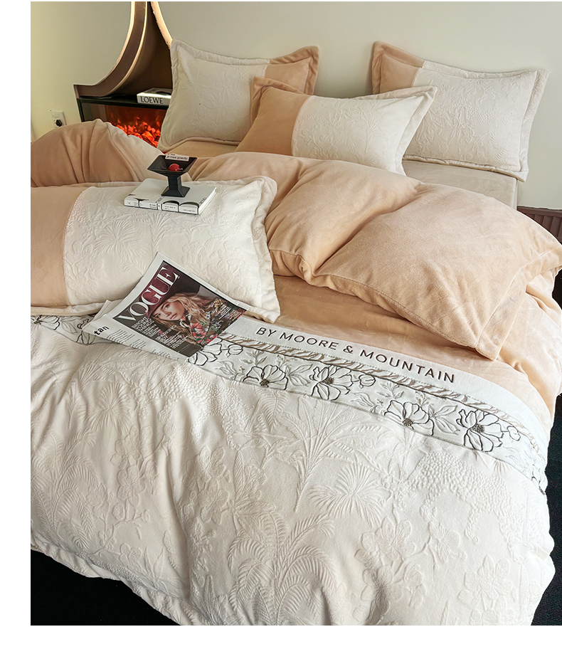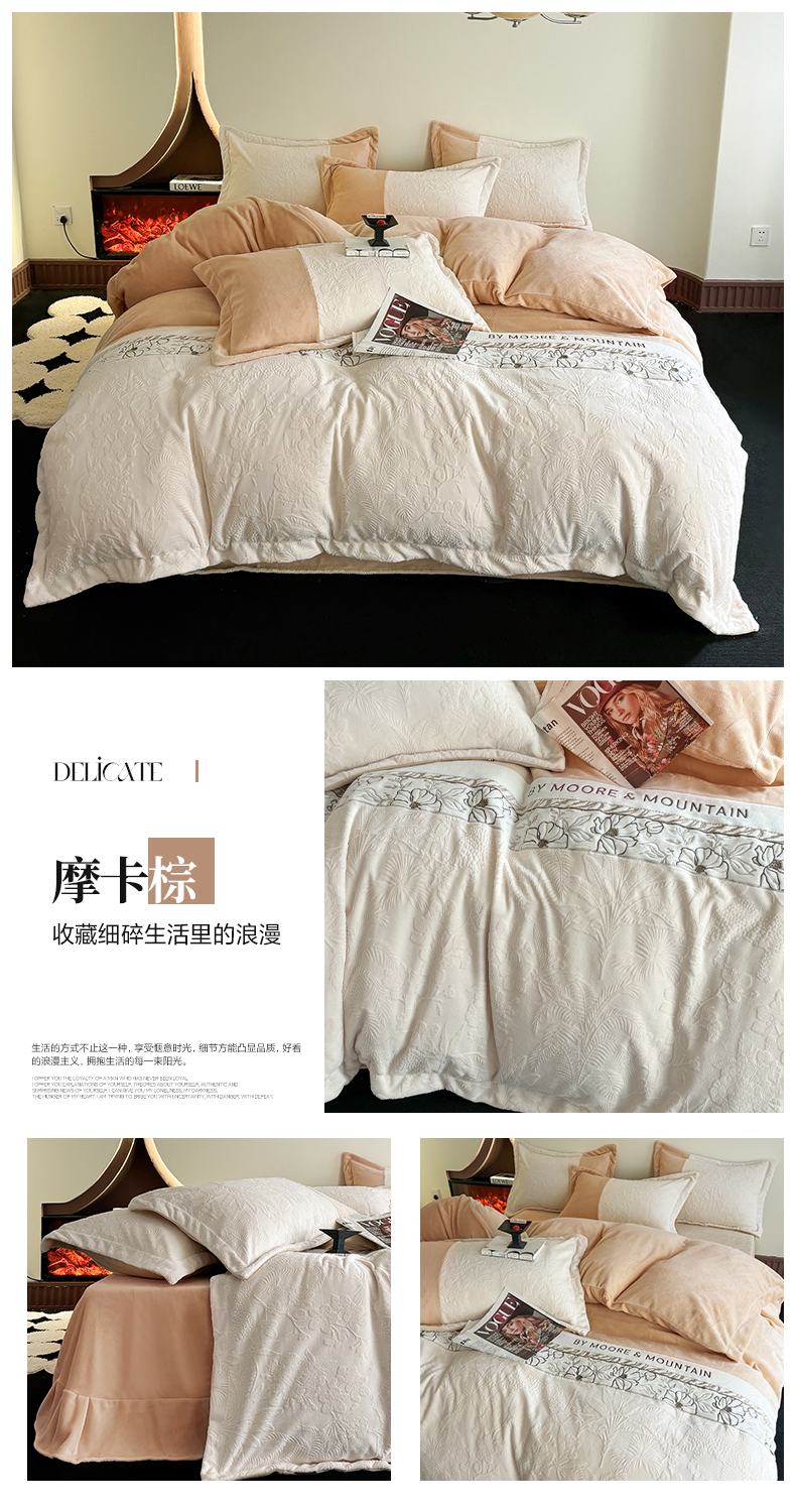 当前位置: 91家纺网 > 商品网购 > 床品套件 > 四件套 > 牛奶绒四件套 > (总)梵克保罗 2024新款法式轻奢全消光牛奶绒雕花拼接刺绣四件套(含无纺布包装)