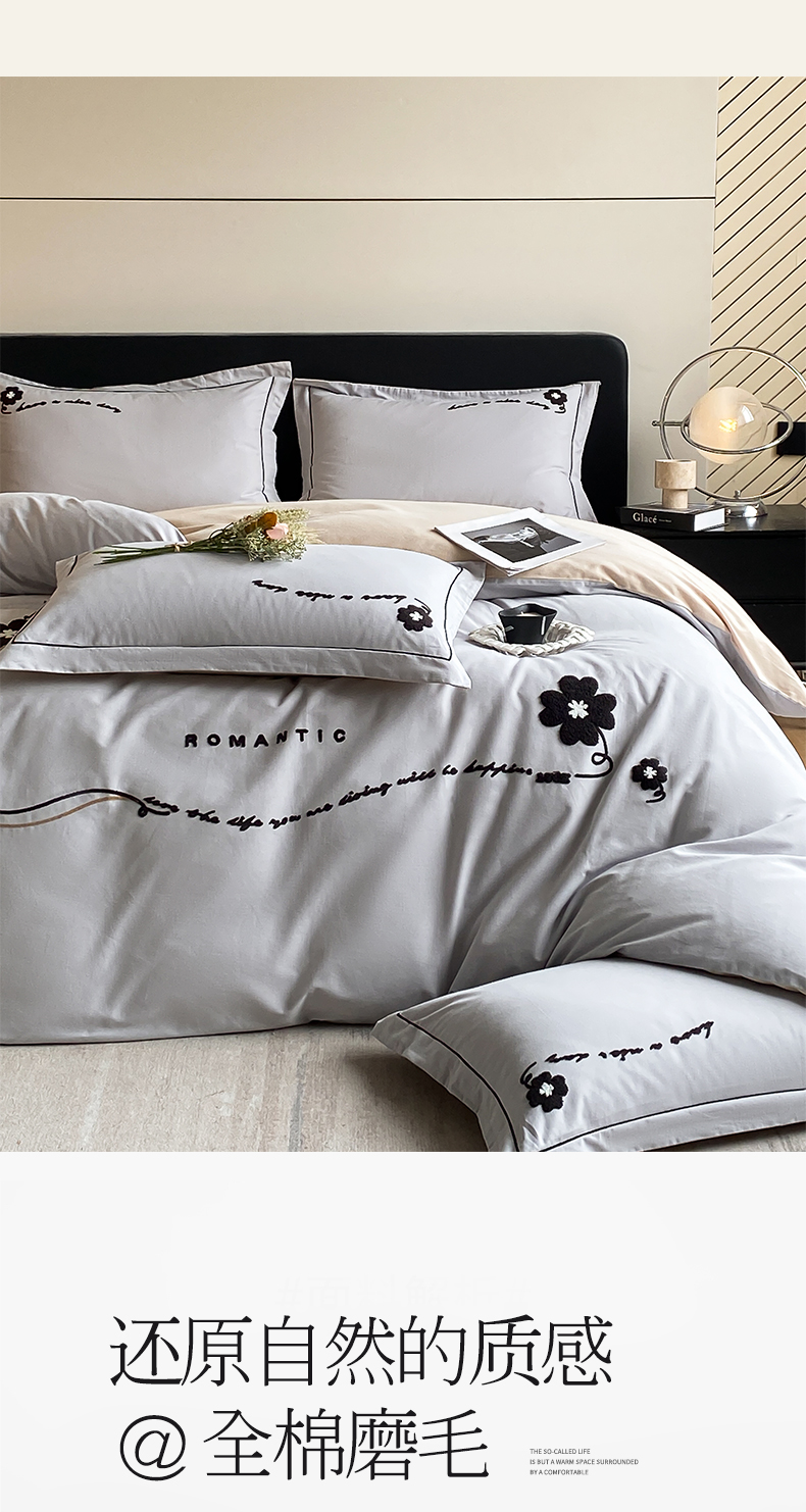 (总)涵宸家纺 2025新款全棉磨毛刺绣四件套系列-花蝴蝶,花蝴蝶-灰,花蝴蝶-奶白,花蝴蝶-浅粉