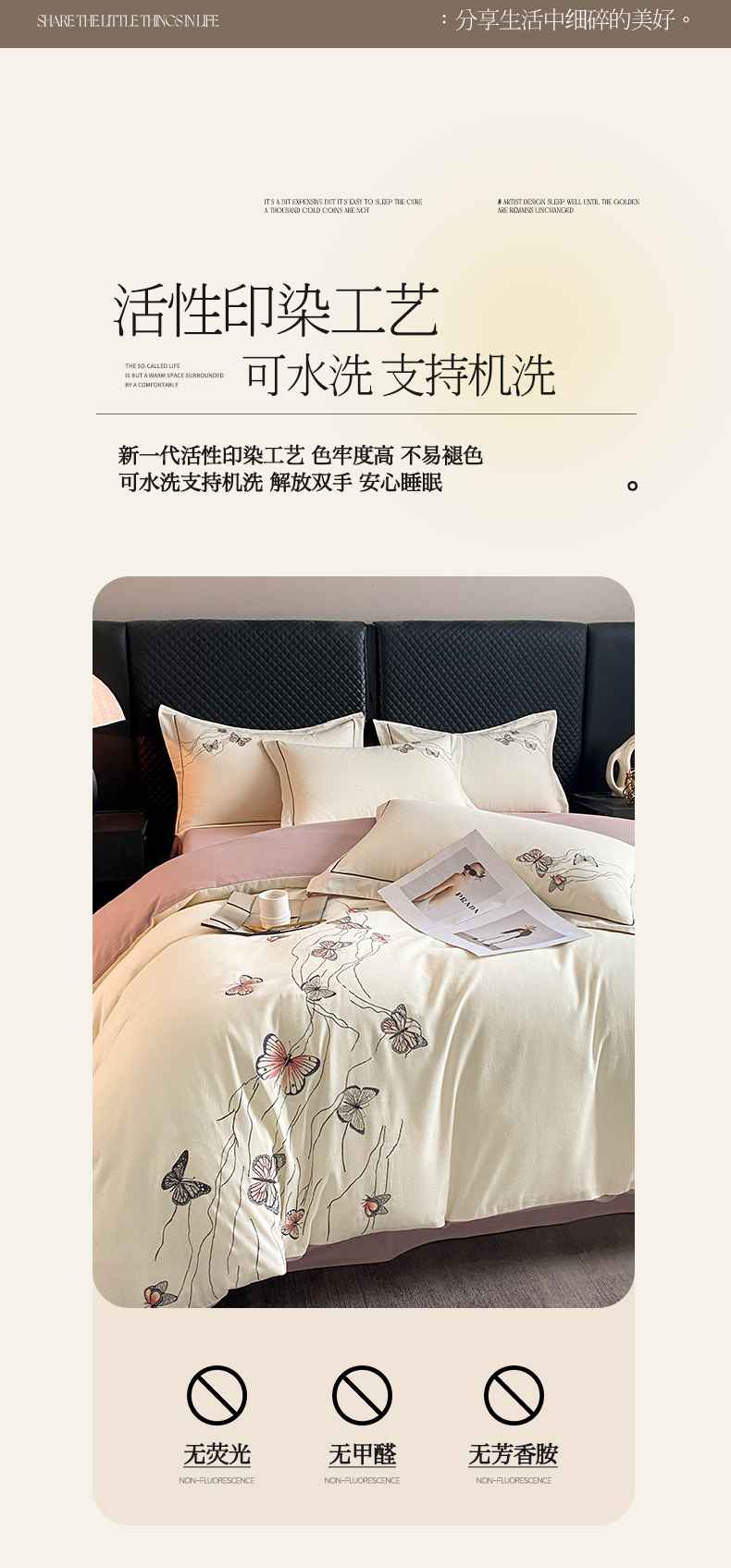 (总)涵宸家纺 2025新款全棉磨毛刺绣四件套系列-花蝴蝶,花蝴蝶-灰,花蝴蝶-奶白,花蝴蝶-浅粉