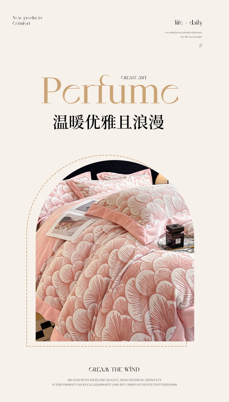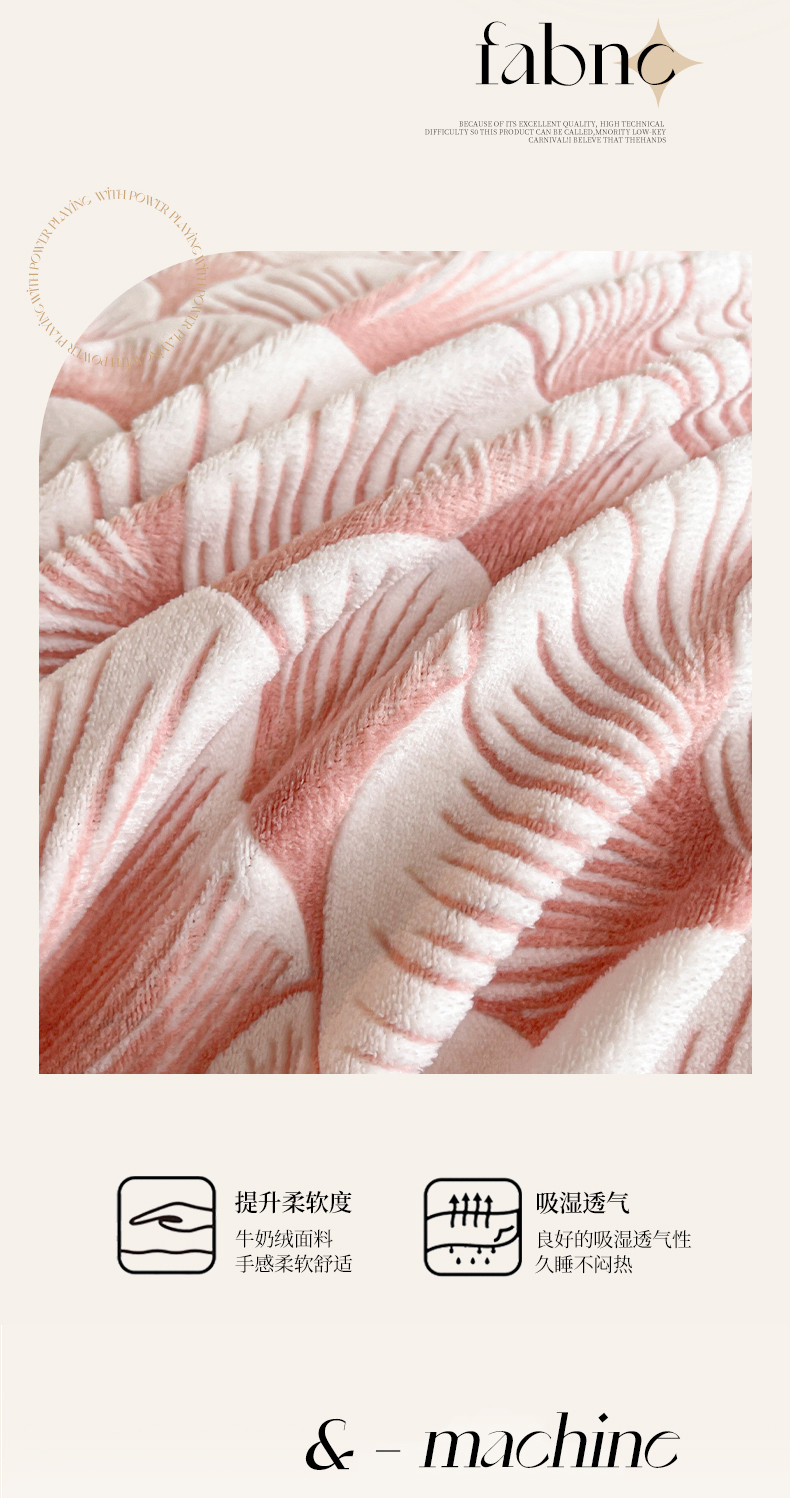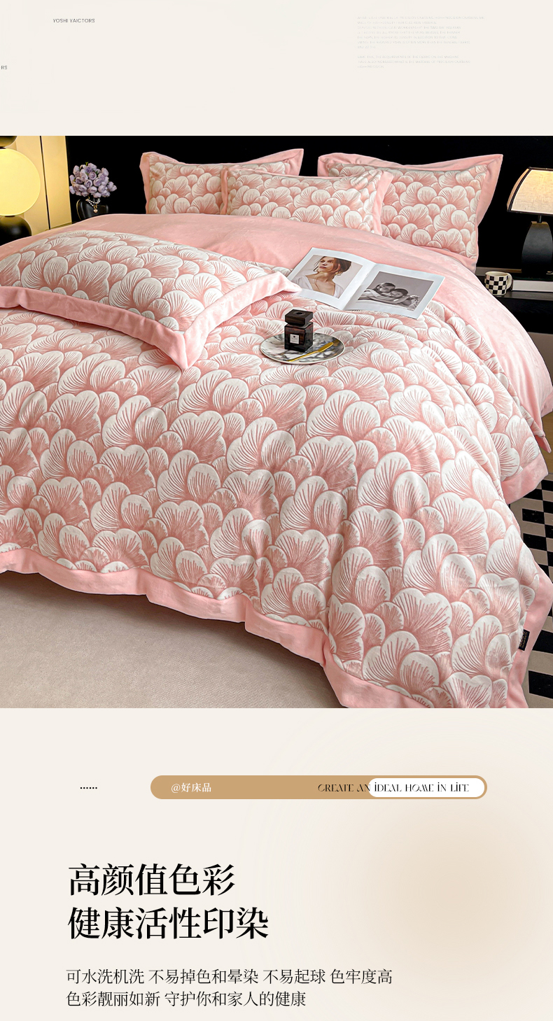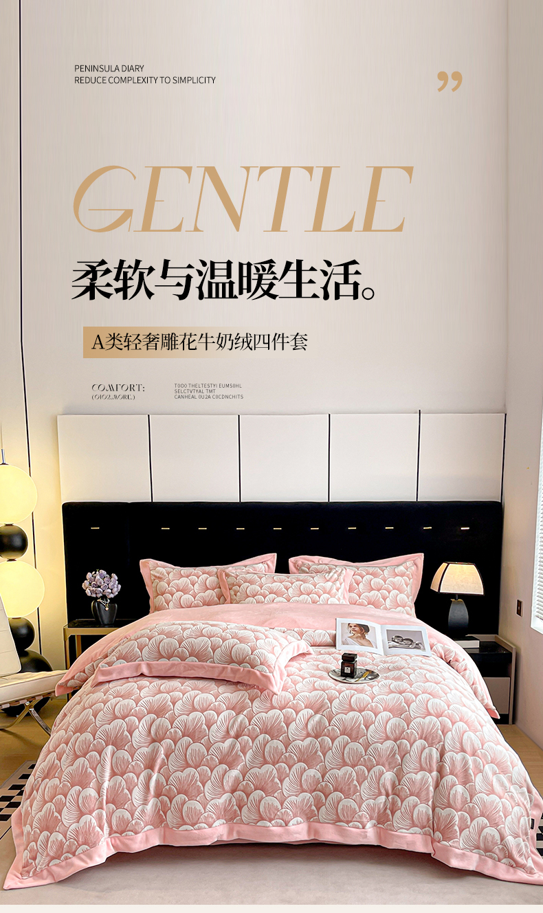 商品名称:芷卧 2025新款高克重A类全拼角立体雕花绒牛奶绒四件套 花资-粉色