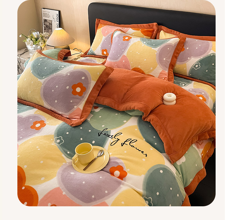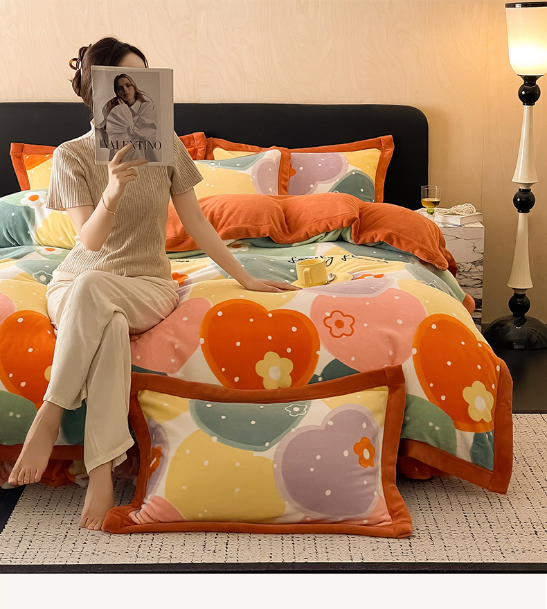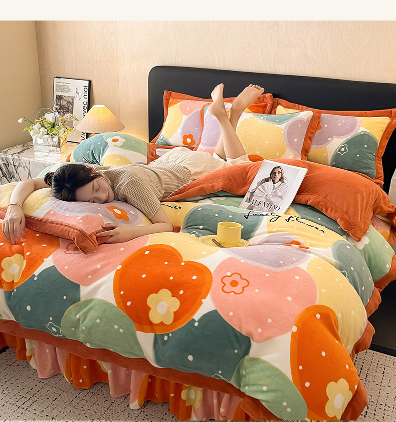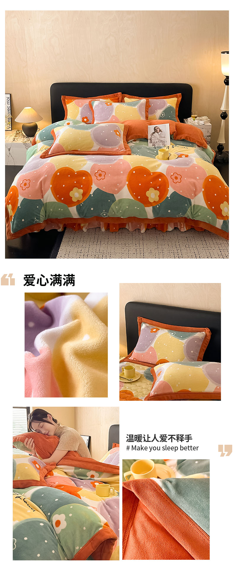 当前位置: 91家纺网 > 商品网购 > 床品套件 > 四件套 > 牛奶绒四件套 > 茉保家纺 2025新款花边款牛奶绒床盖四件套 爱心满满