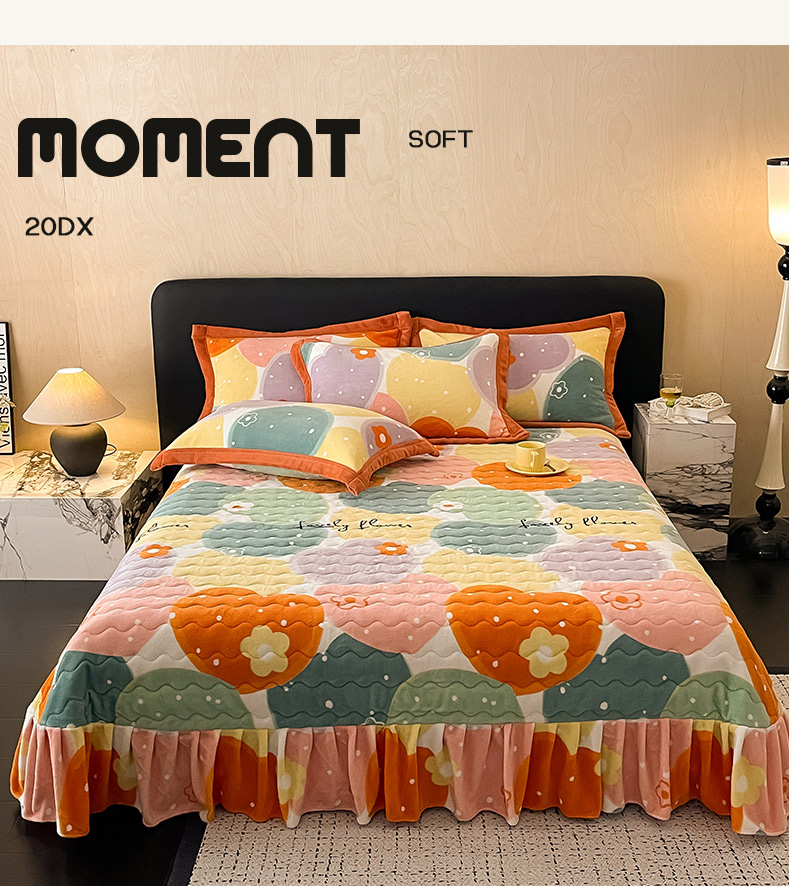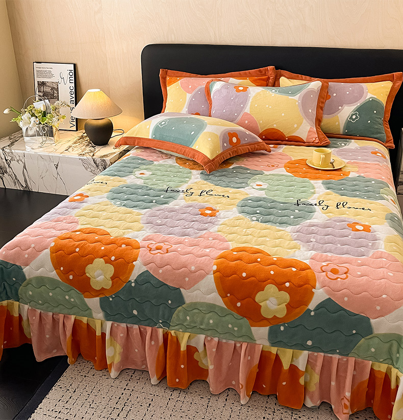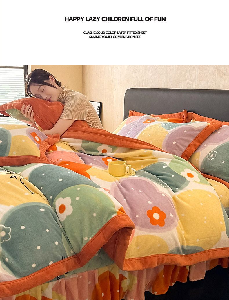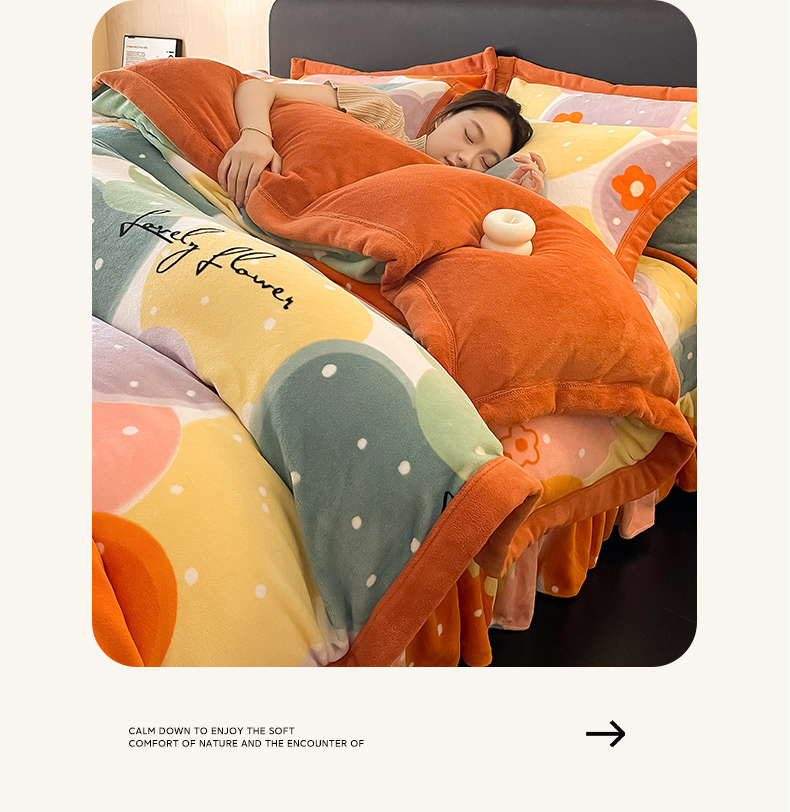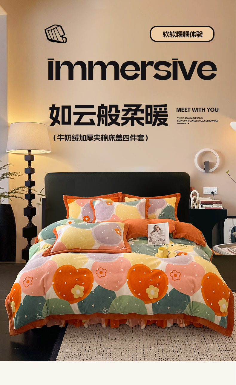 当前位置: 91家纺网 > 商品网购 > 床品套件 > 四件套 > 牛奶绒四件套 > 茉保家纺 2025新款花边款牛奶绒床盖四件套 爱心满满
