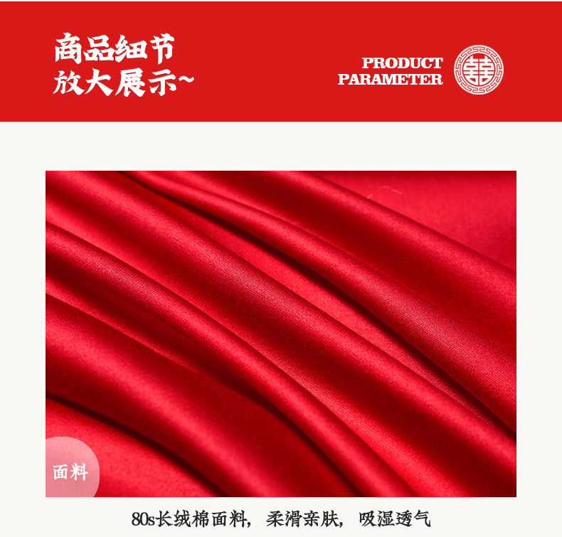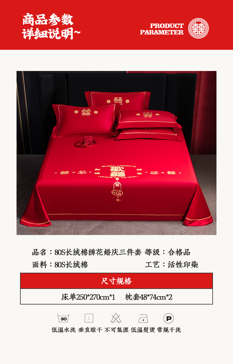 商品名称:千禧家纺 2024新款长绒棉绣花婚庆三件套 欢天喜地