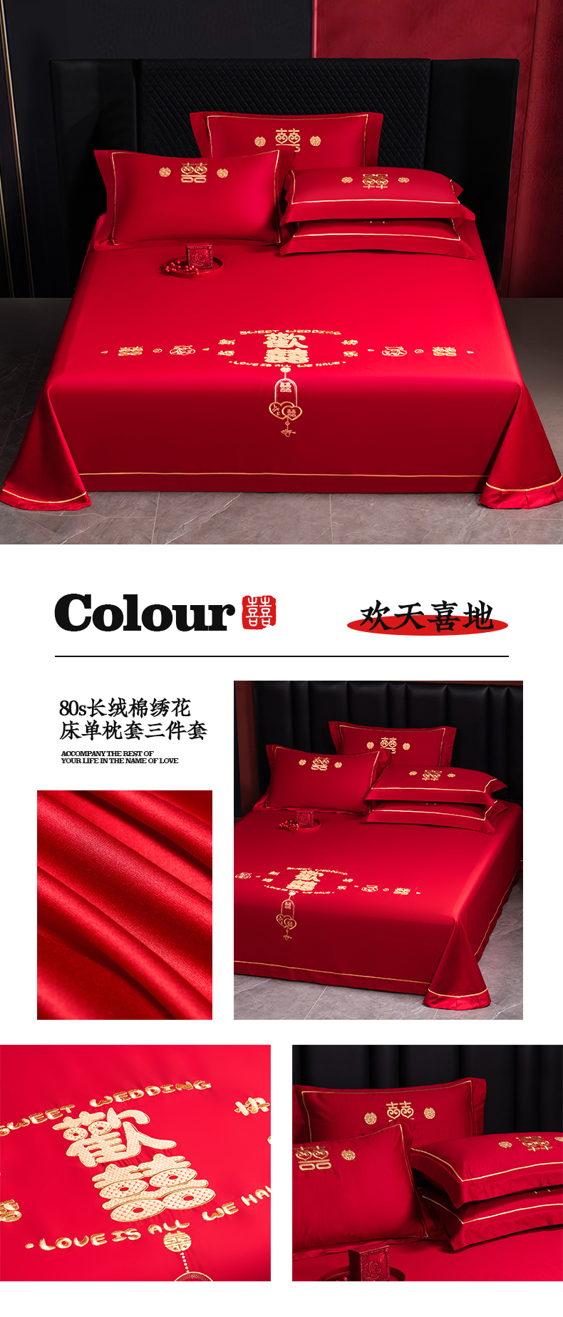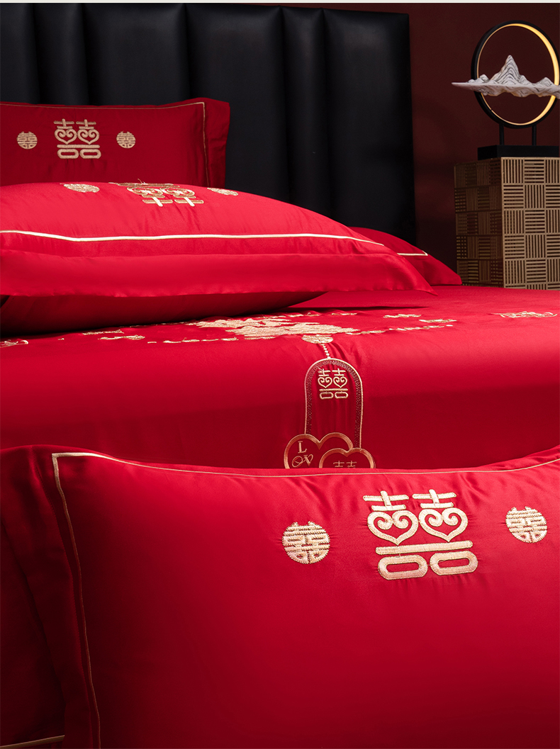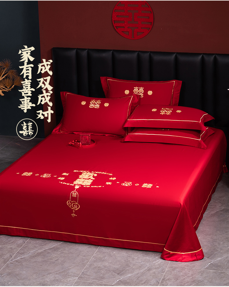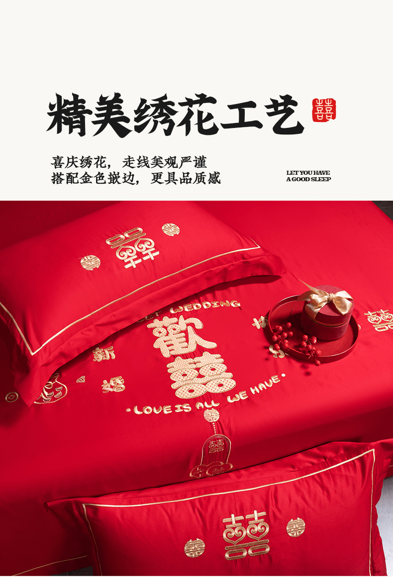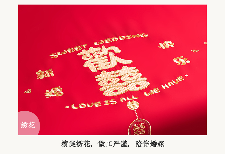 (总)千禧家纺 2024新款双面长绒棉磨毛加厚保暖绣花婚庆套件,大喜大吉,鸿运贺禧,欢乐喜事,欢喜,美满爱情,喜上眉梢,喜约,相伴一生,挚爱