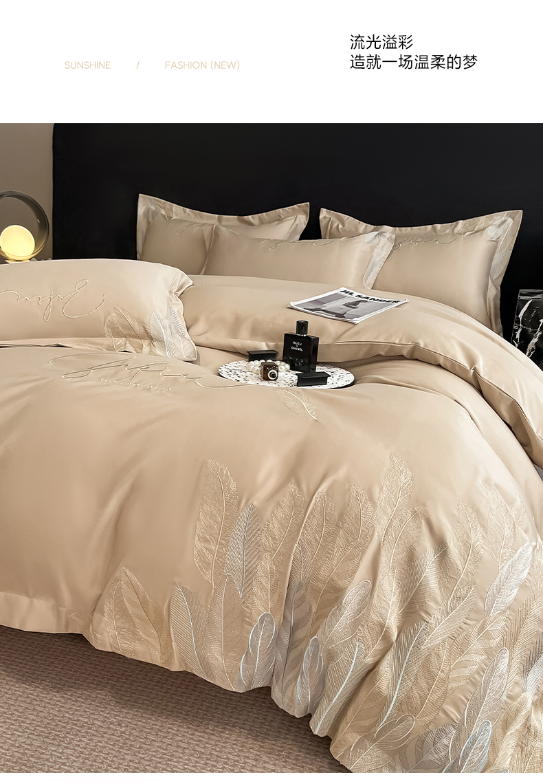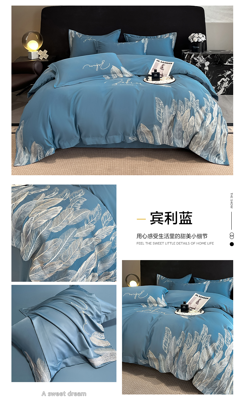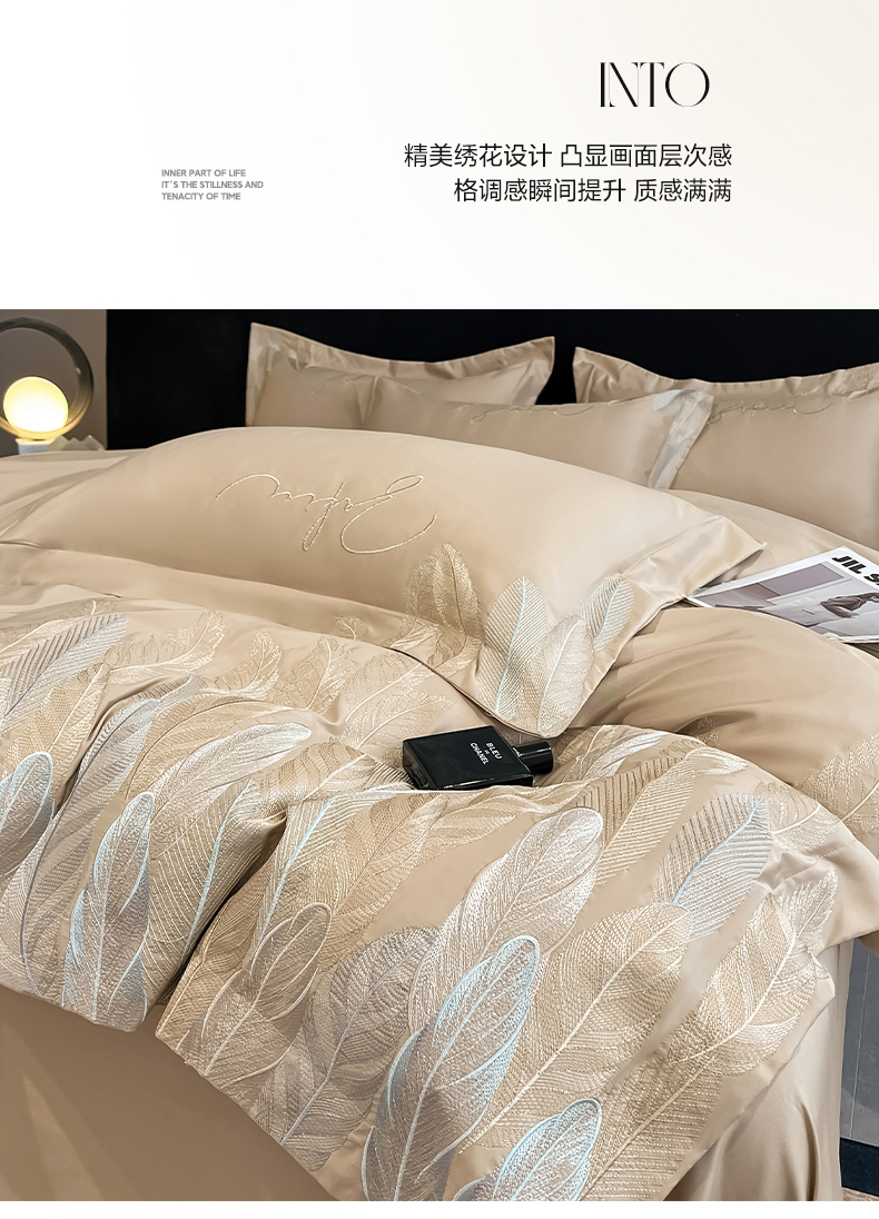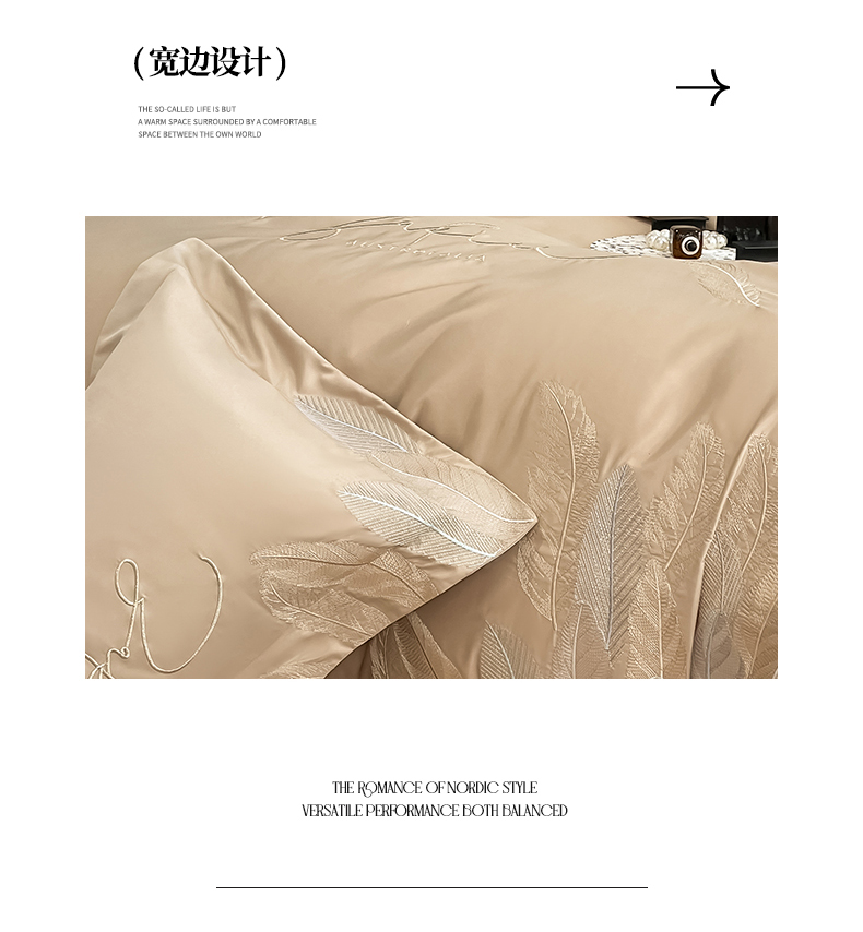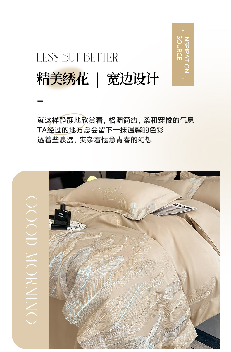 (总)博纳家纺 2024新款亲肤棉磨毛绣花宽边四件套爱乐之家-羽毛