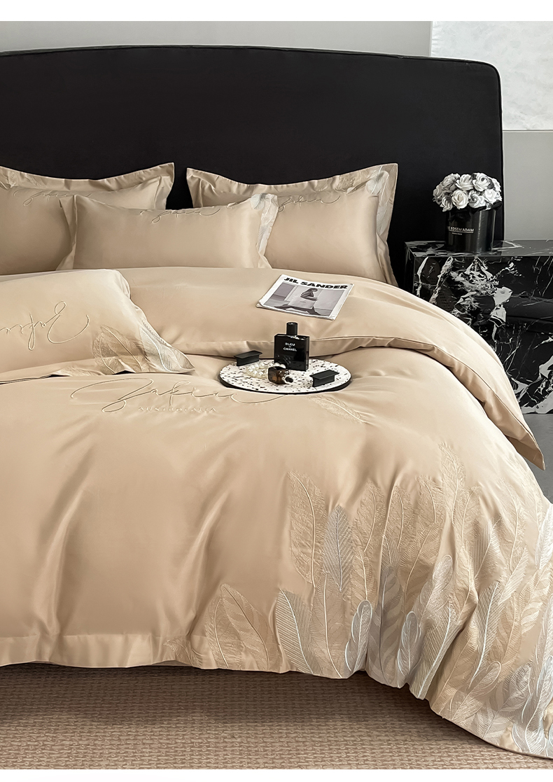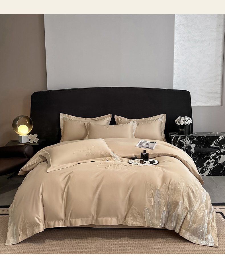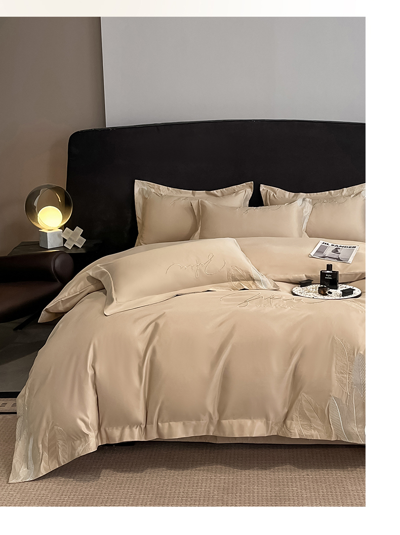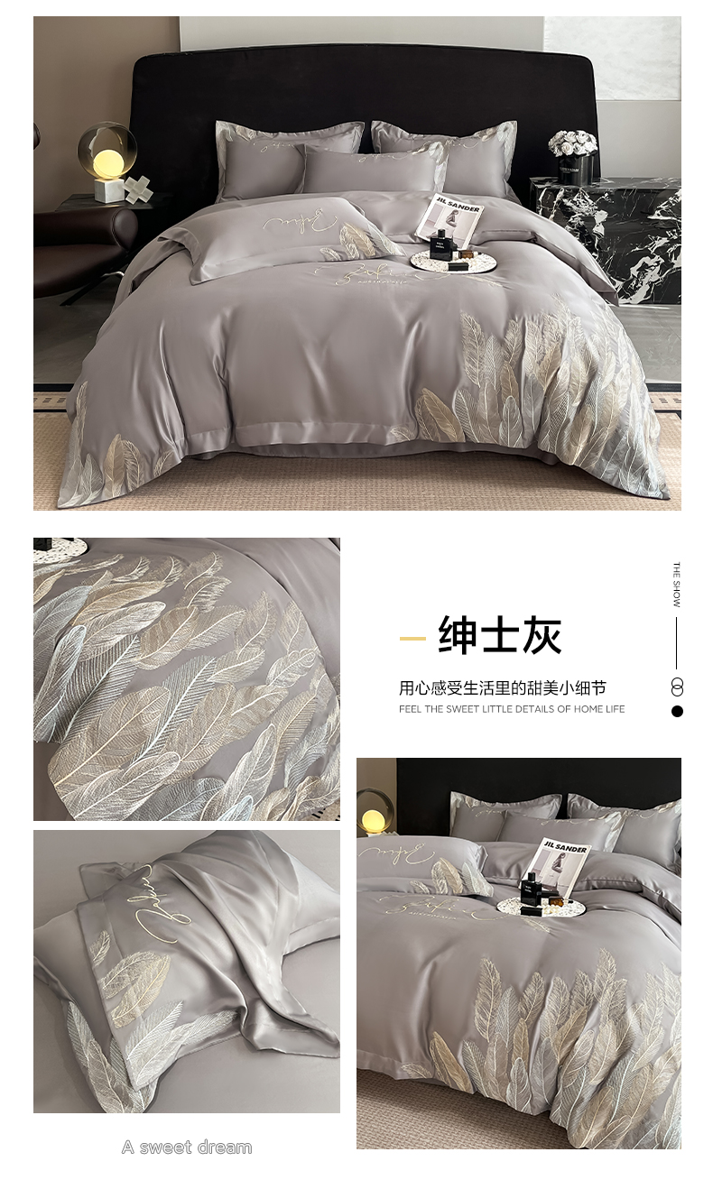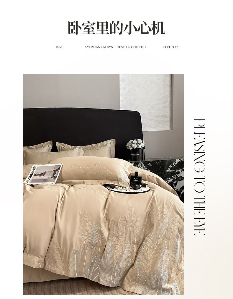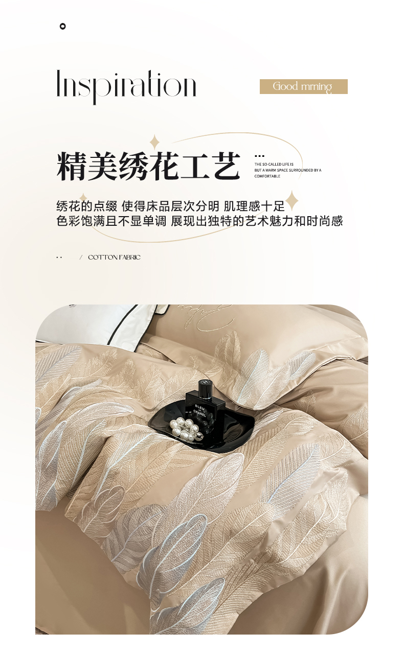 (总)博纳家纺 2024新款亲肤棉磨毛绣花宽边四件套爱乐之家-羽毛