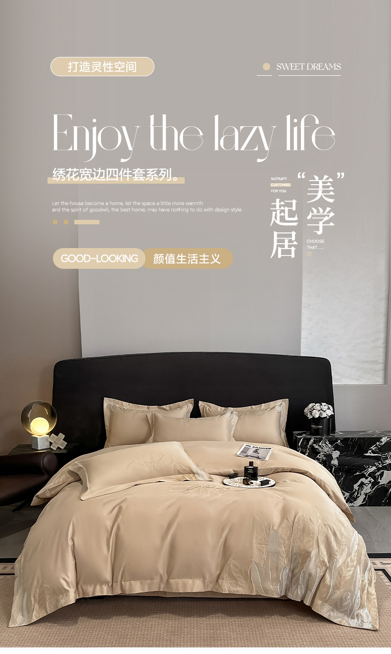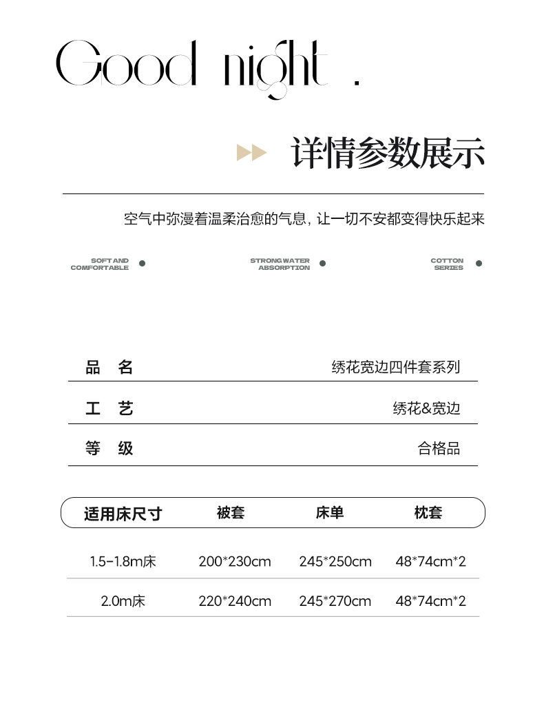 (总)博纳家纺 2025新款亲服棉宽边高级简奢款绣花四件套-盛世年华,宾利蓝,繁星蓝,粉玉,高级灰,香槟