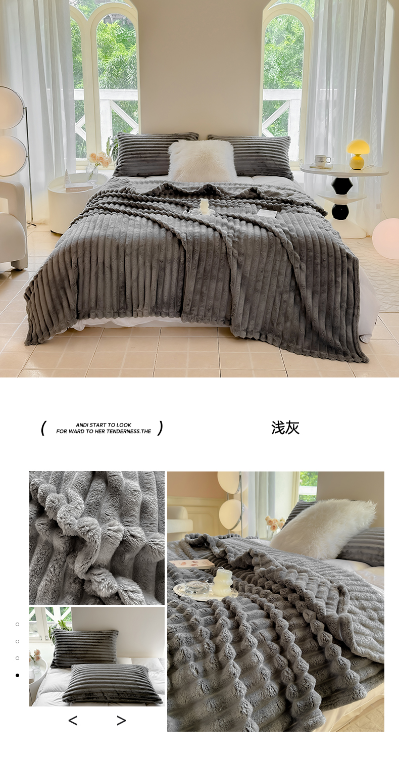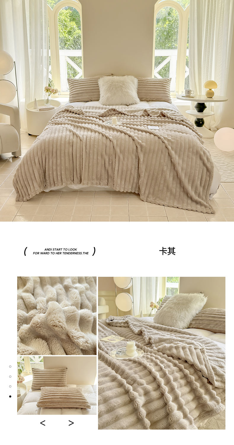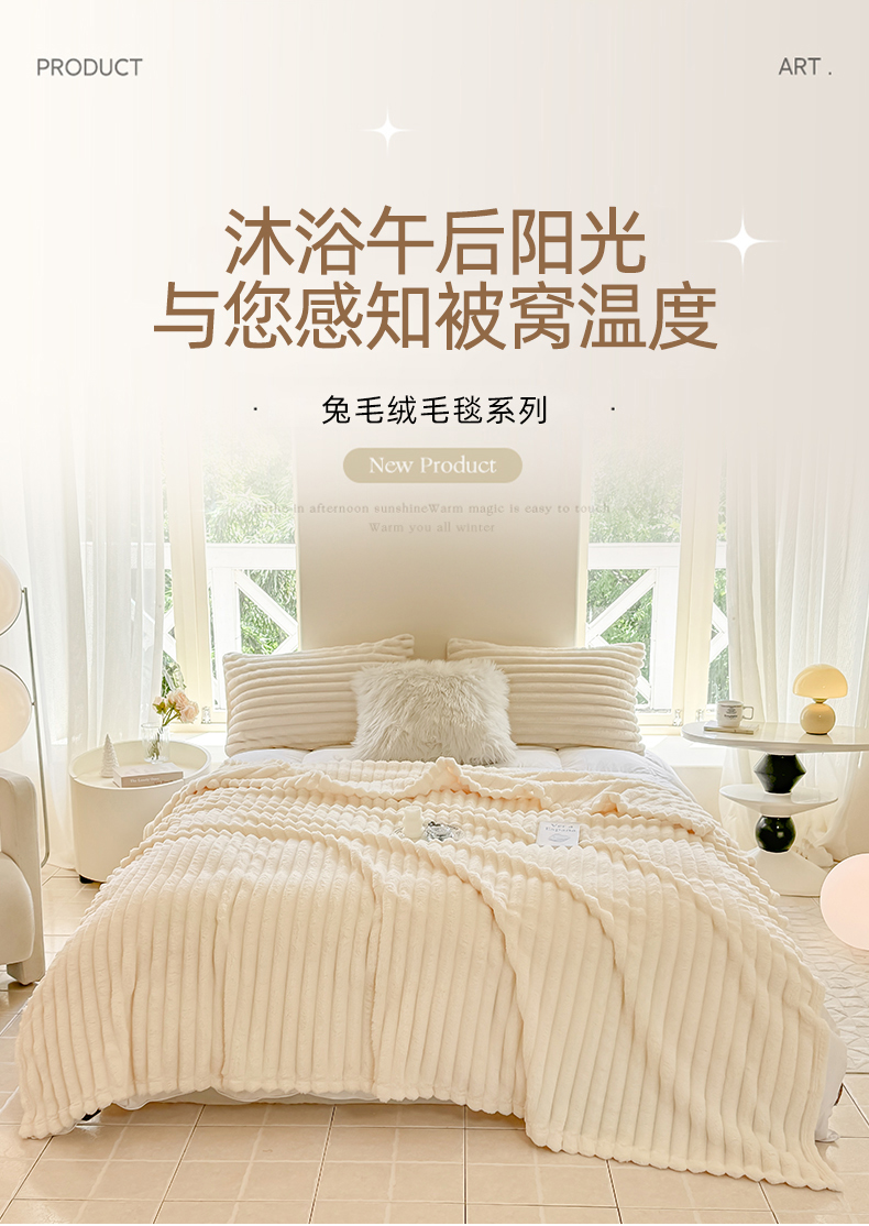 商品名称:(总)花言狐语 2025新款兔毛绒多功能毛毯抽条牛奶绒贝贝绒毛毯