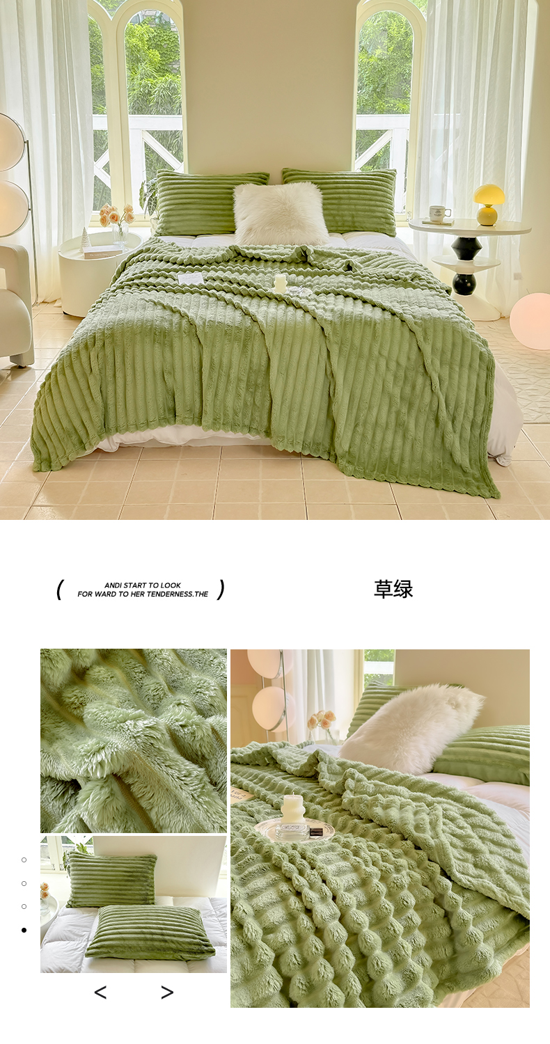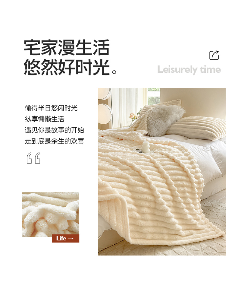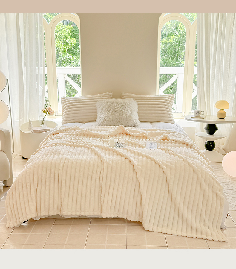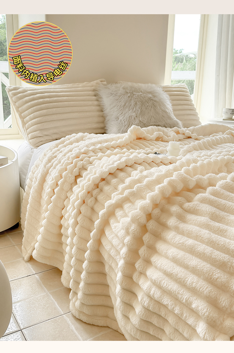 商品名称:(总)花言狐语 2025新款兔毛绒多功能毛毯抽条牛奶绒贝贝绒毛毯